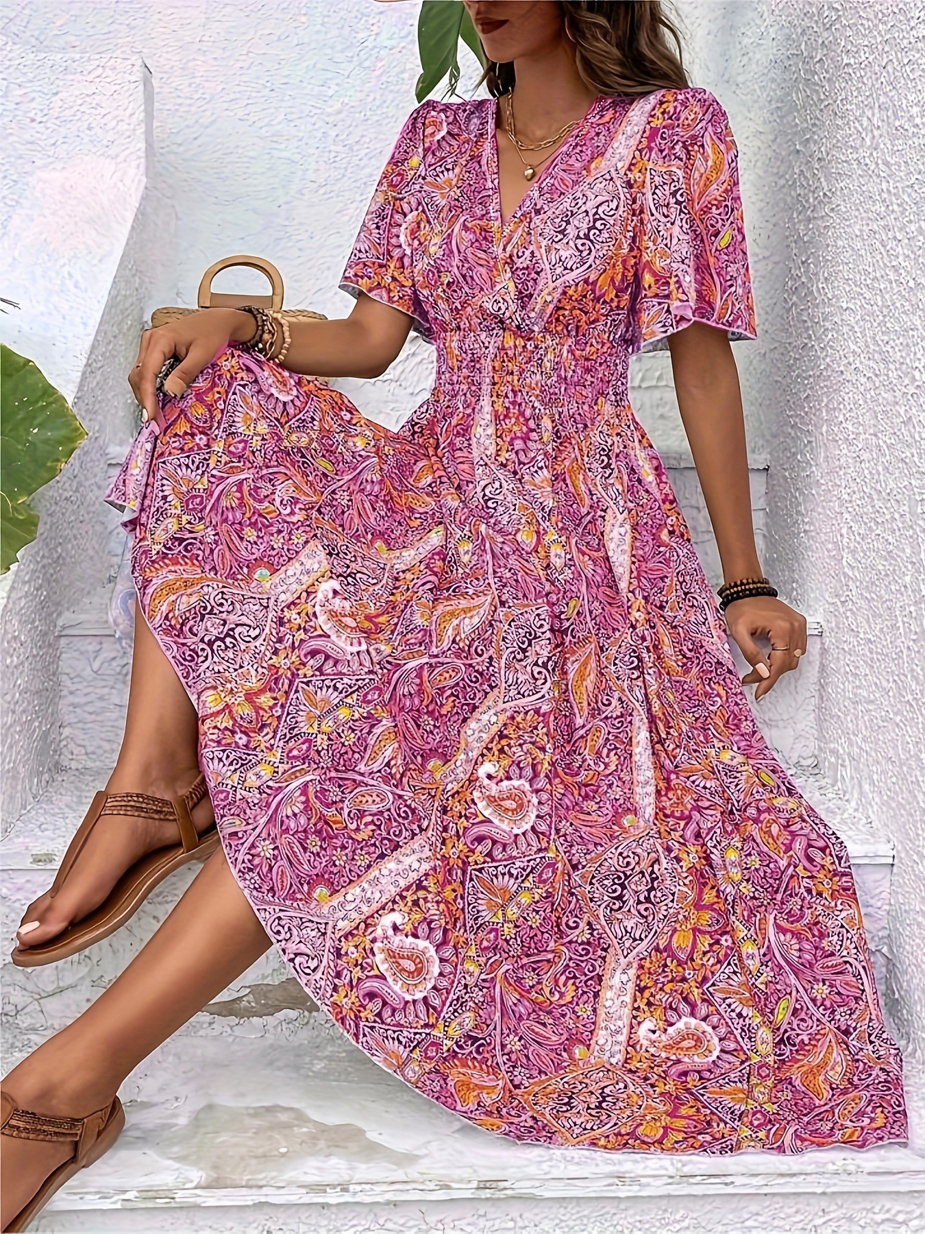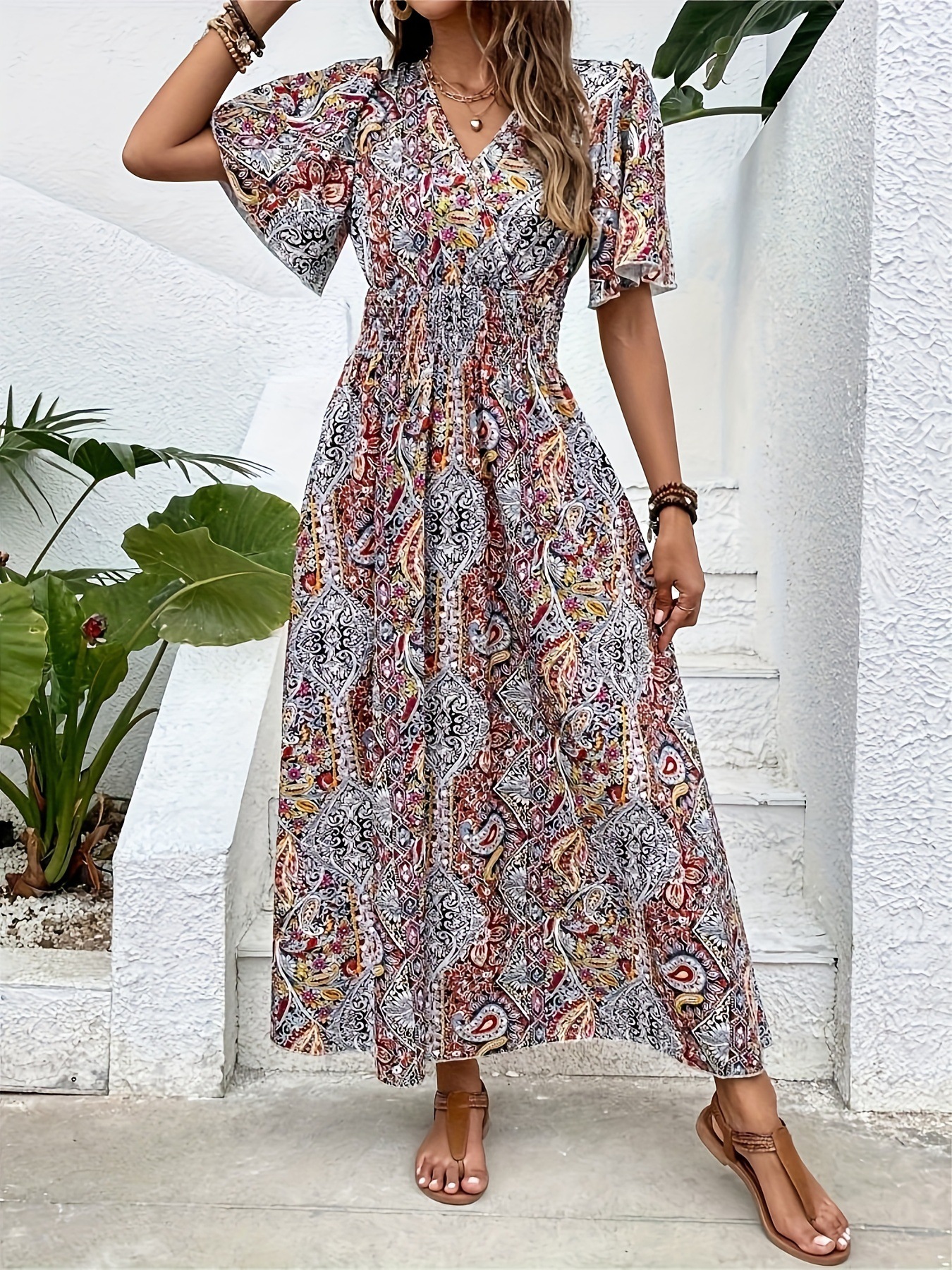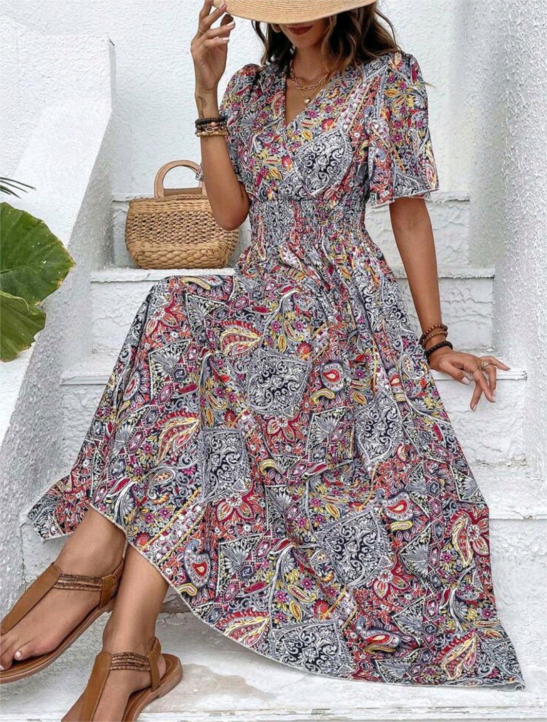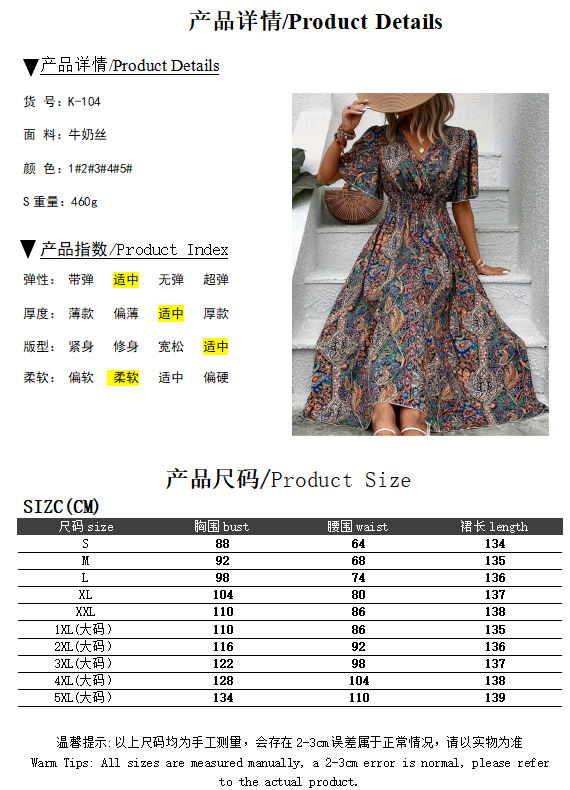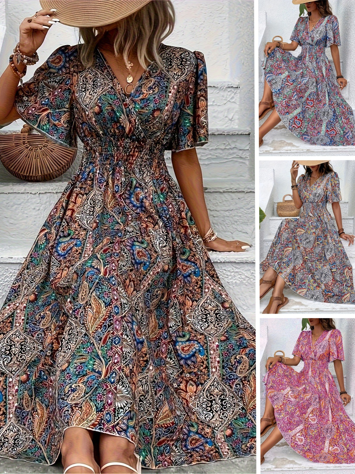 2026년 독립 홈페이지 위시 아마존 스타일의 세련된 하이웨이스트 보헤미안 휴가 민족풍 여성 원피스