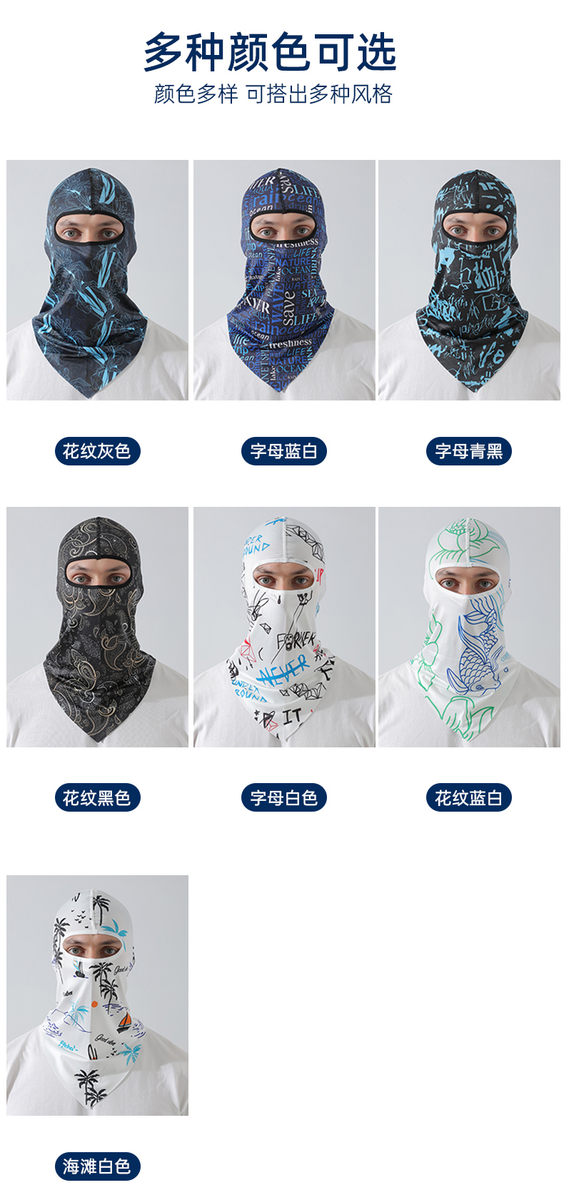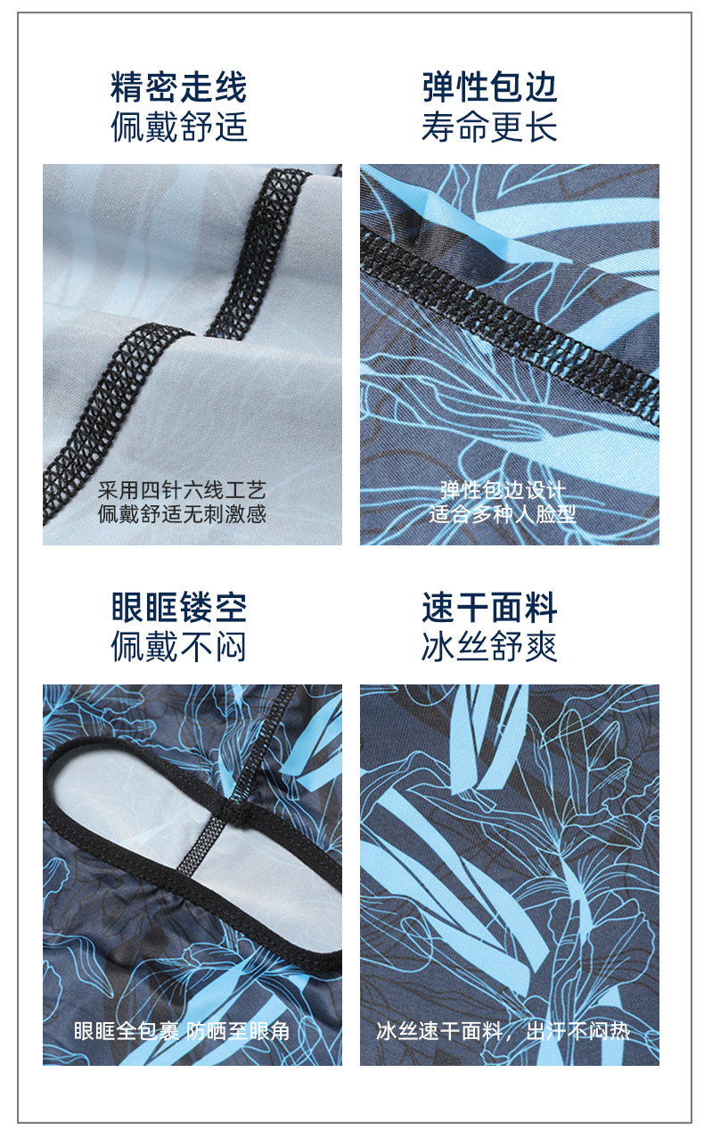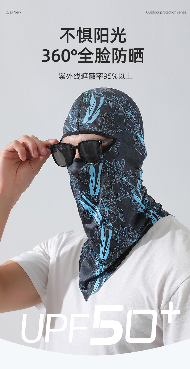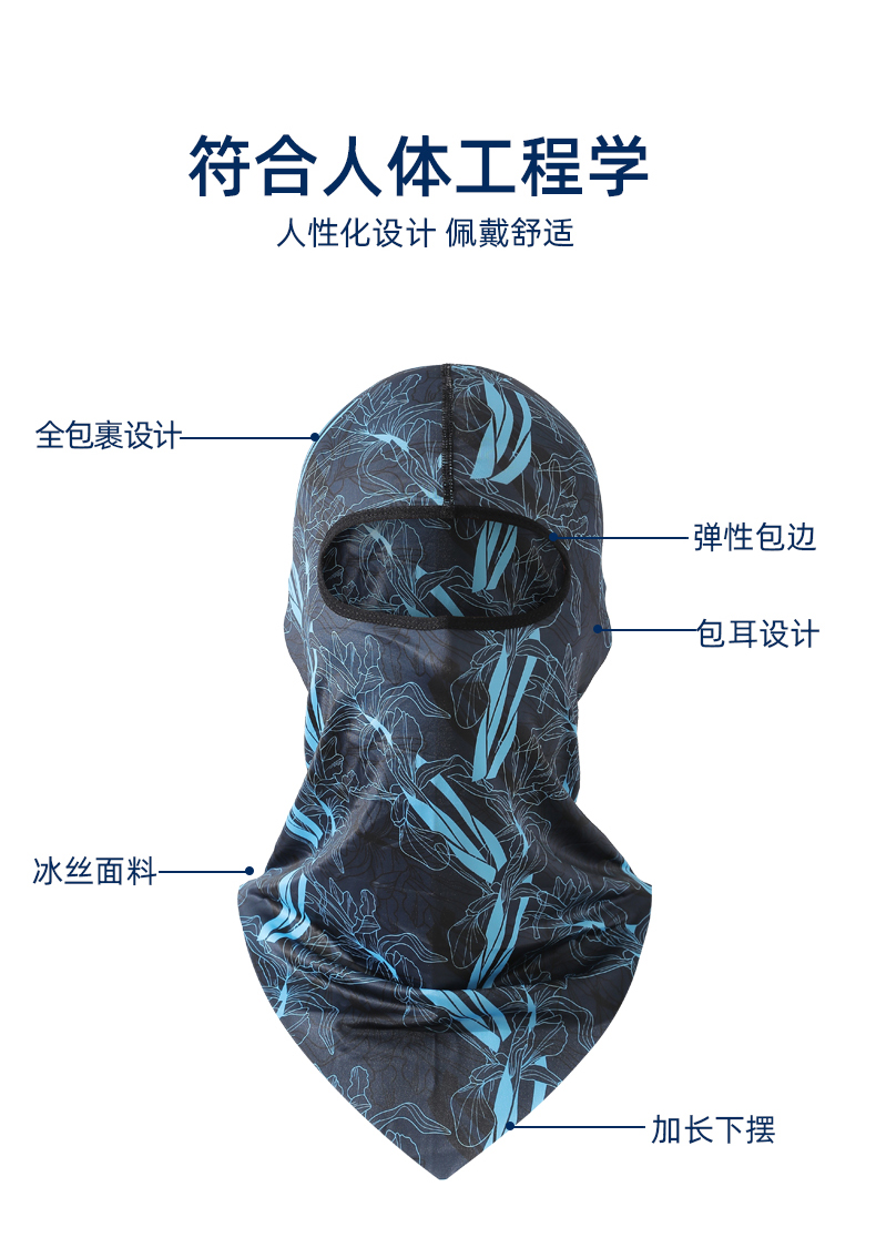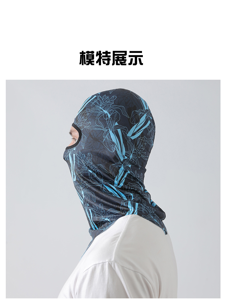 【UPF50+】다기능 아이스 실크 헤드기어 - 파란색과 검정색