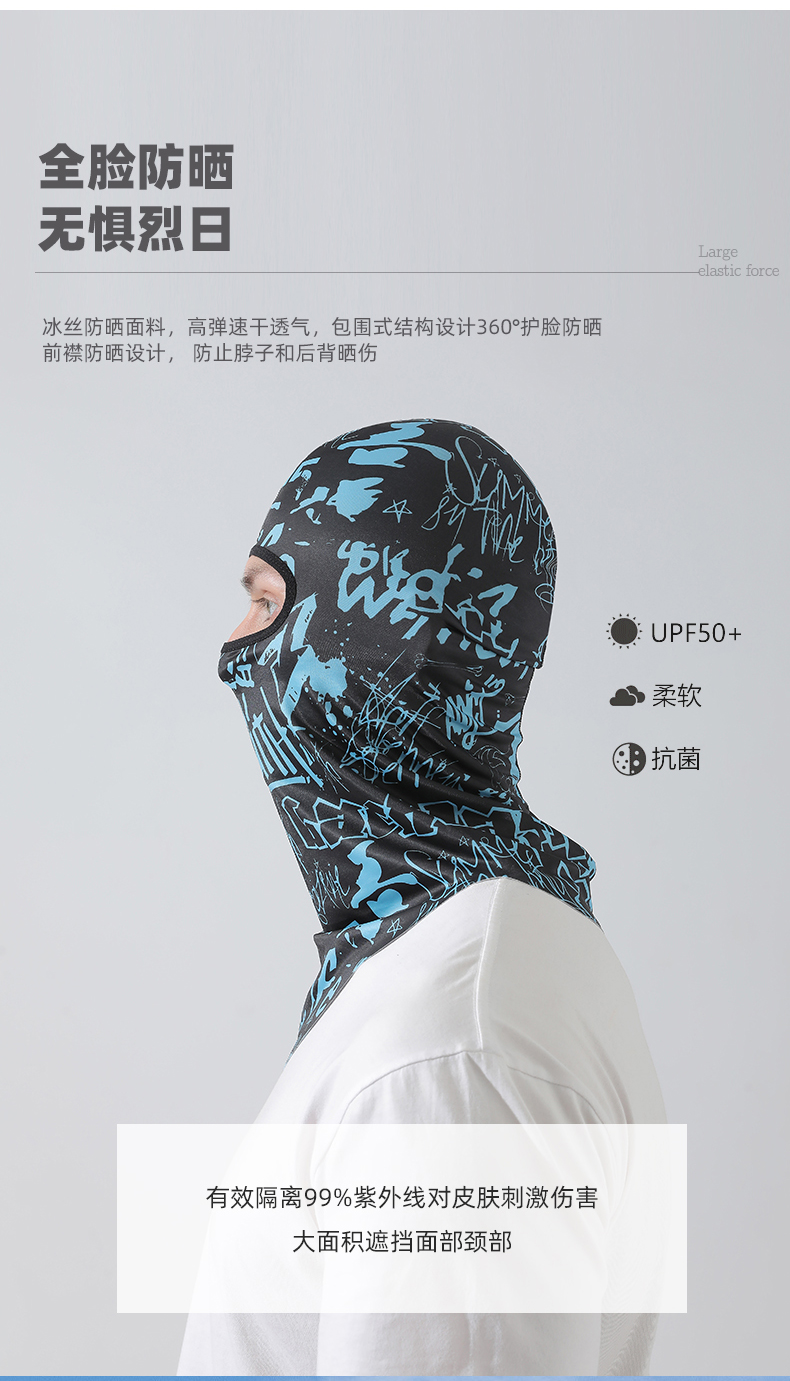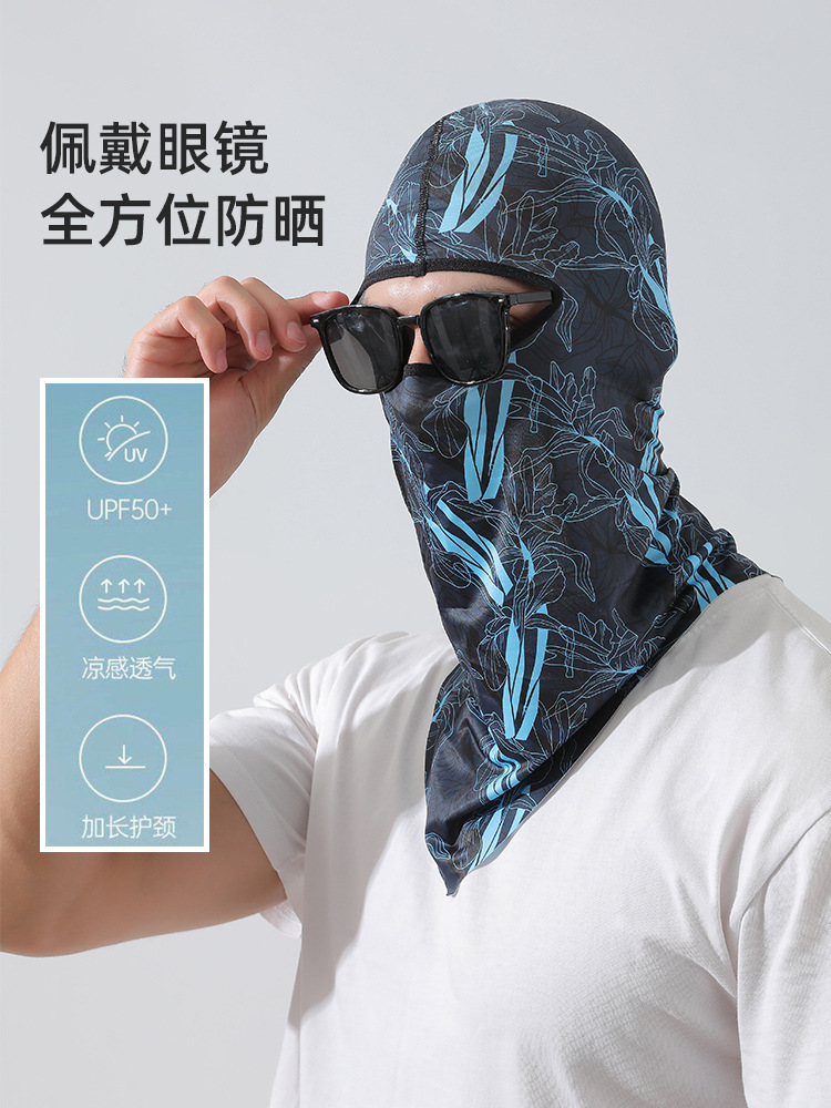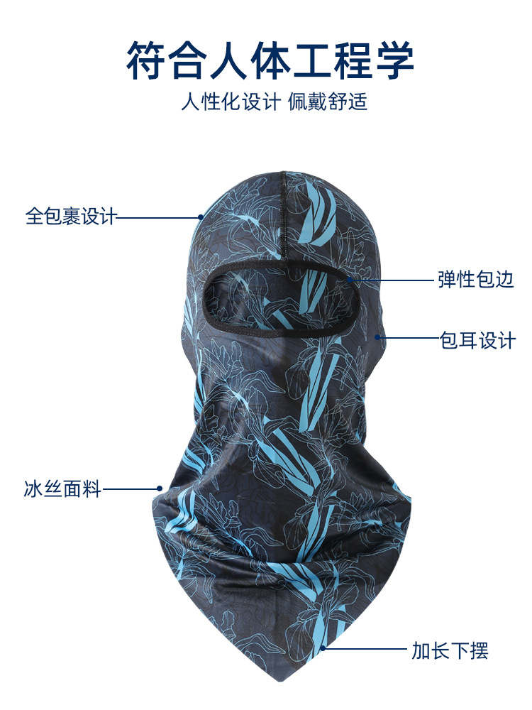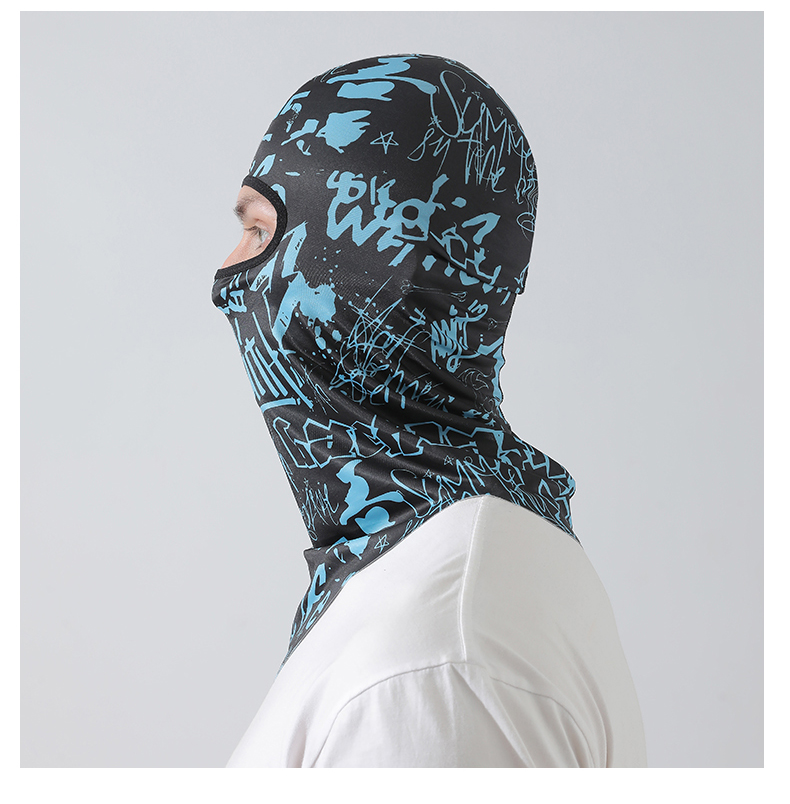 【UPF50+】풀페이스 아이스 실크 헤드기어 - 파란색과 검정색