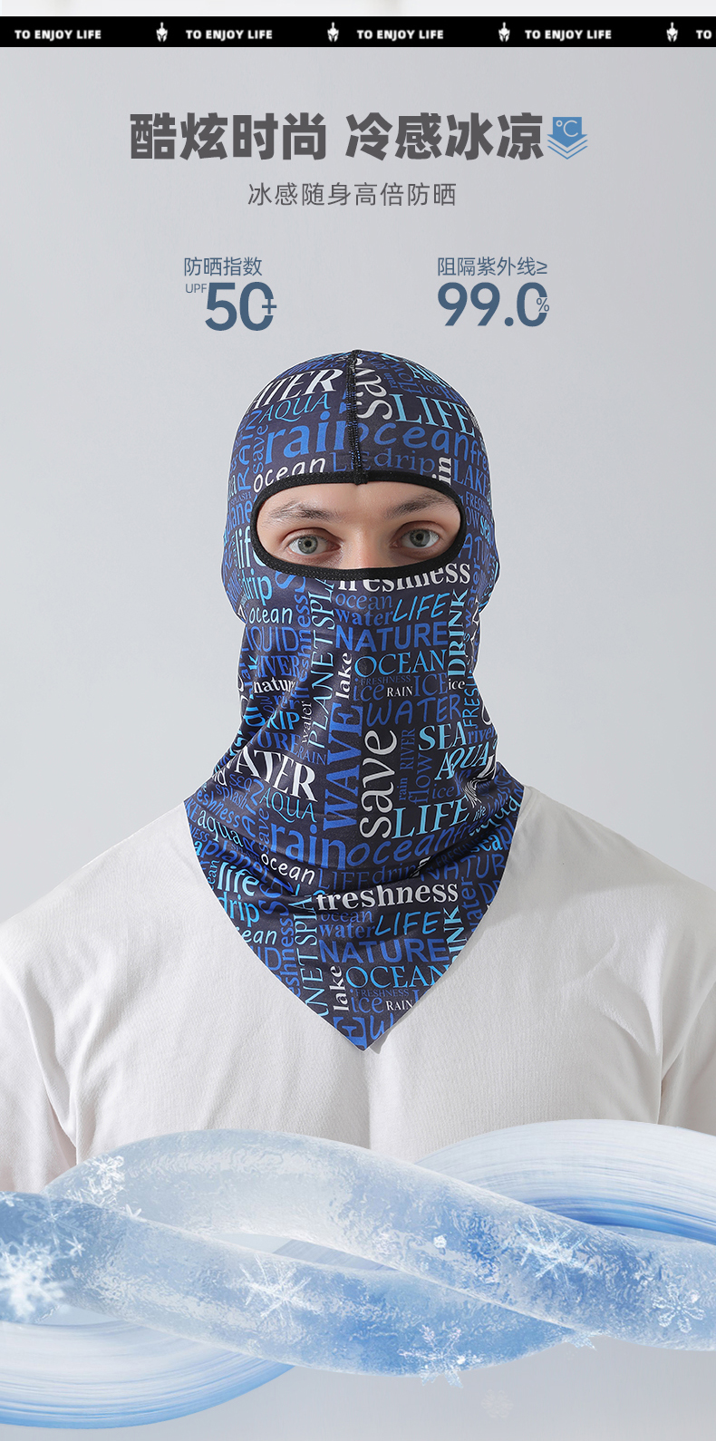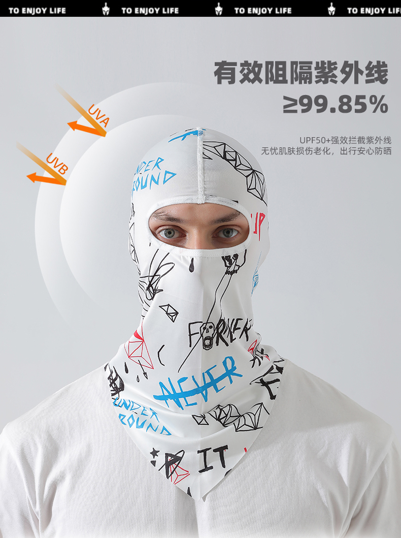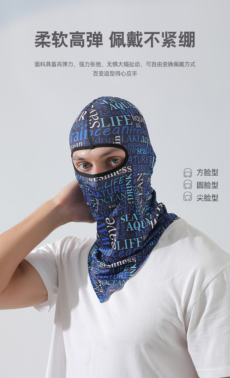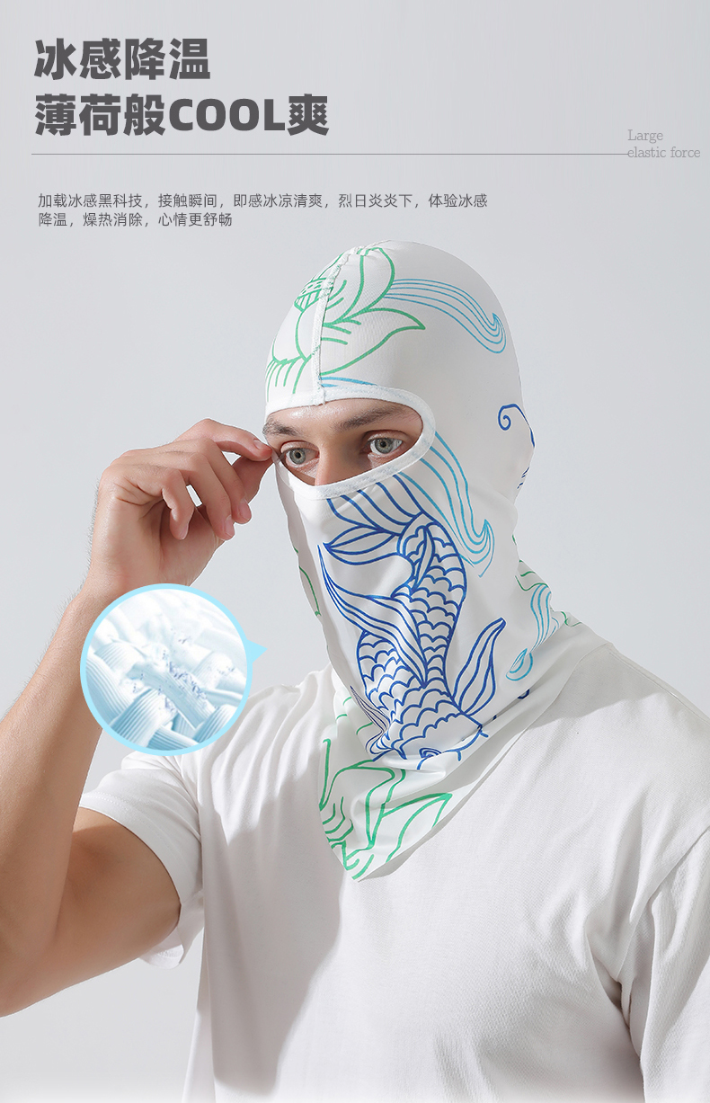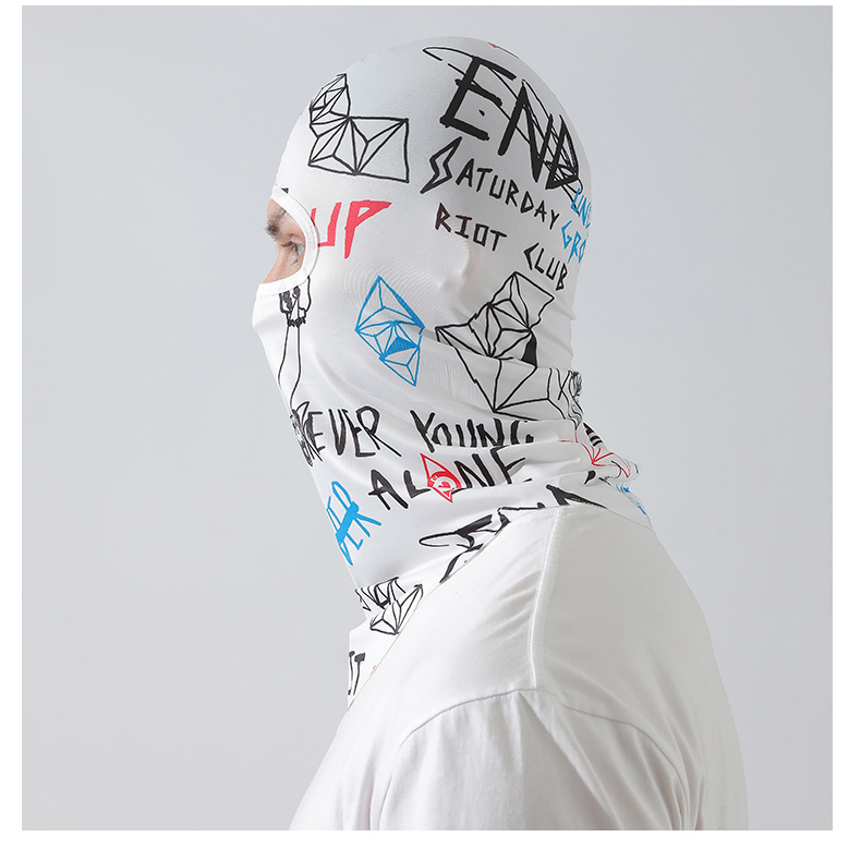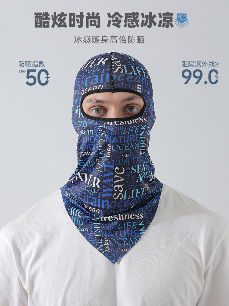 【UPF50+】풀페이스 아이스 실크 후드-문자 흰색