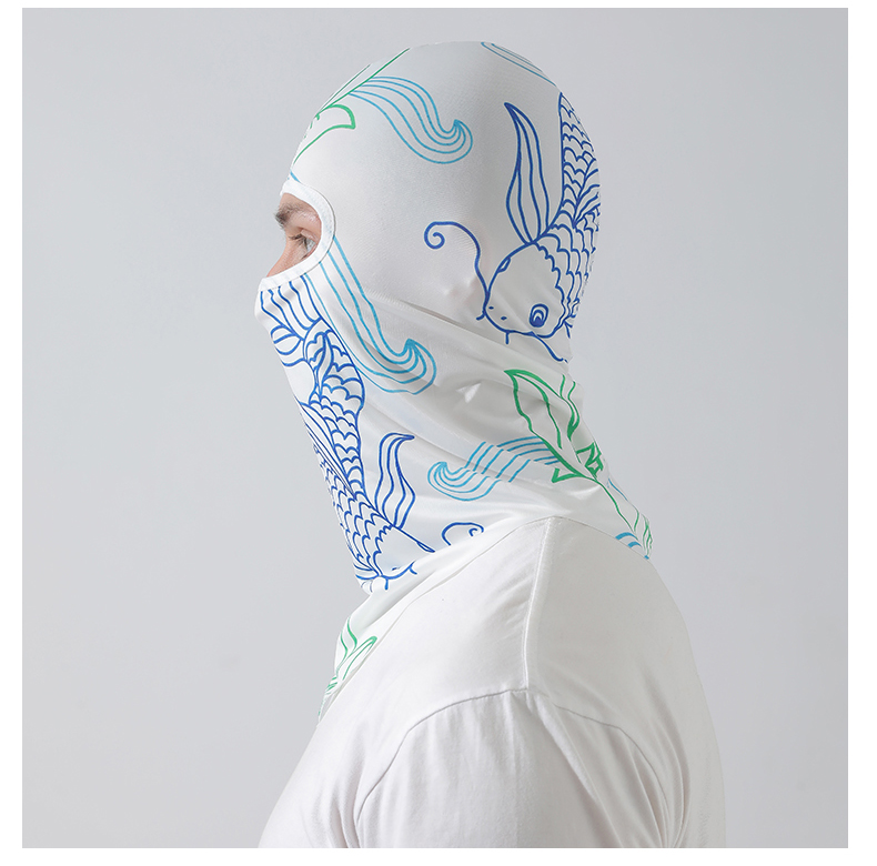 【UPF50+】풀페이스 아이스 실크 후드 패턴 파란색과 흰색