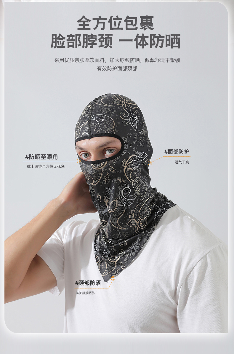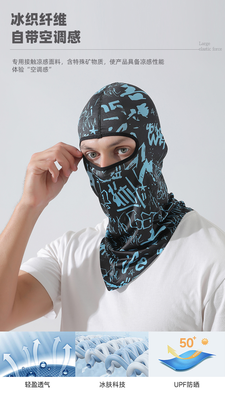 【UPF50+】다기능 아이스 실크 후드 패턴 블랙
