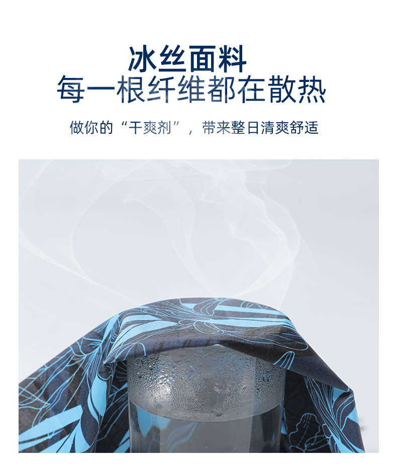 【UPF50+】다기능 아이스 실크 후드 패턴 파란색과 흰색