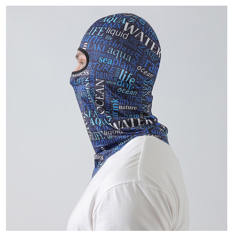 【UPF50+】풀페이스 아이스 실크 헤드기어 - 파란색과 흰색