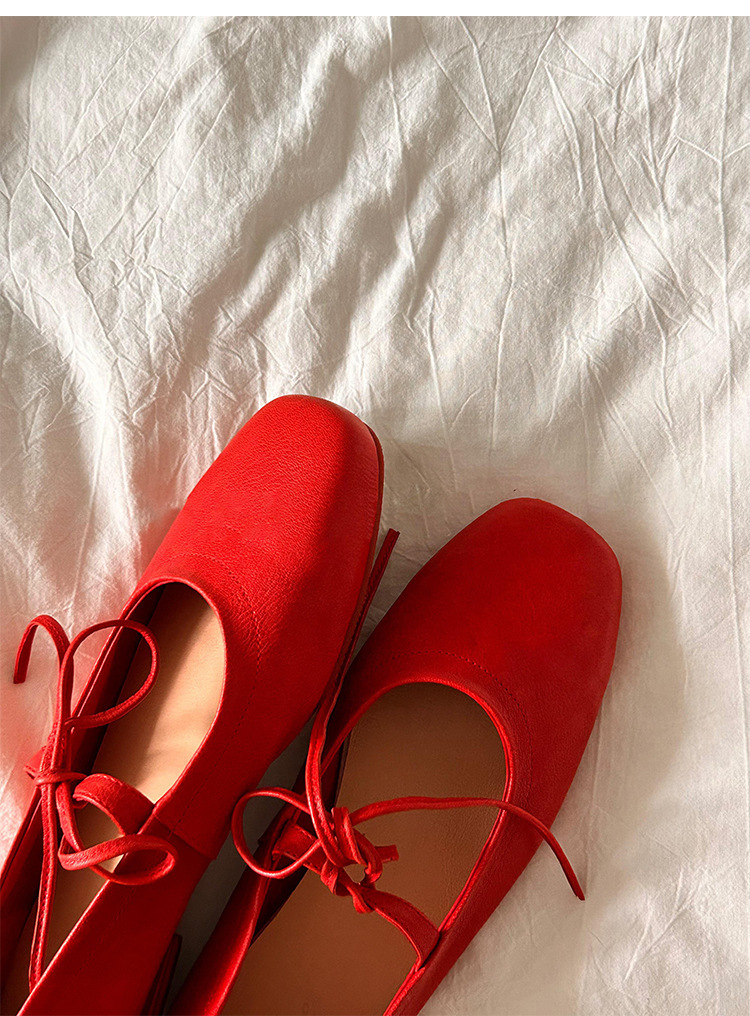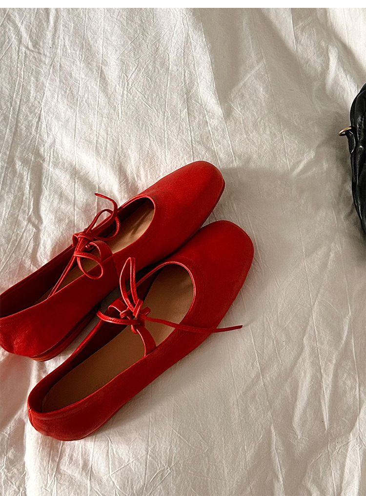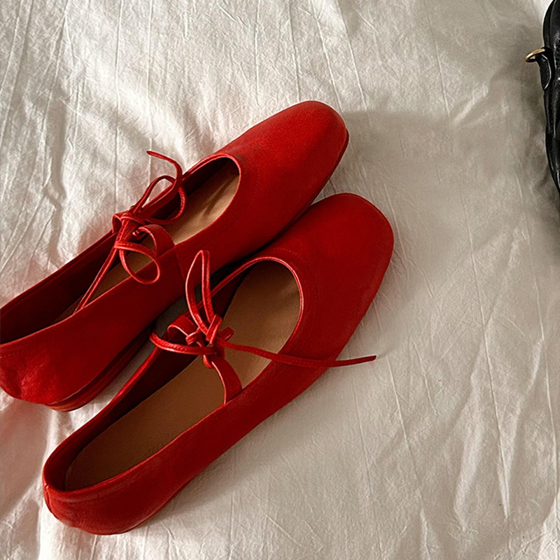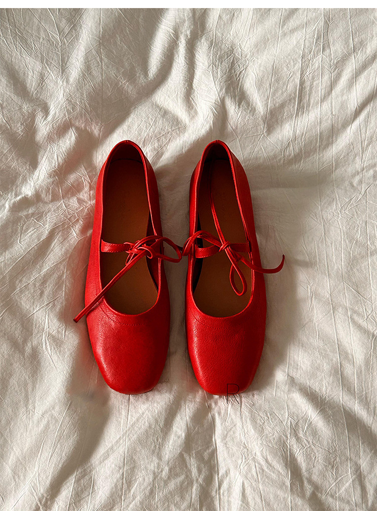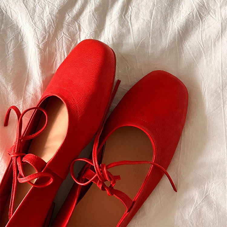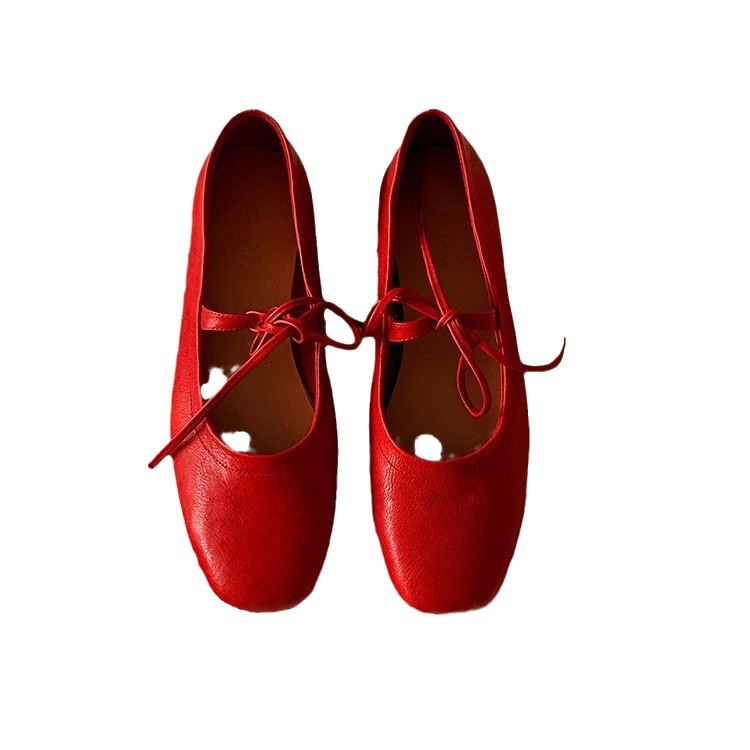 양가죽 버전 2025 새로운 메리 제인 소프트 솔 신발 여성용 얕은 입 레드 스트랩 플랫 발레 신발 캐주얼 신발