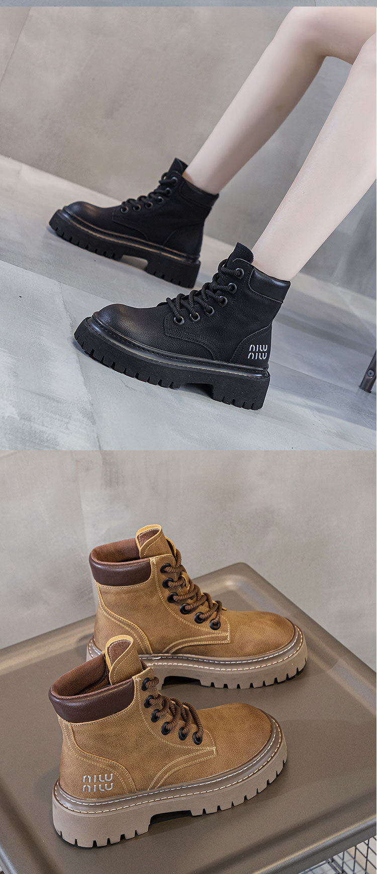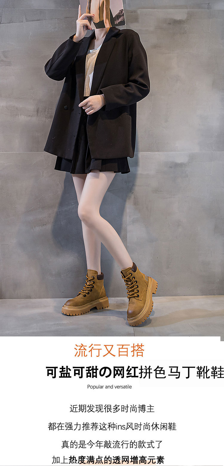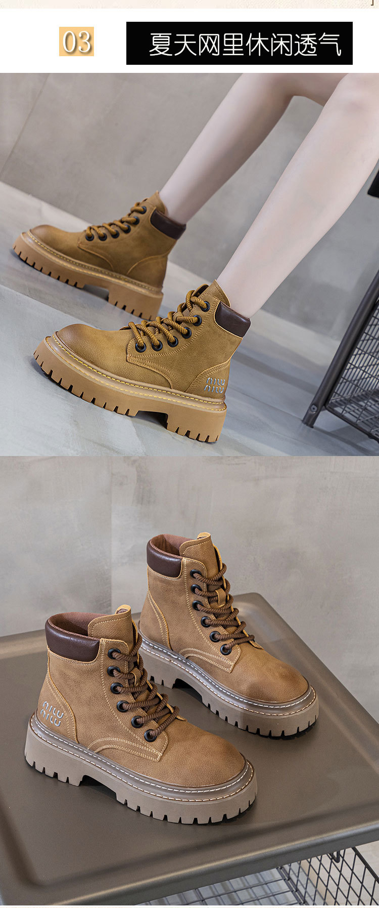 유럽 역 레트로 컬러 광택 가죽 마틴 부츠 여성 2024 년 여름 및 가을 새로운 범블비 플랫폼 하단 올 매치 오토바이 부츠