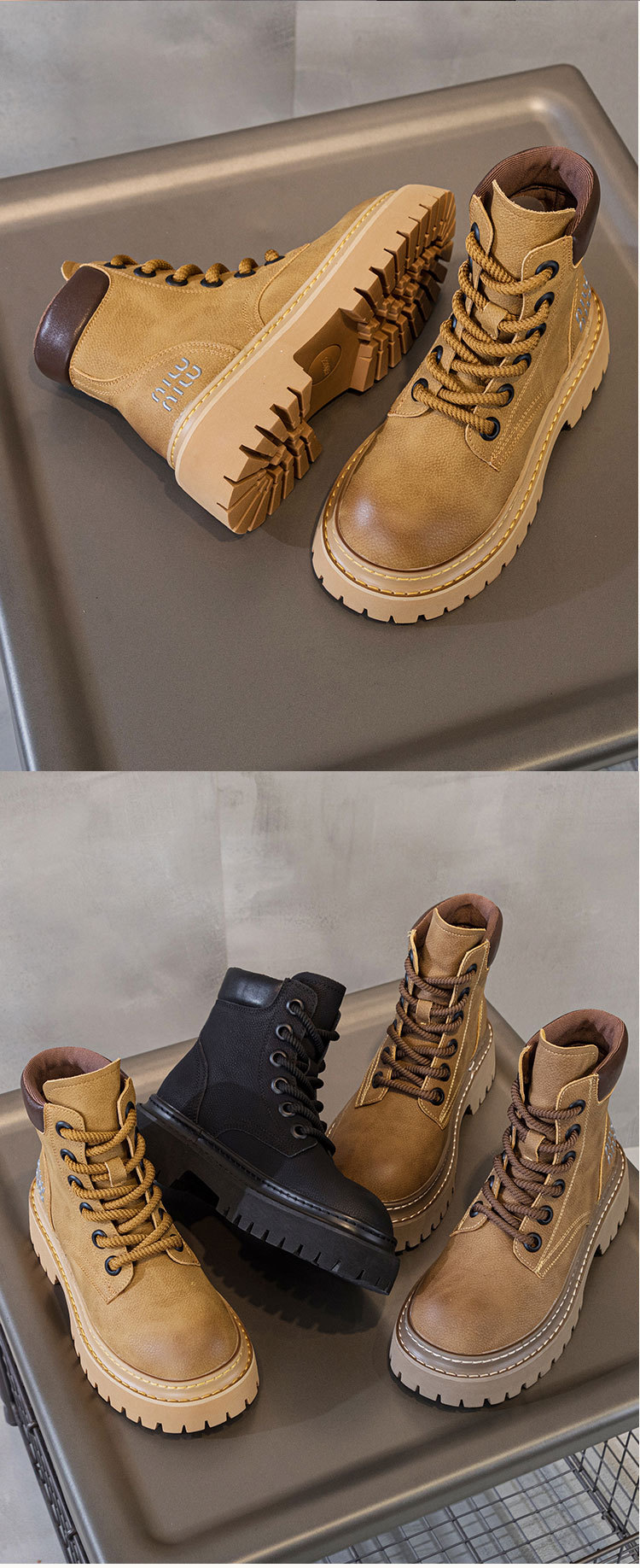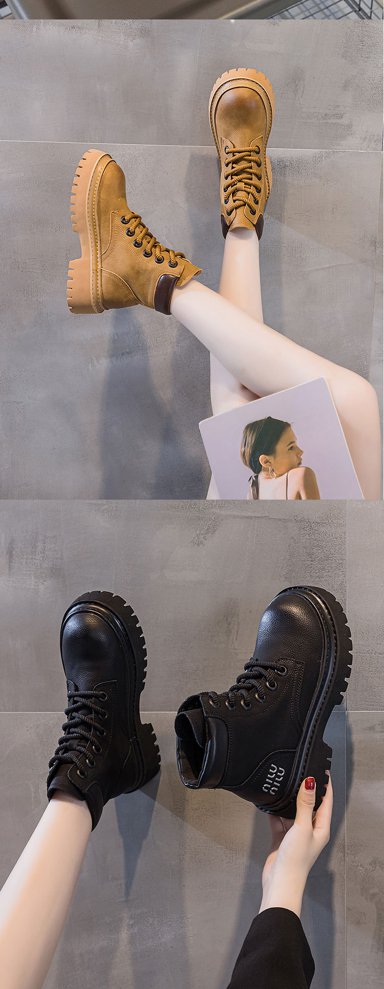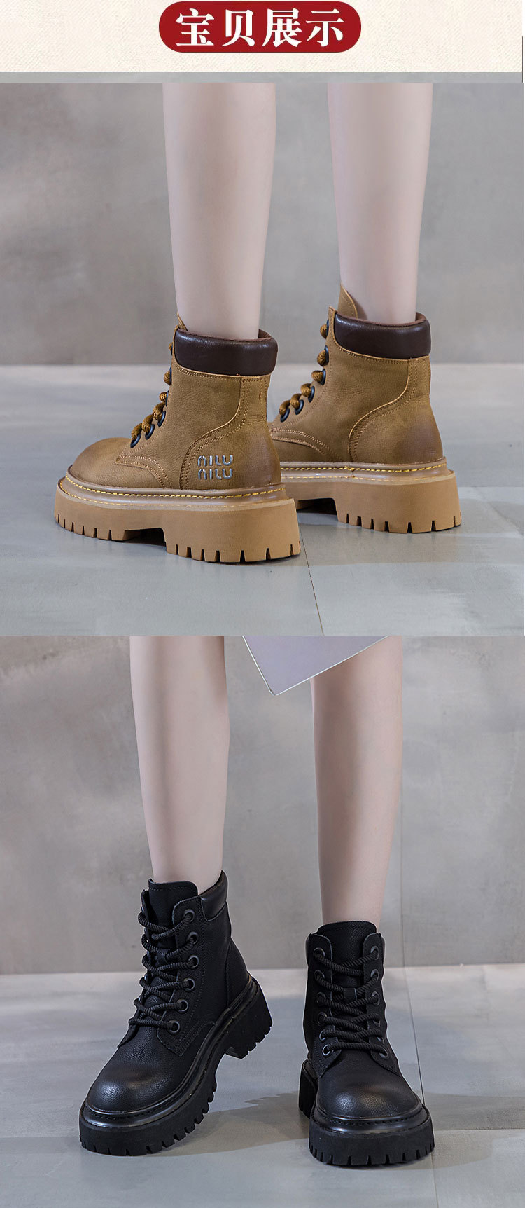 유럽 역 레트로 컬러 광택 가죽 마틴 부츠 여성 2024 년 여름 및 가을 새로운 범블비 플랫폼 하단 올 매치 오토바이 부츠
