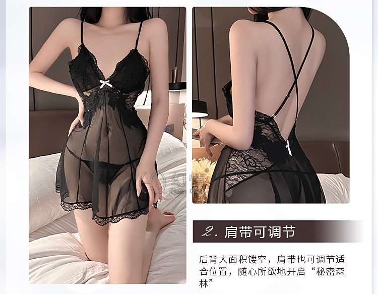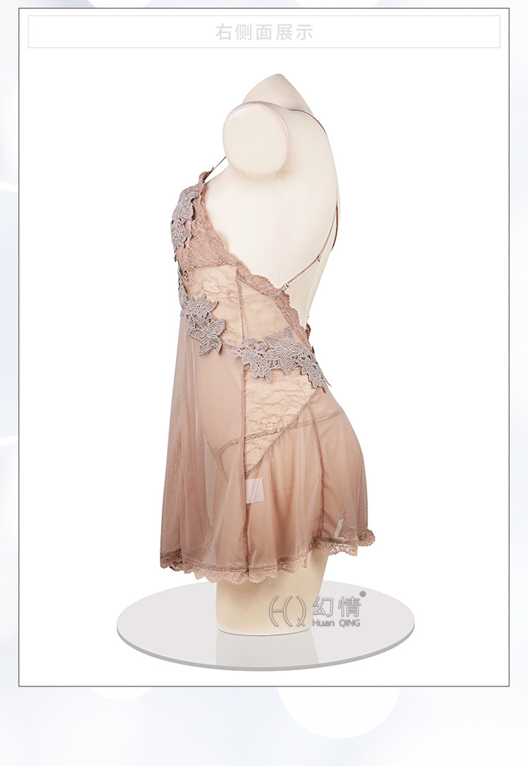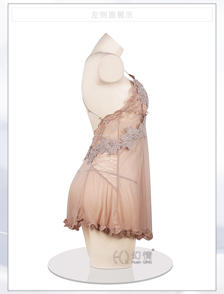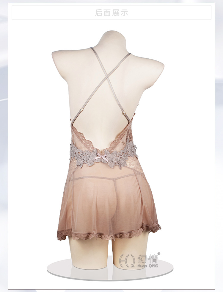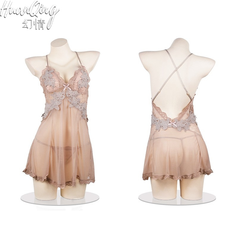 판타지 섹시 란제리 유혹 작은 가슴 침대 데이트 가운 메쉬 원근법 백리스 슬링 나이트 가운
