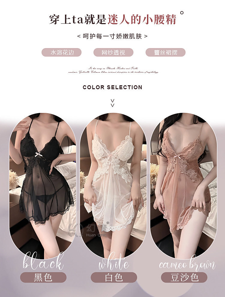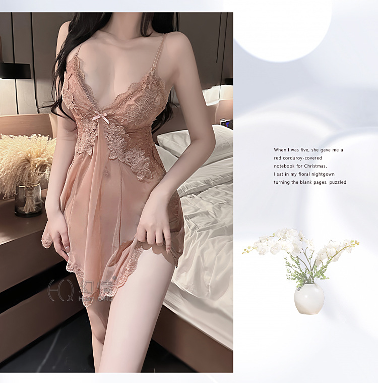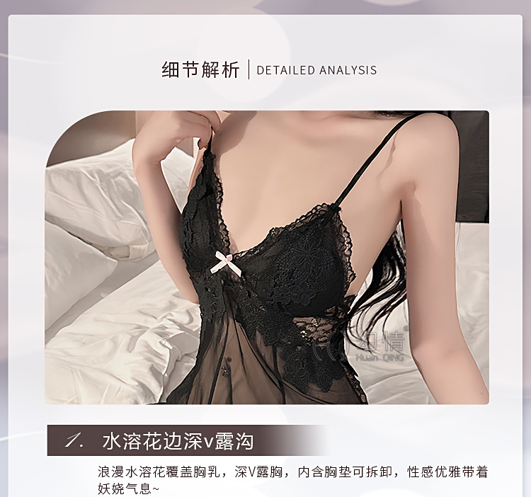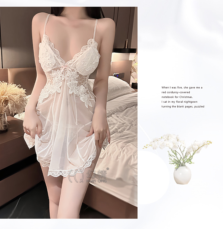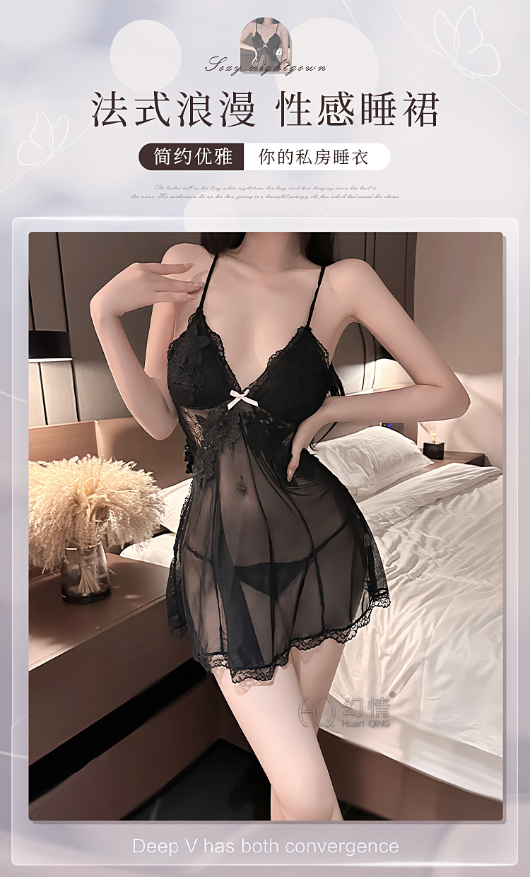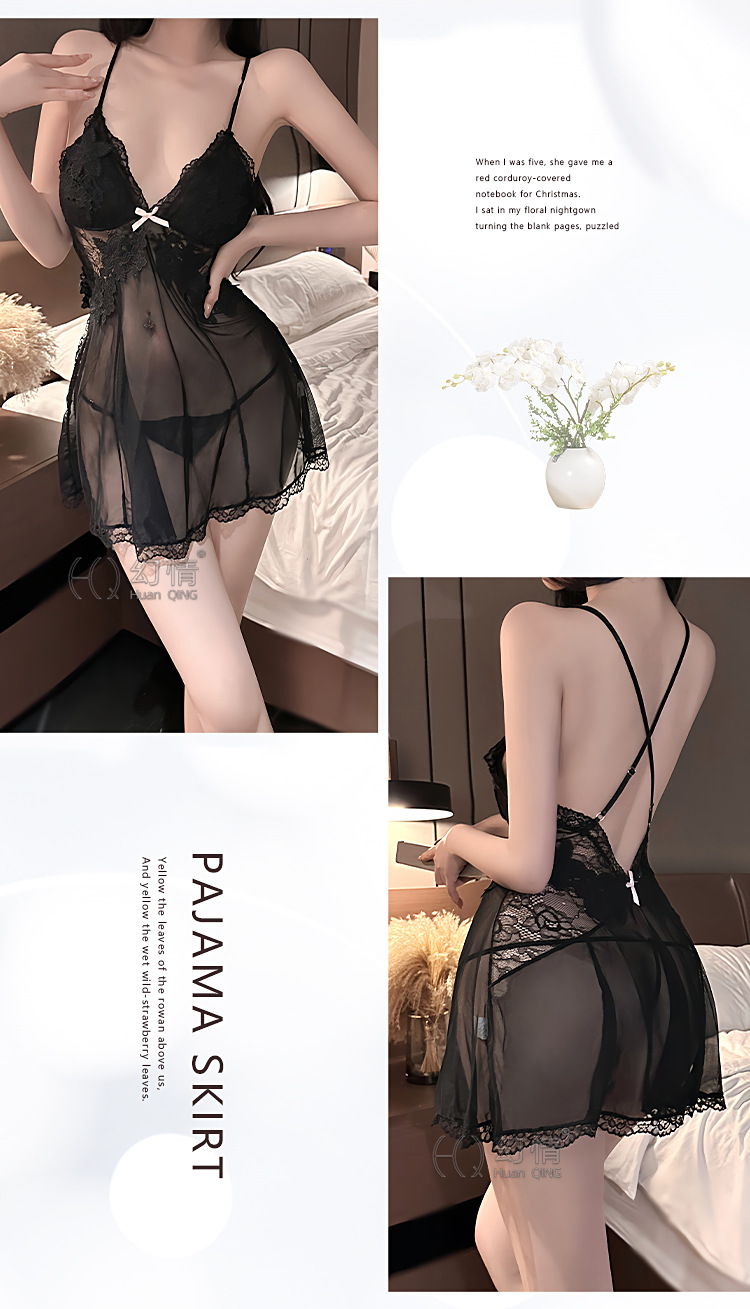 판타지 섹시 란제리 유혹 작은 가슴 침대 데이트 가운 메쉬 원근법 백리스 슬링 나이트 가운