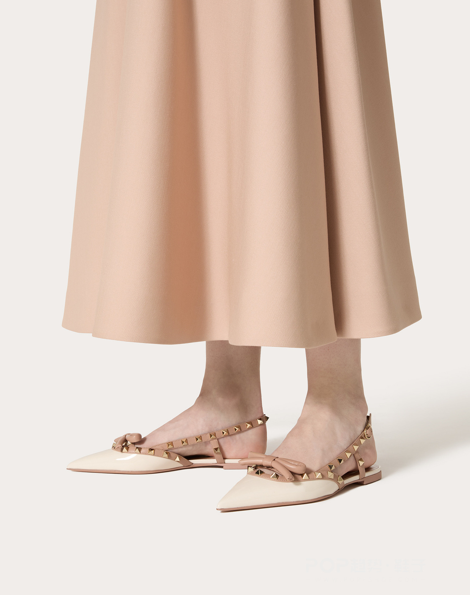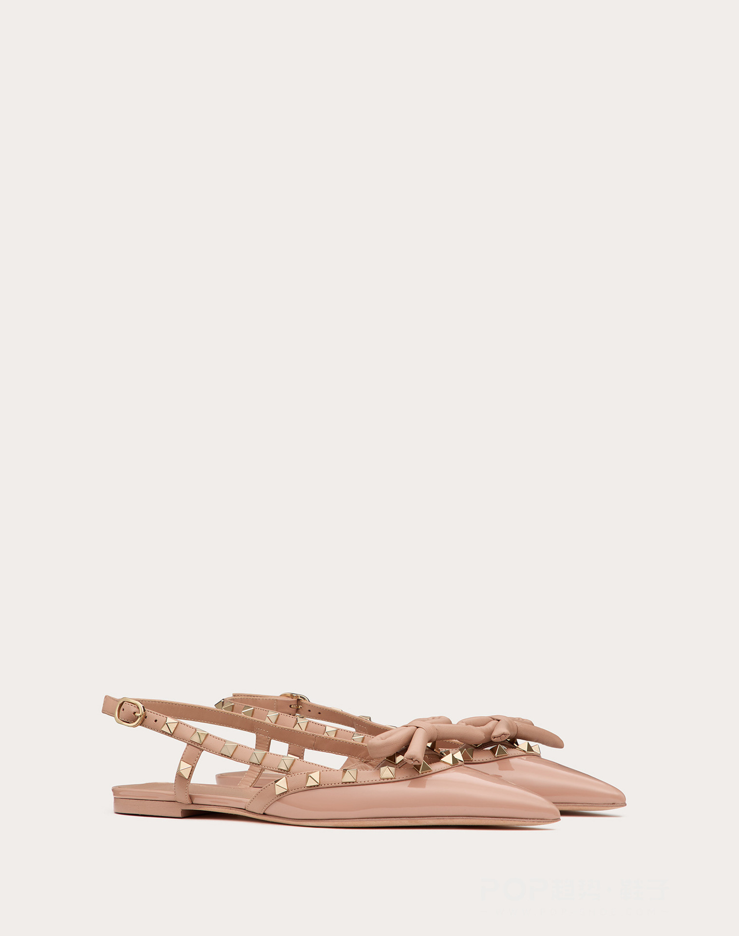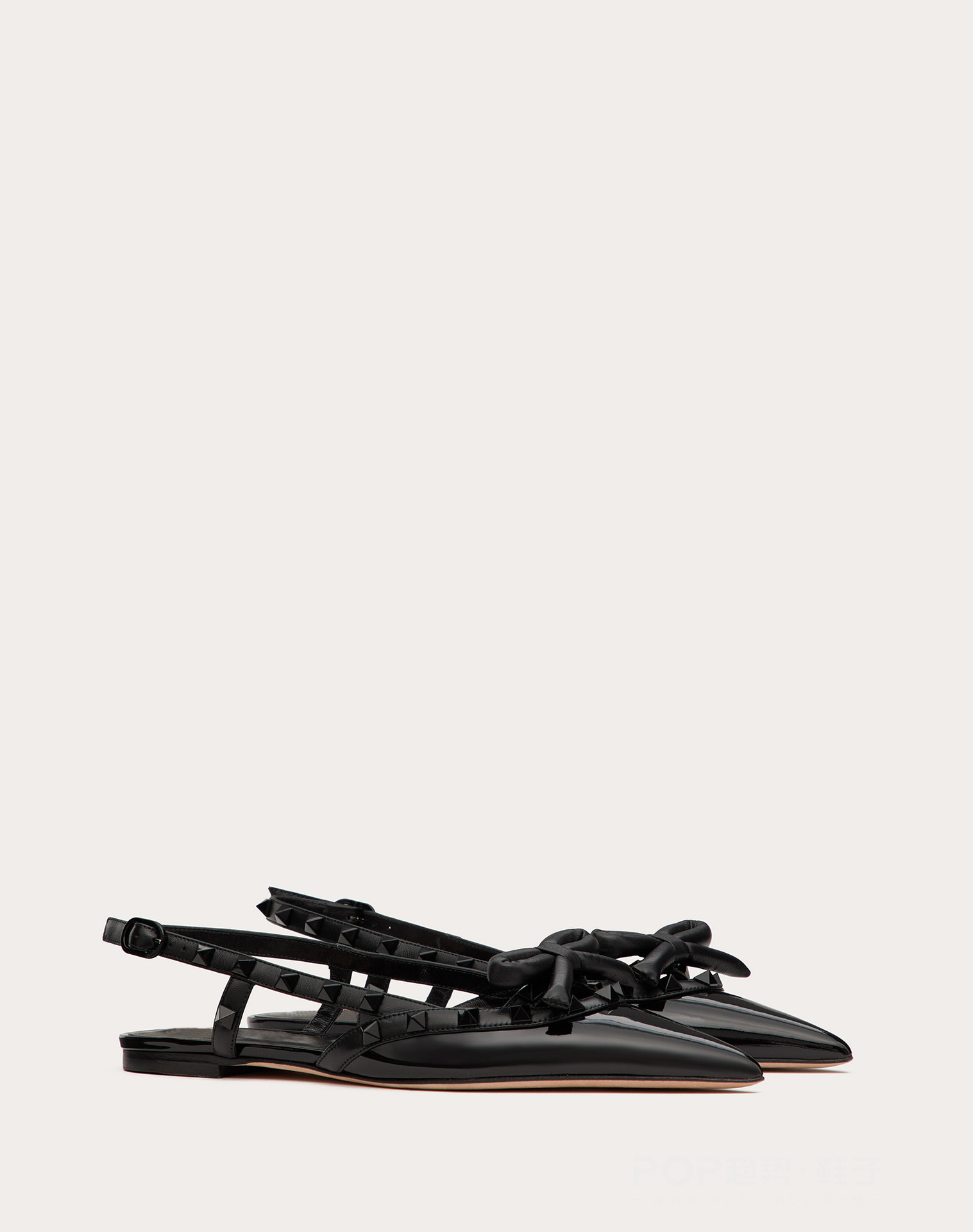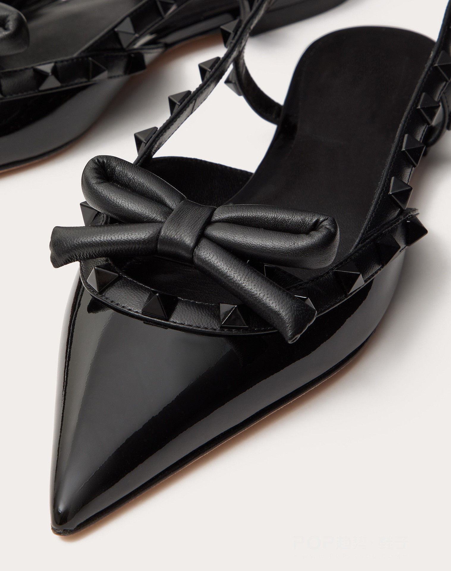 2024 화렌 하이힐 플랫 슈즈 여성용 플랫 힐 리본 장식 리벳 라커 가죽 뾰족코 플랫 슈즈 패셔너블하고 다재다능함