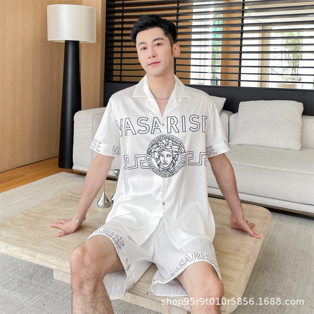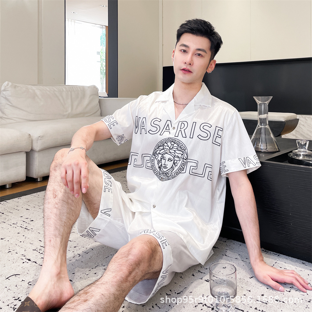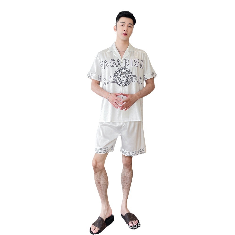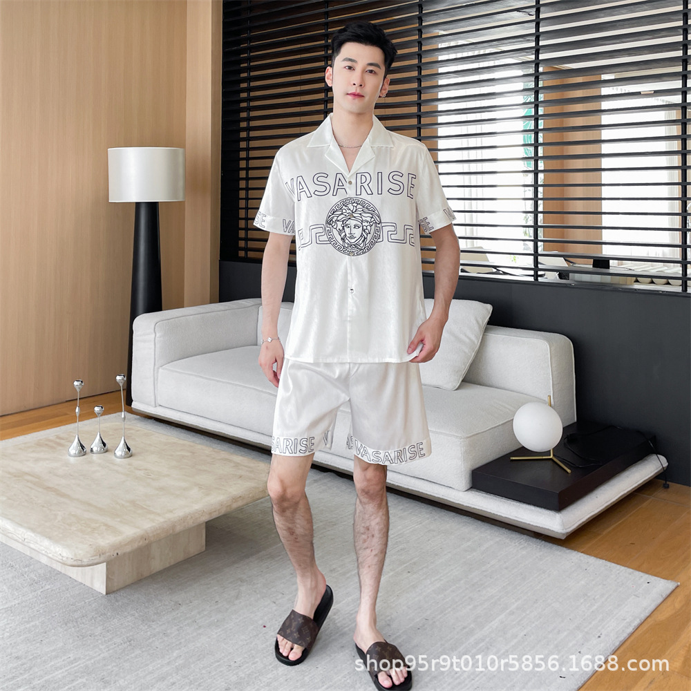 여름 남성 단색 FZ 반팔 반바지 캐주얼 편안한 느슨한 홈 의류 세트 얇은 잠옷 도매