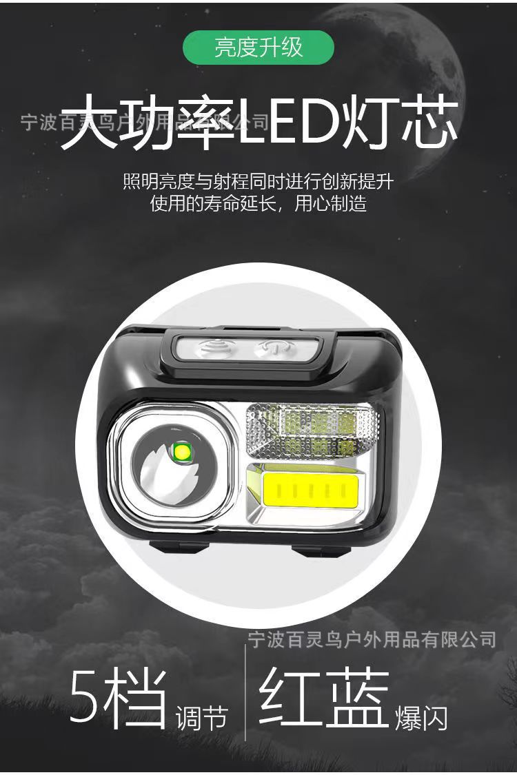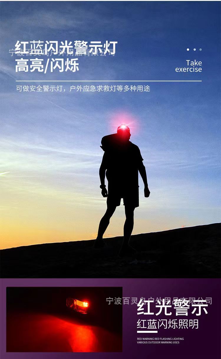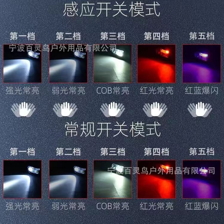 开关档位 主灯强光-主灯弱光-COB强光-红光-红蓝爆闪