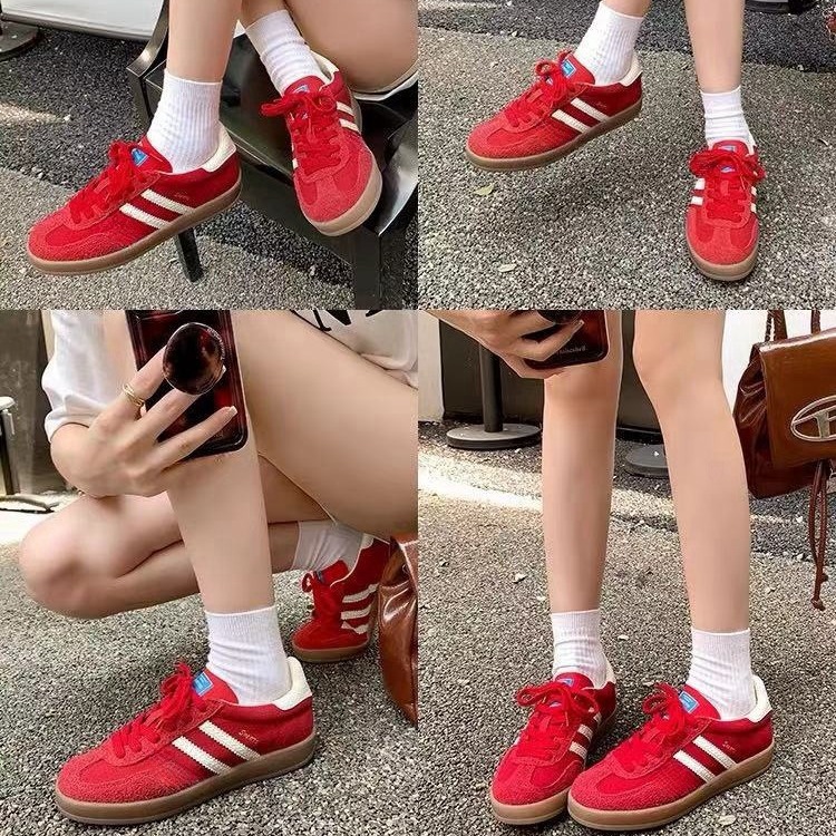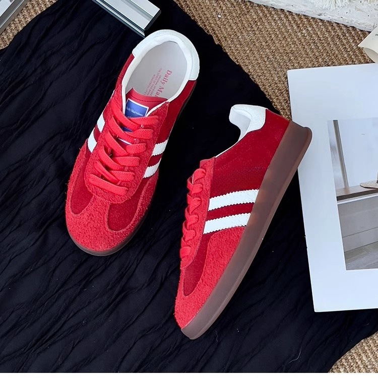 정품 가죽 클래식 독일 훈련 신발 높이 증가 여성 신발 2025 새로운 레트로 레드 올 매치 캐주얼 신발 컬러 매칭 운동화