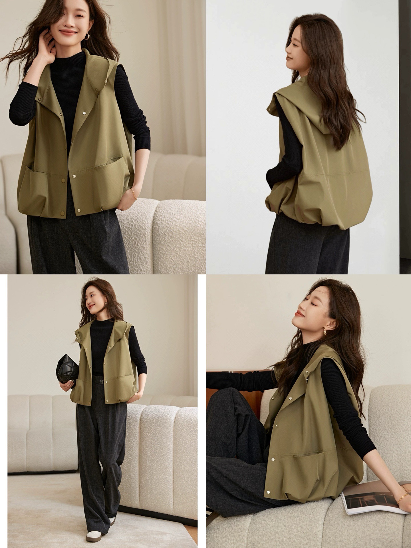 颜色黑色米白绿色卡其