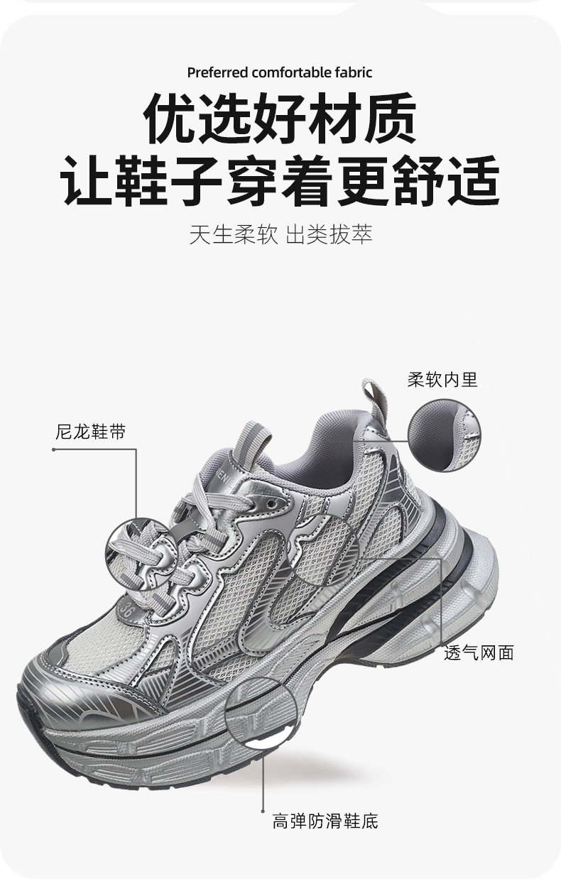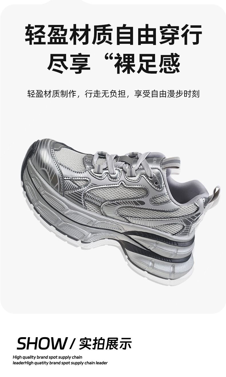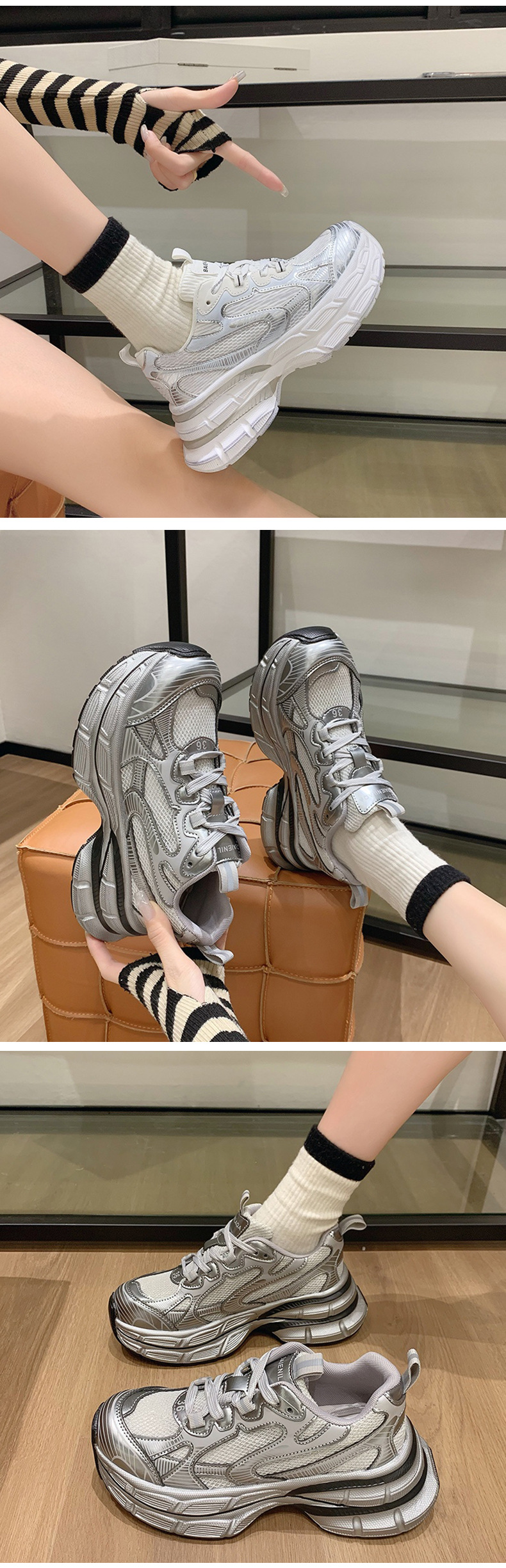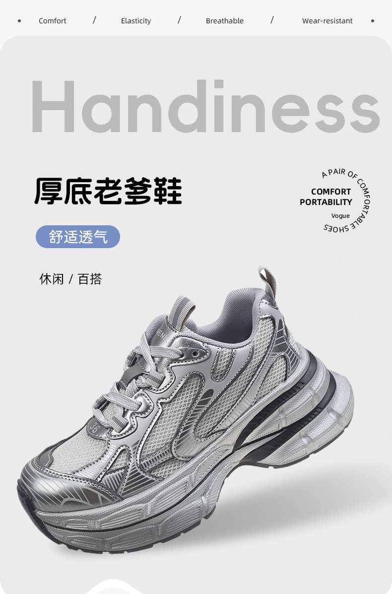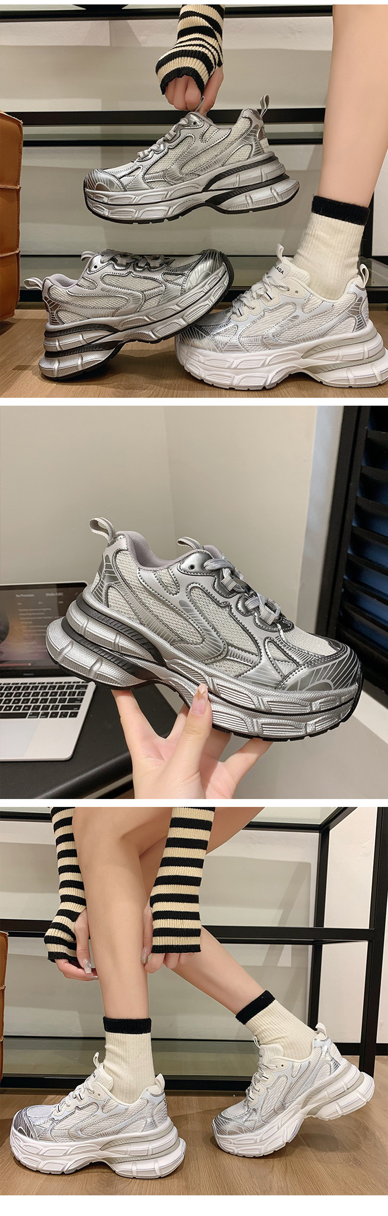 여름 신상 여성 신발, 운동화, 통기성이 뛰어나고 편안한 실버 메쉬 두꺼운 밑창 미끄럼 방지 캐주얼 여성 아빠 신발