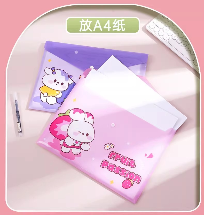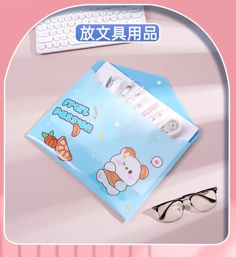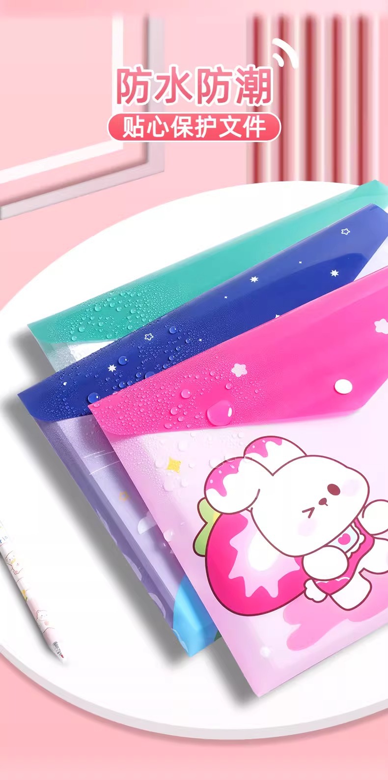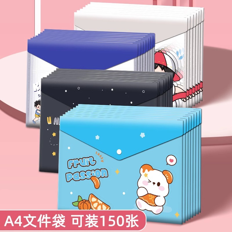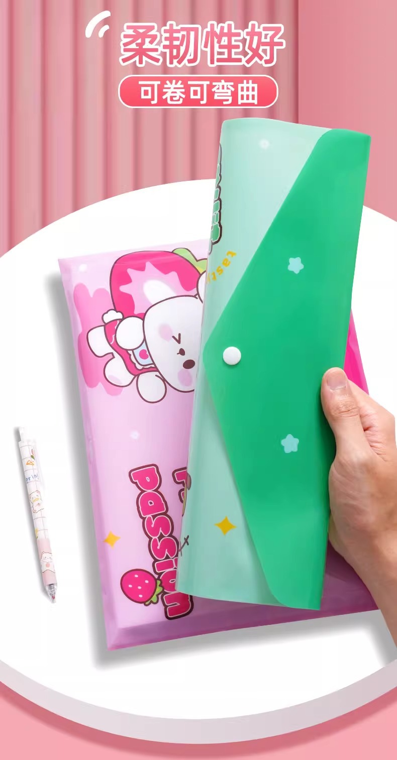 파일 가방 투명 학생 만화 귀여운 다크 버튼 파일 가방 플라스틱 저장 테스트 종이 저장 데이터 폴더