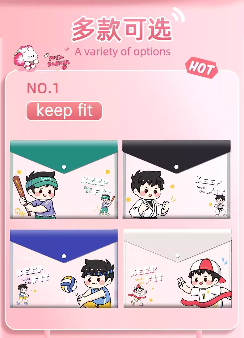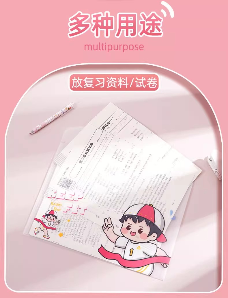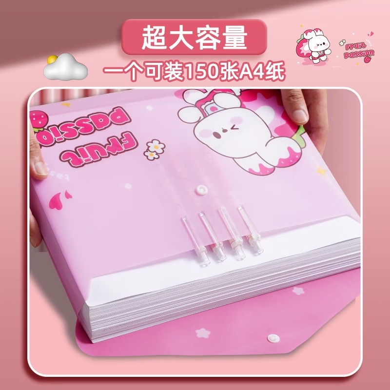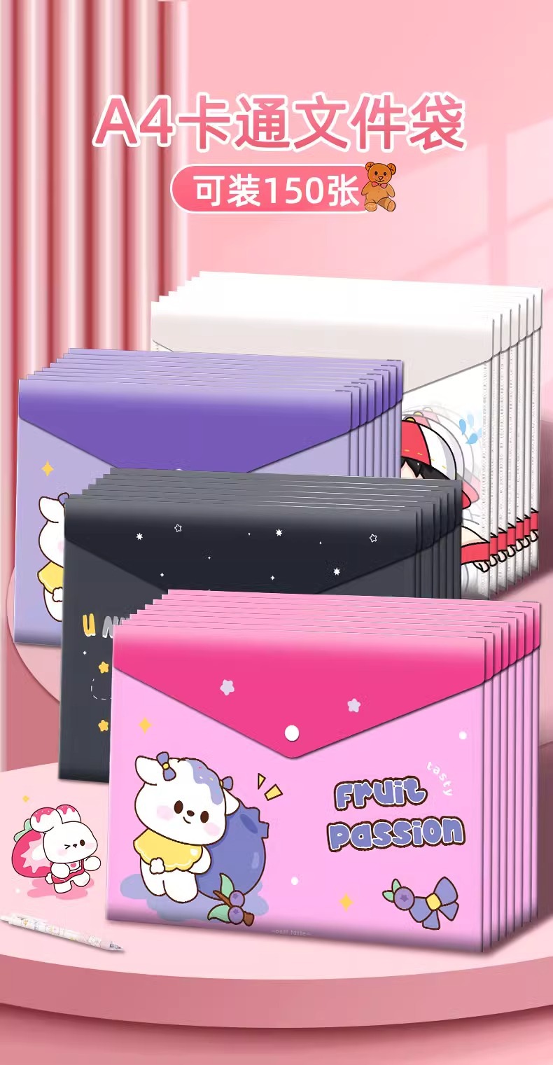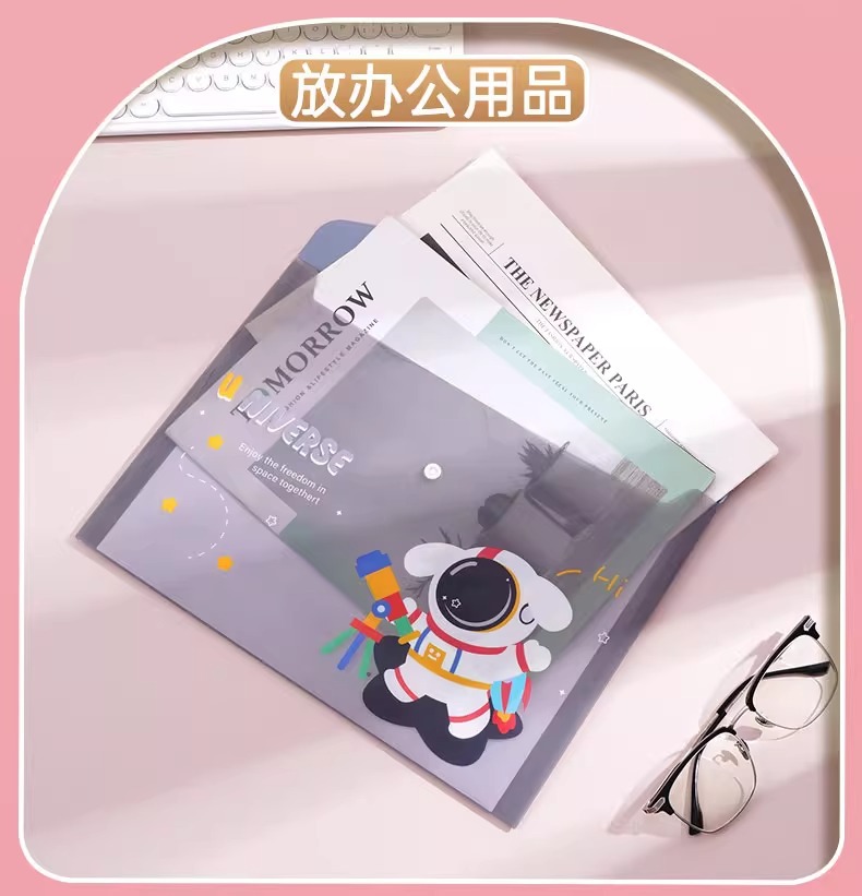 파일 가방 투명 학생 만화 귀여운 다크 버튼 파일 가방 플라스틱 저장 테스트 종이 저장 데이터 폴더