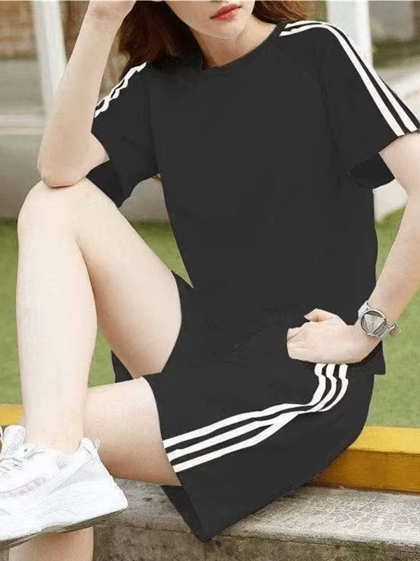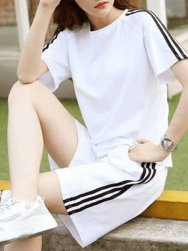 타이드 룬 천 여름 투피스 루즈 캐주얼 반팔 티셔츠 3 바 러닝 편안한 스포츠 세트