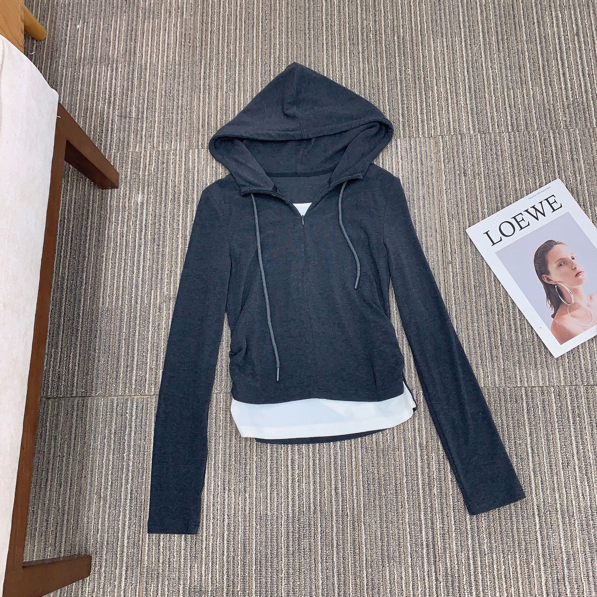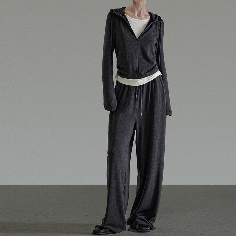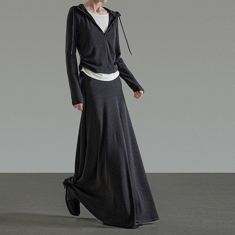 재고 있음 UNSPO 여성용 스포츠 세트 가을용 루즈핏 슬림 후드티 스트레이트 캐주얼 팬츠 롱 스커트 세트