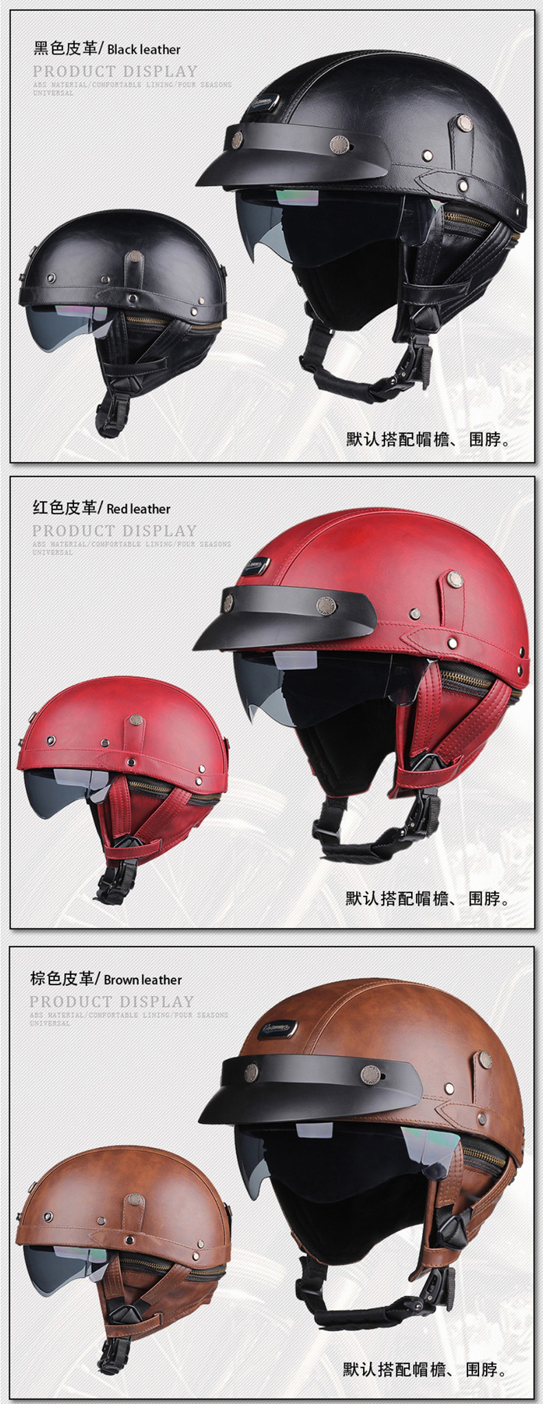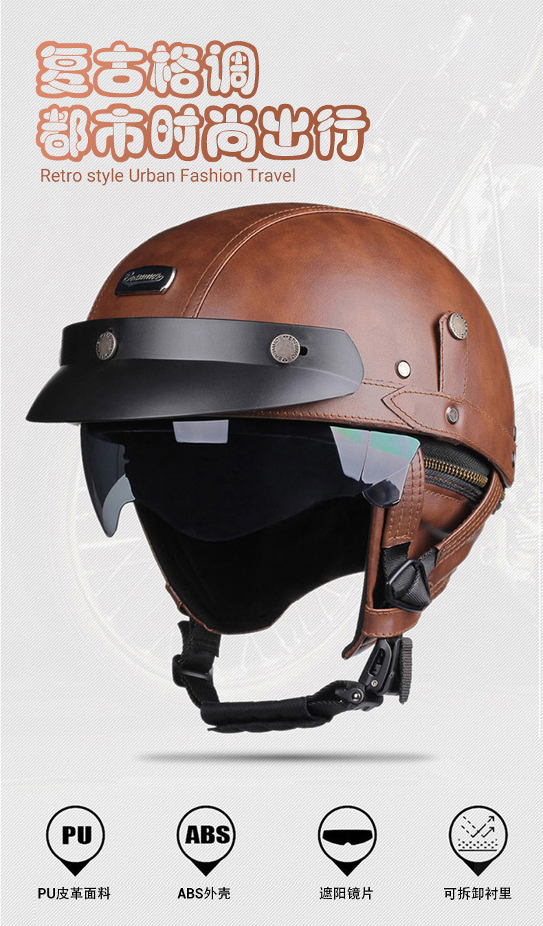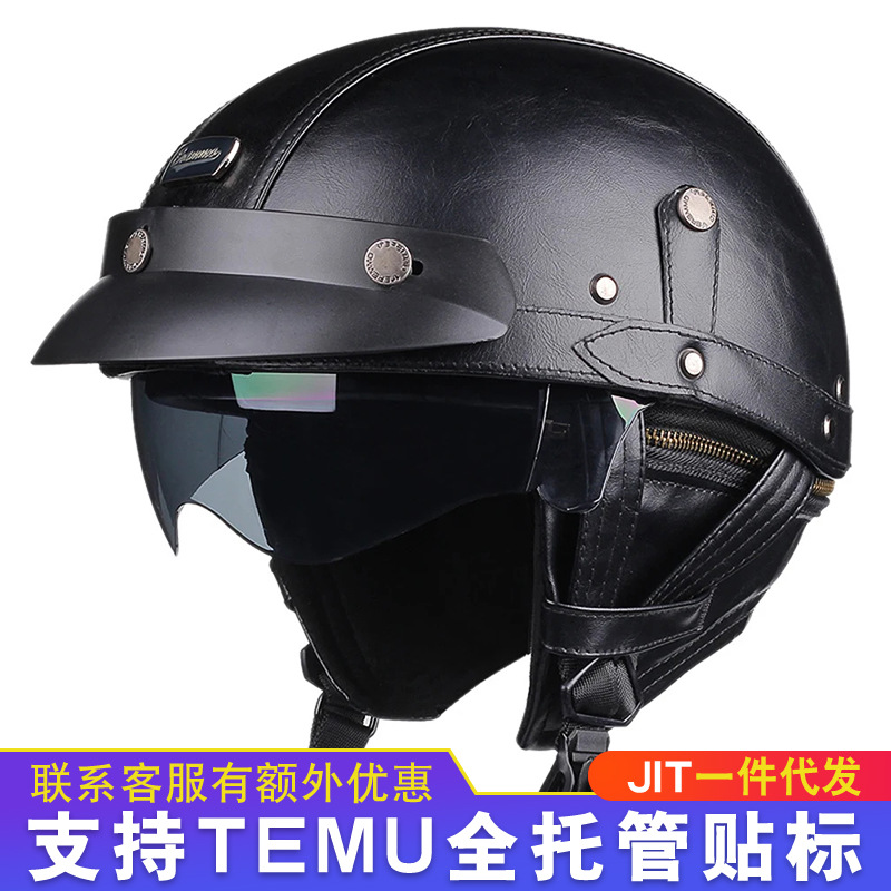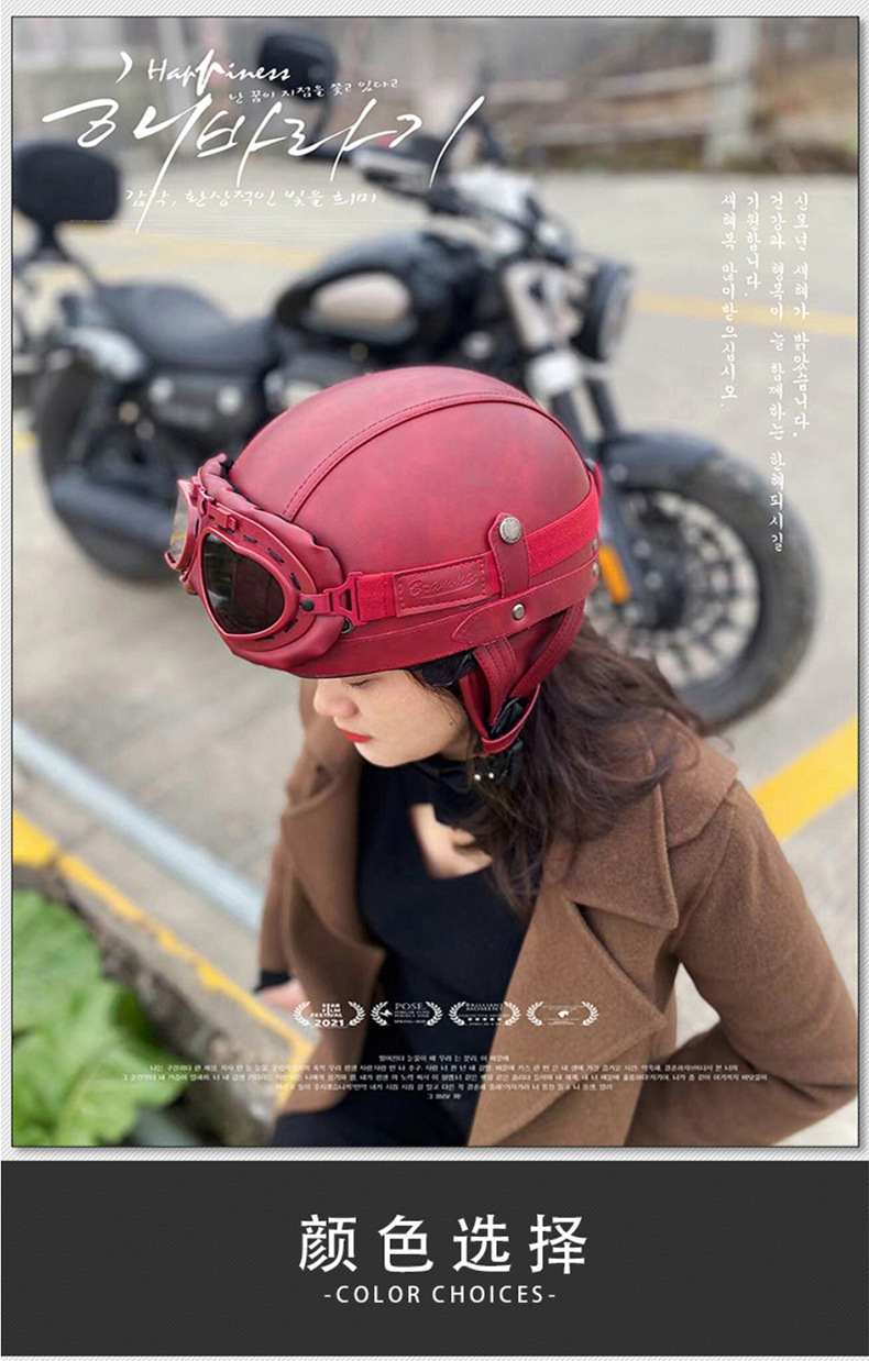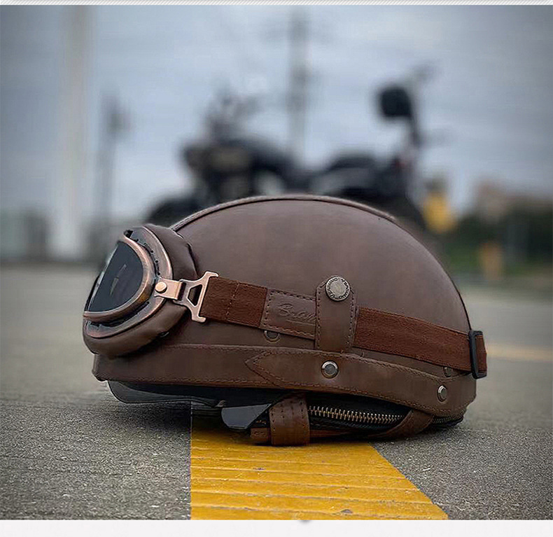 오토바이 헬멧 하프 헬멧 사계절 남녀 공용 야외 크루징 경량 가죽 헬멧 안전 라이딩 헬멧 라이더