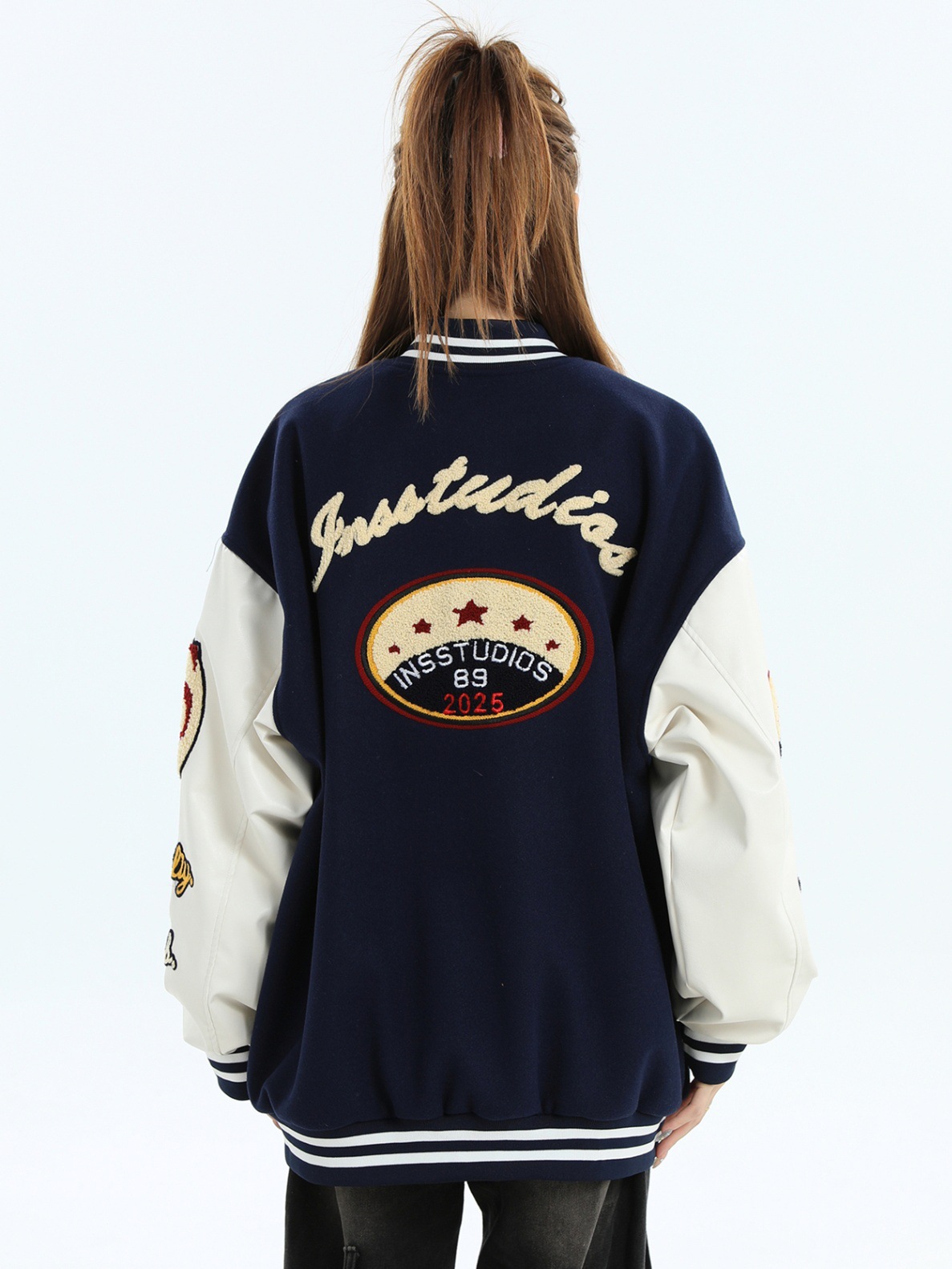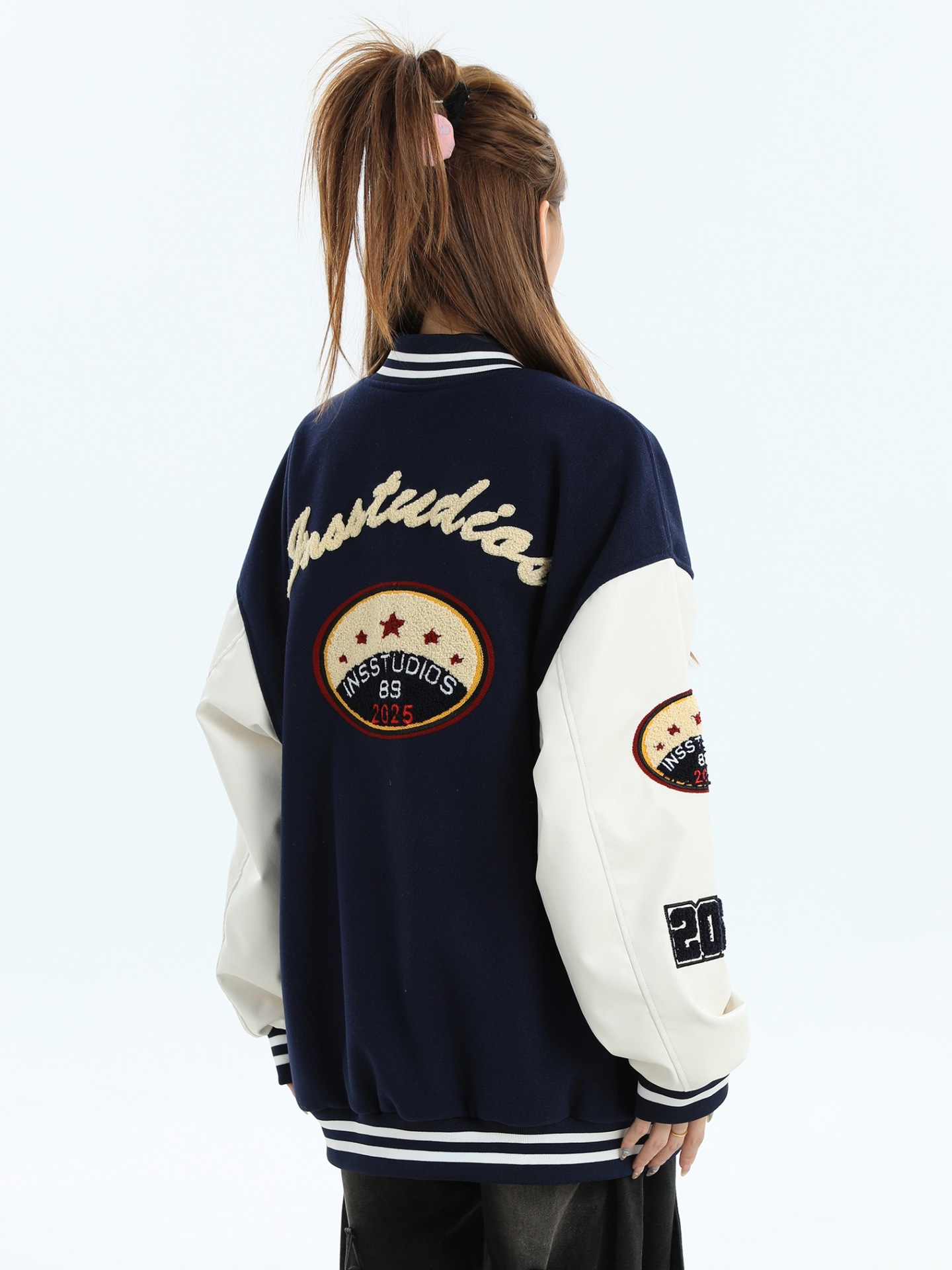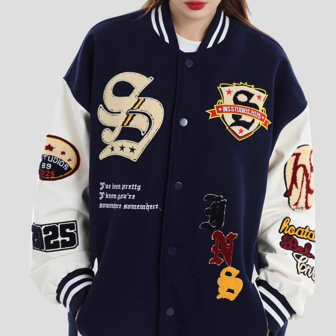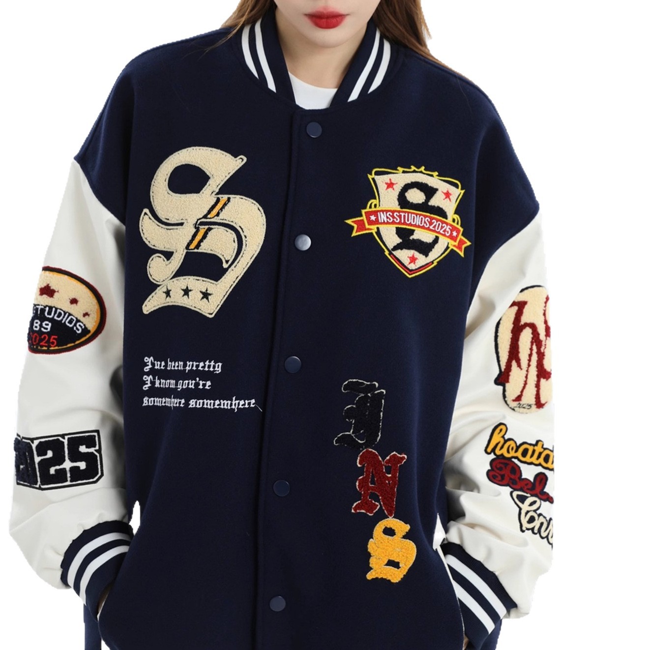 모직과 가죽 혼합 재킷 남성 청소년용 2025 신상 캐주얼 루즈핏 가을 겨울 후드 트렌디 브랜드 재킷