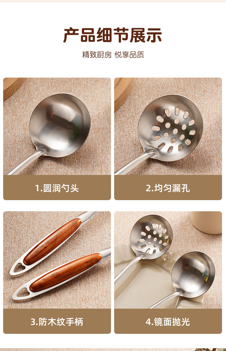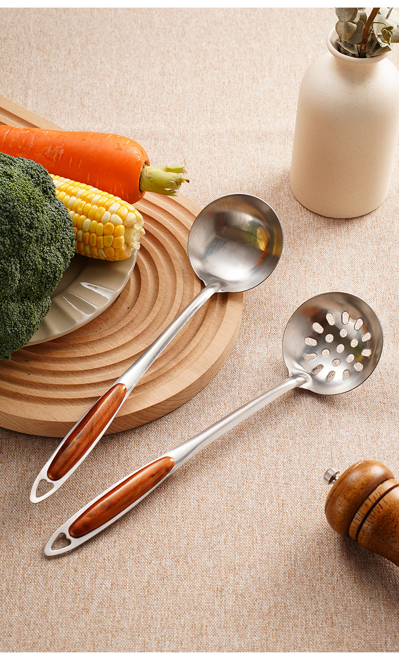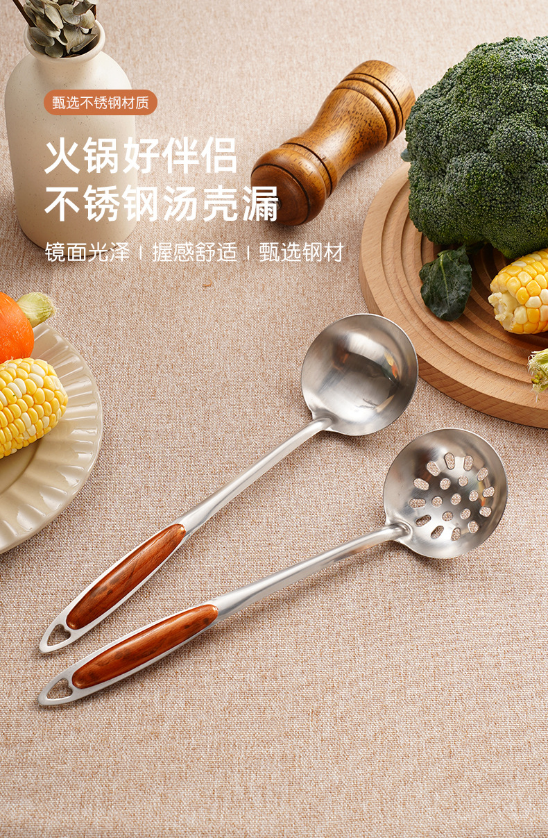 비 자성 스테인레스 스틸 수프 수프 스푼 누설 주방 도구 가정용 오일 스푼 요리 식기 핫 팟 스푼 재고
