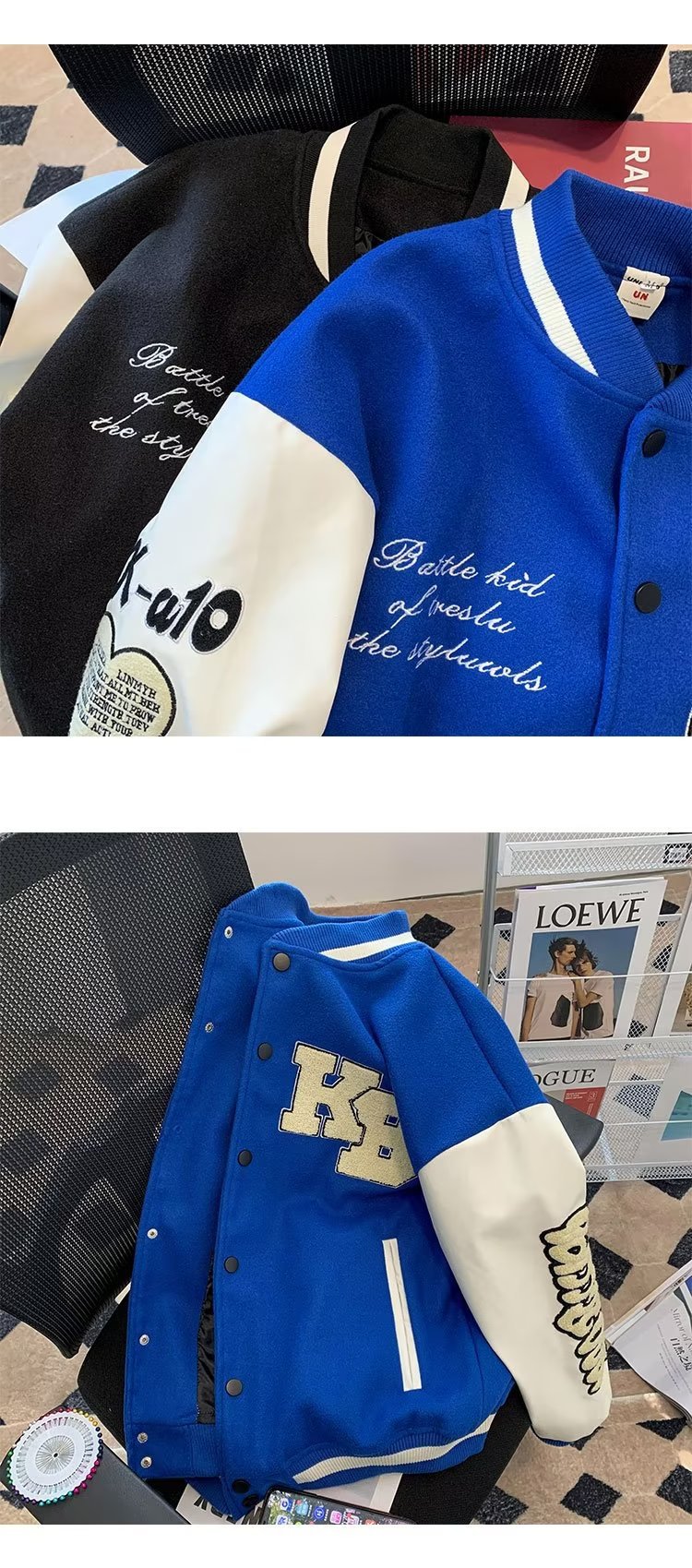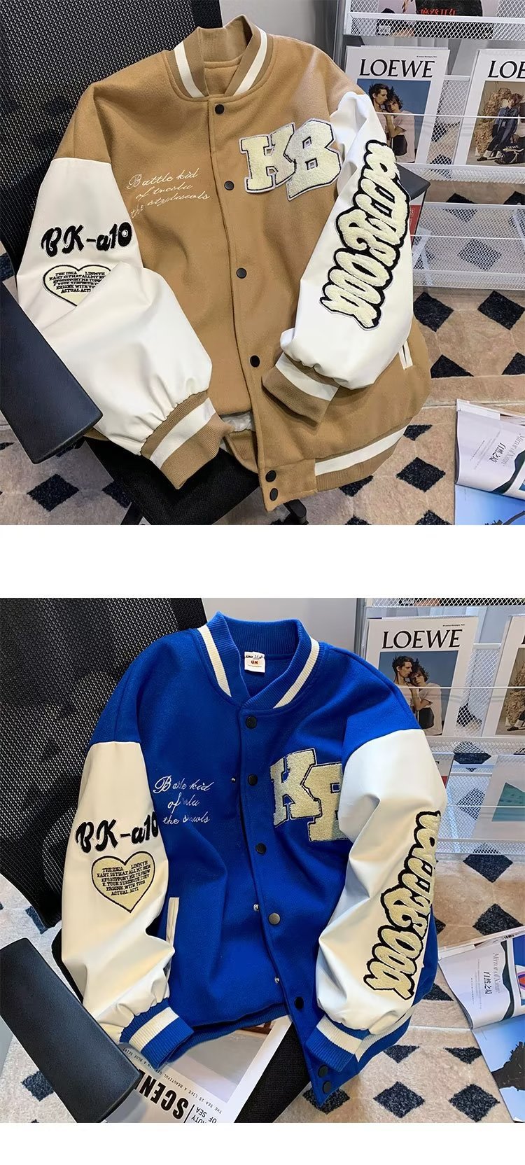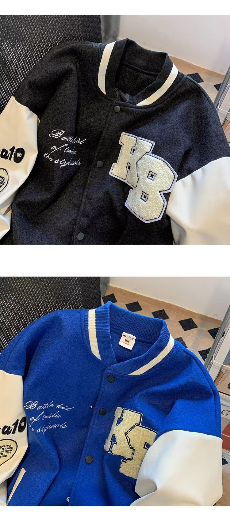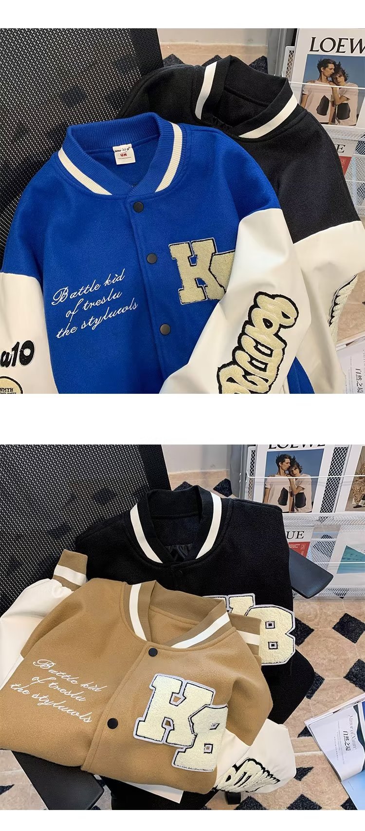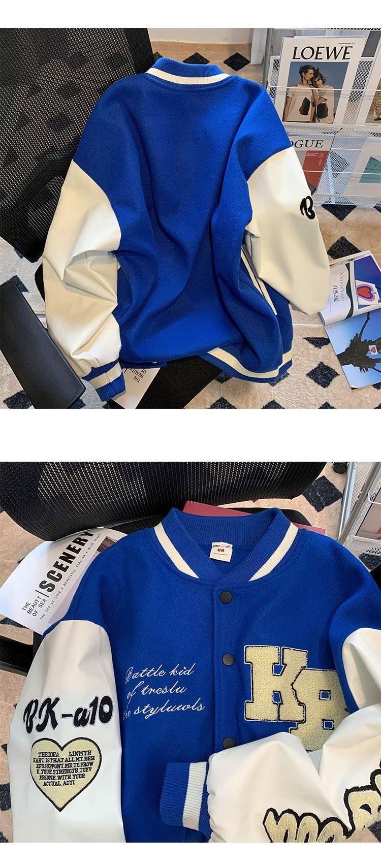 클라인 블루 야구 세트 재킷 남자 가을 새로운 올매치 핸섬 느슨한 모직 스티칭 퍼가죽 패셔너블 재킷