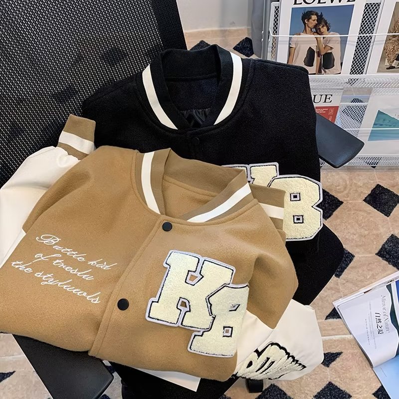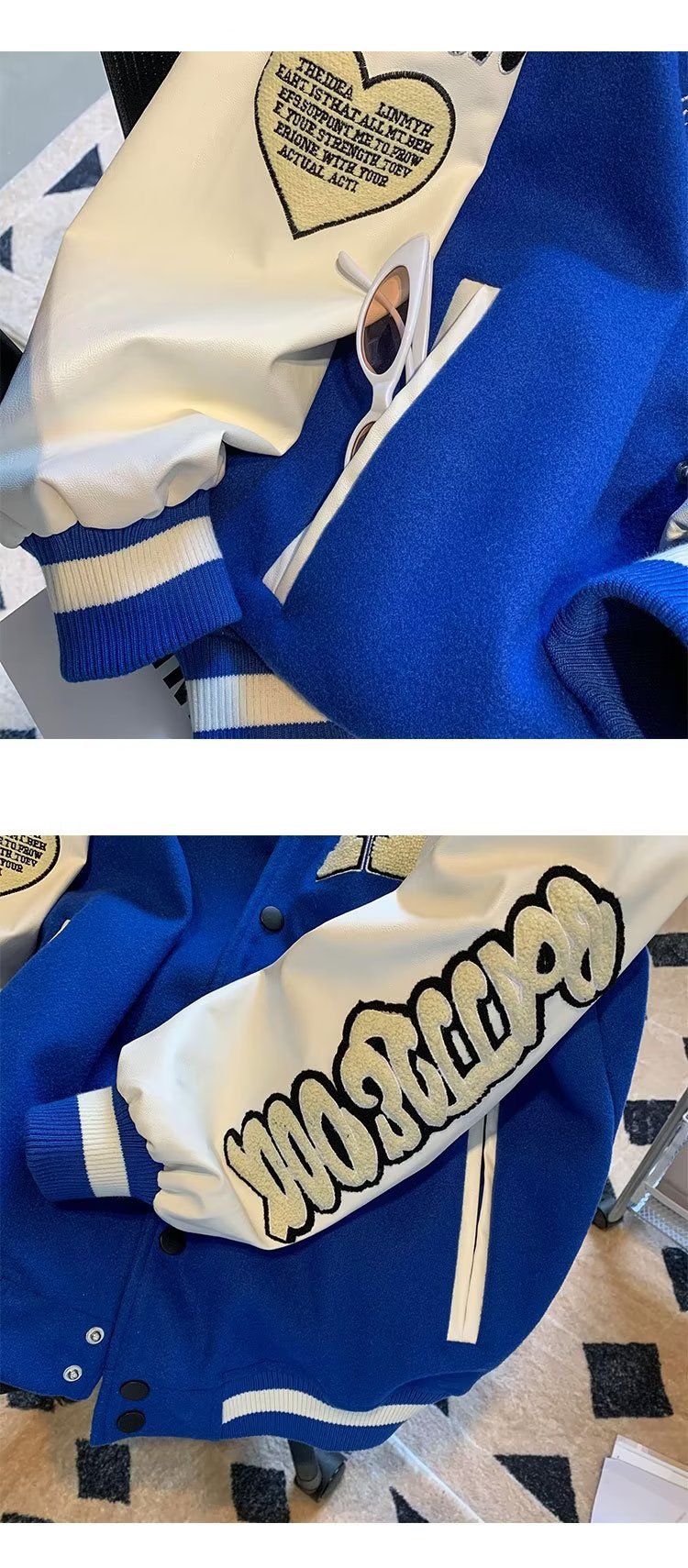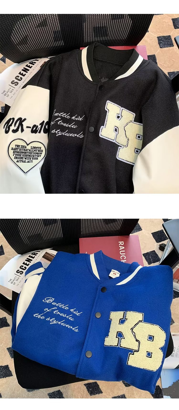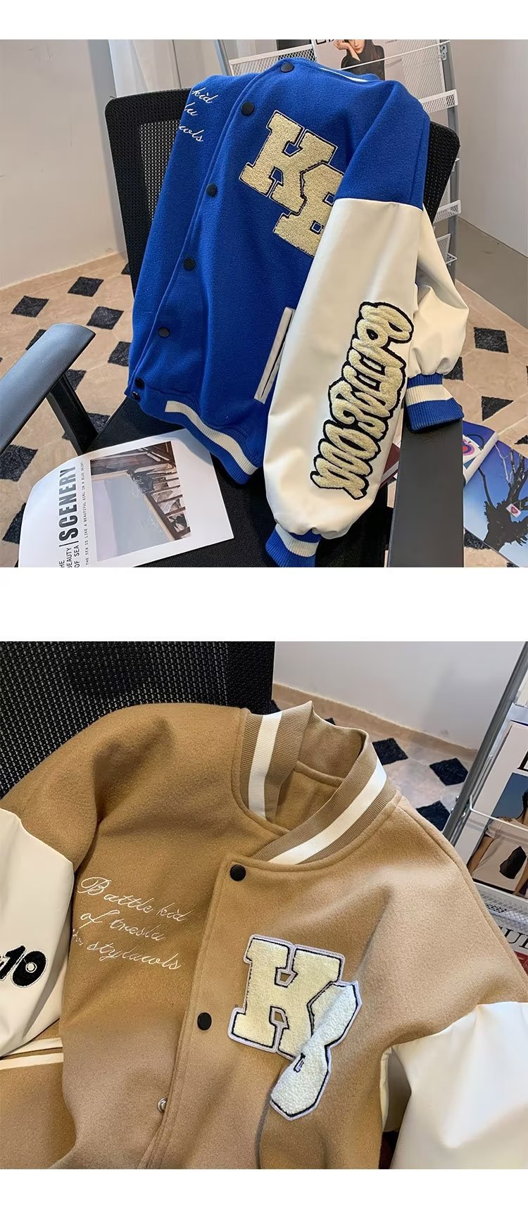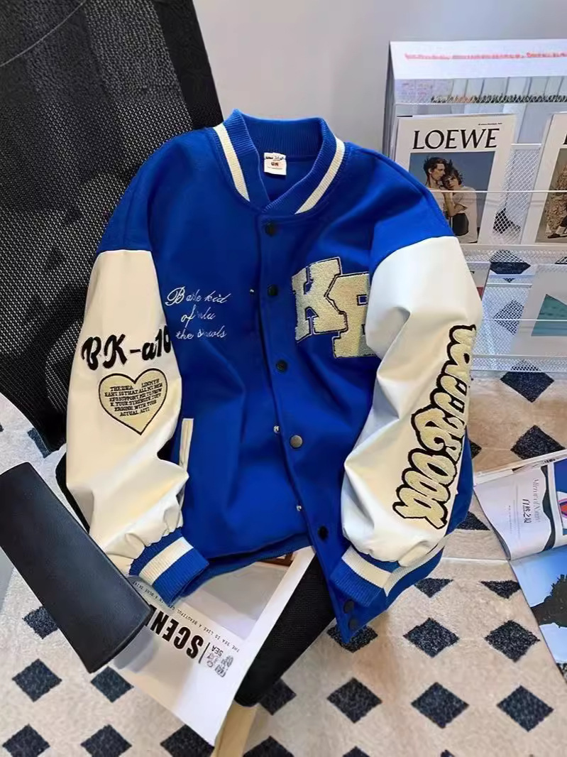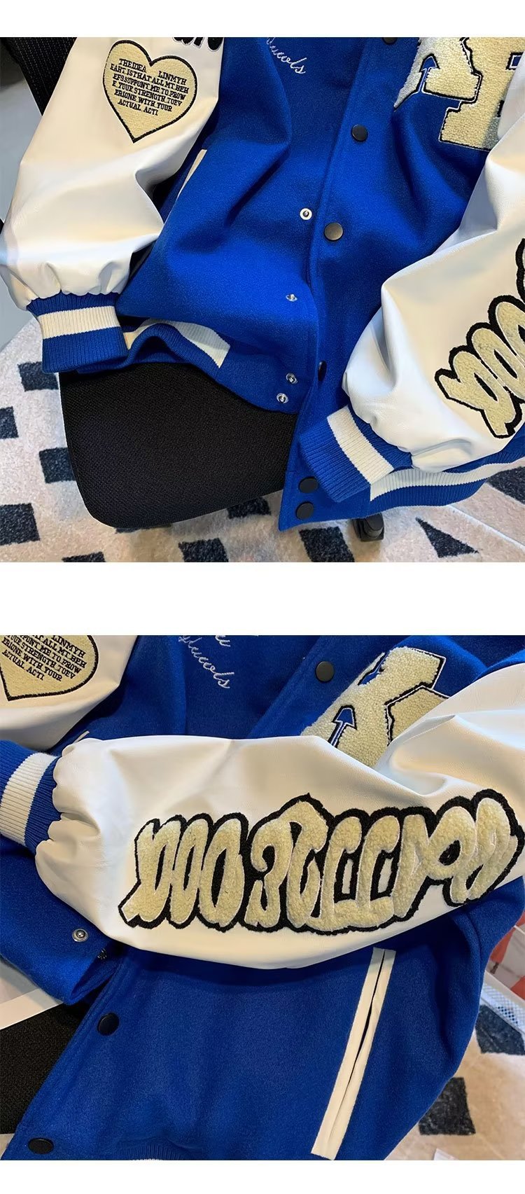 클라인 블루 야구 세트 재킷 남자 가을 새로운 올매치 핸섬 느슨한 모직 스티칭 퍼가죽 패셔너블 재킷