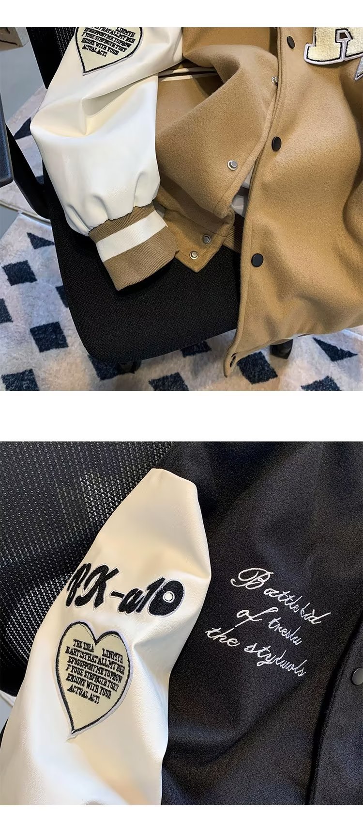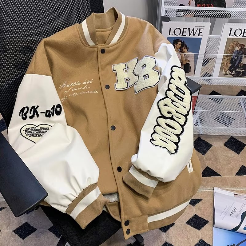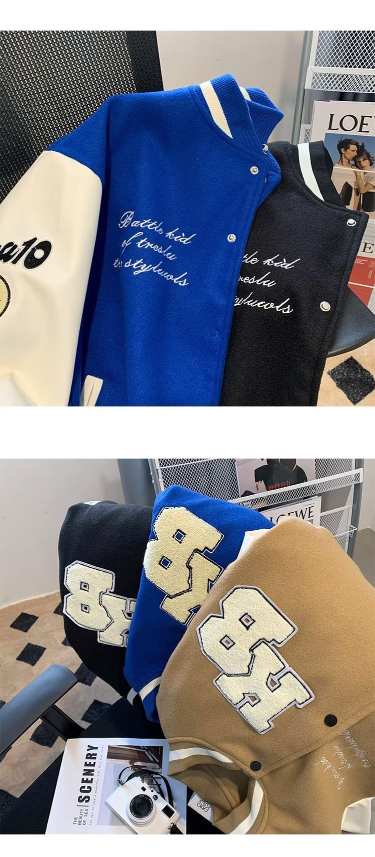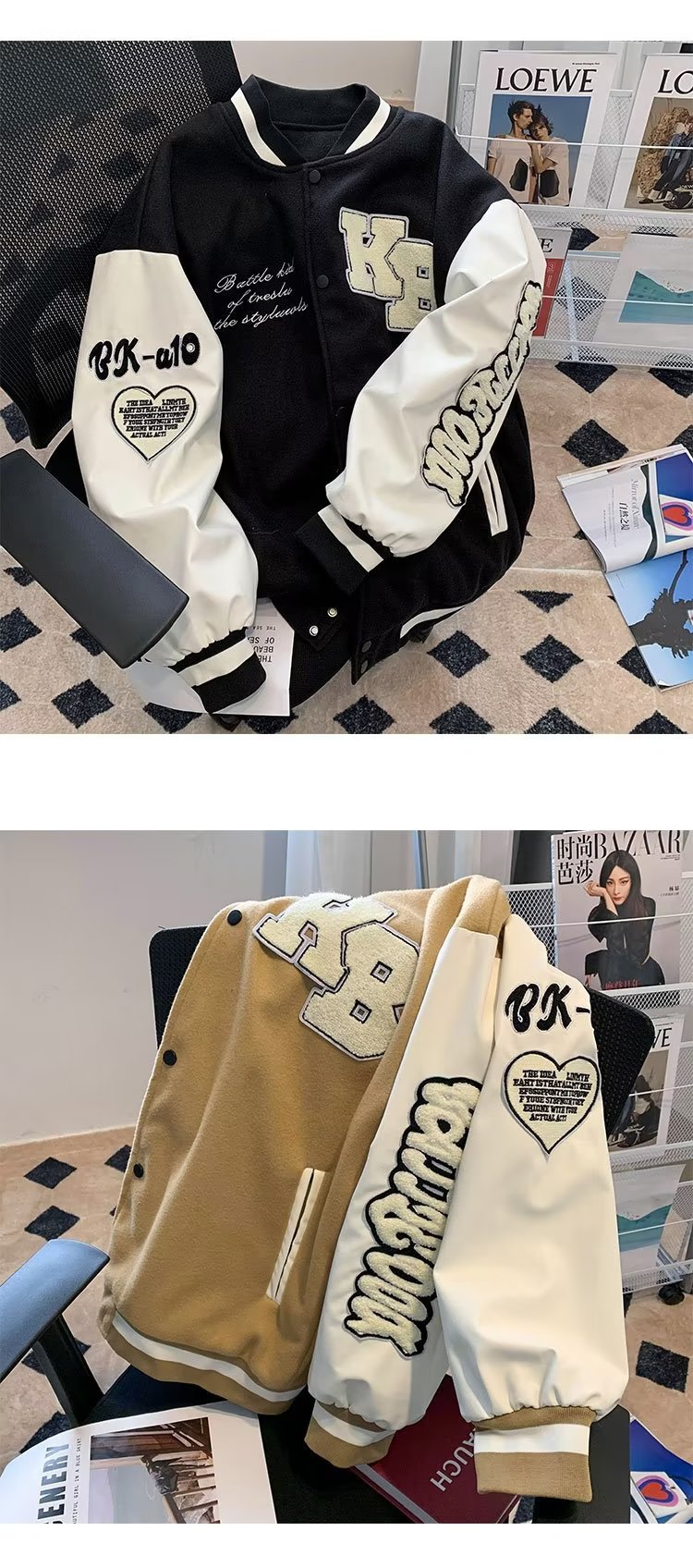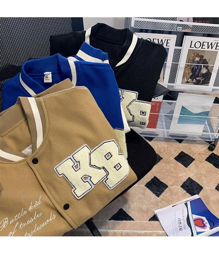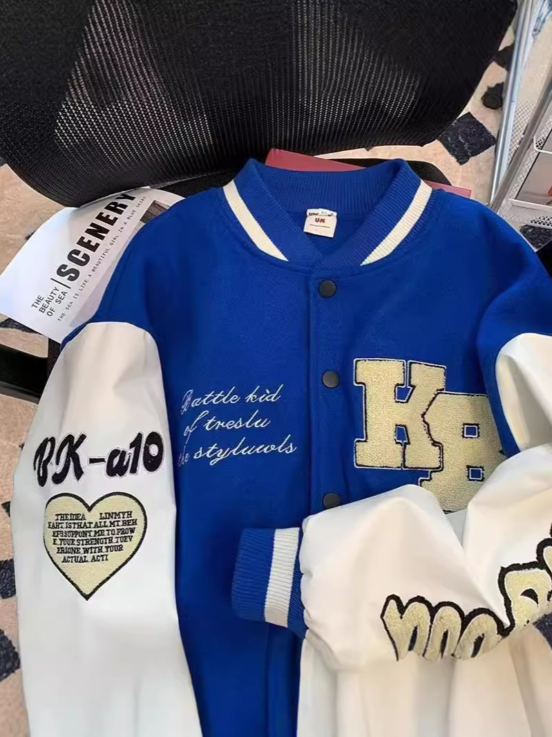클라인 블루 야구 세트 재킷 남자 가을 새로운 올매치 핸섬 느슨한 모직 스티칭 퍼가죽 패셔너블 재킷