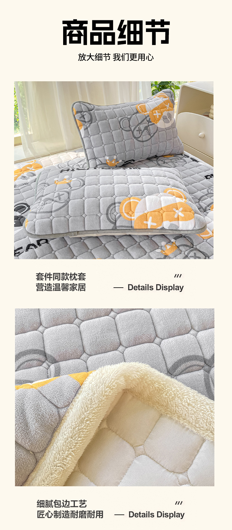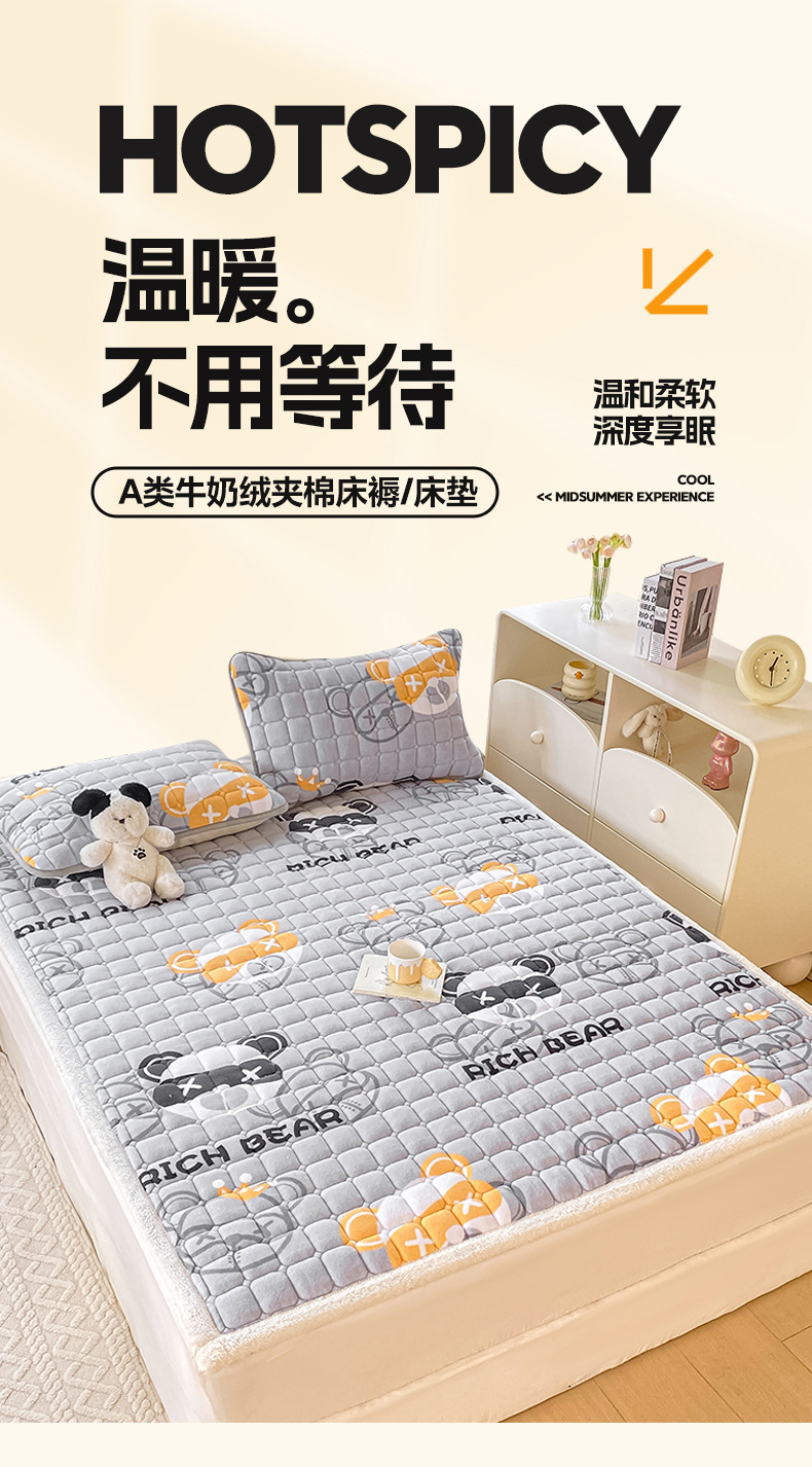 밀크 벨벳 매트리스 3종 세트: 200*220cm + 베갯잇 한 쌍