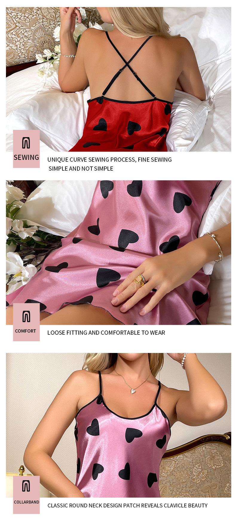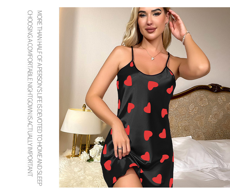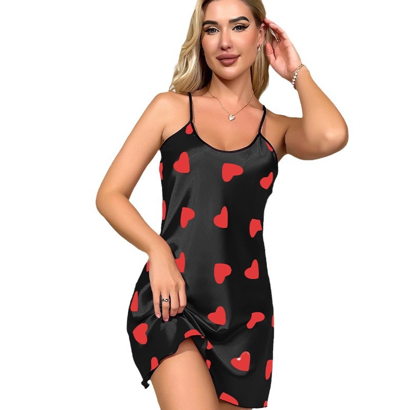 여름 아이스 실크 잠옷, 여성스러운 슬립 드레스, 실크 느낌의 백리스 잠옷, 하트 모양 짧은 드레스, 해외 무역, 시원함