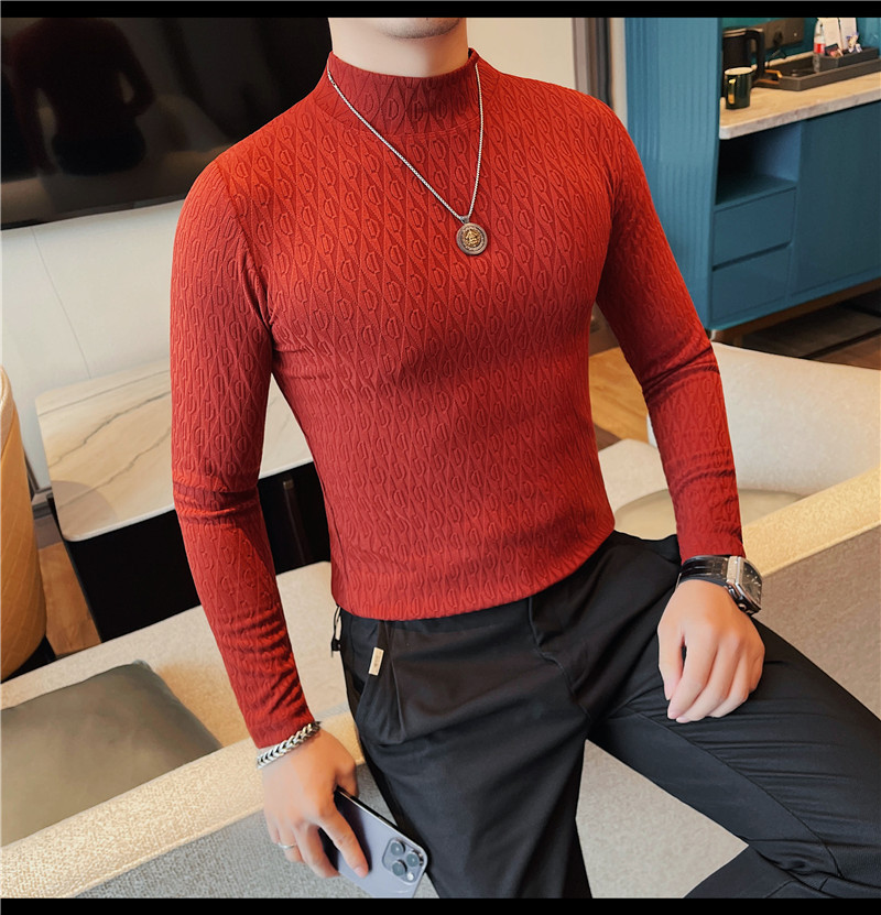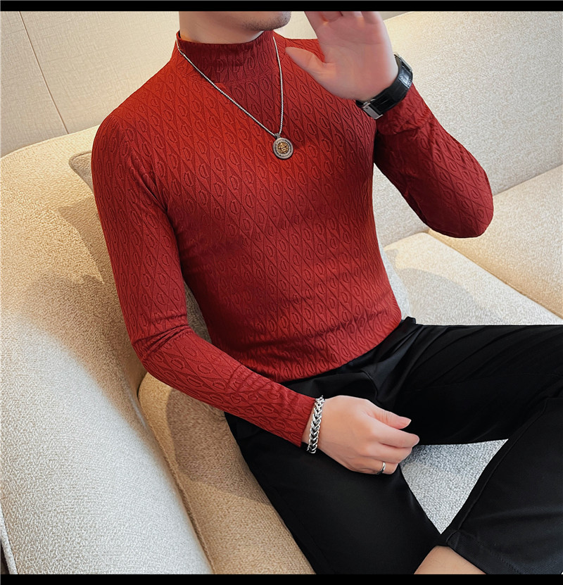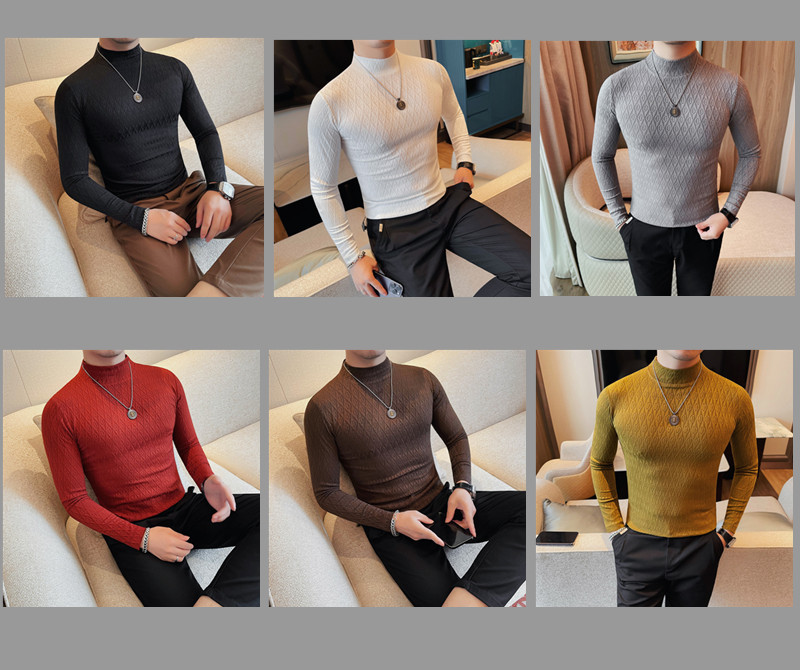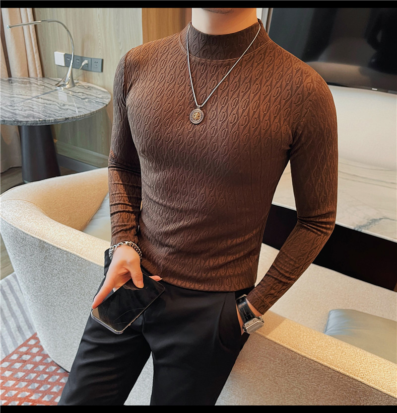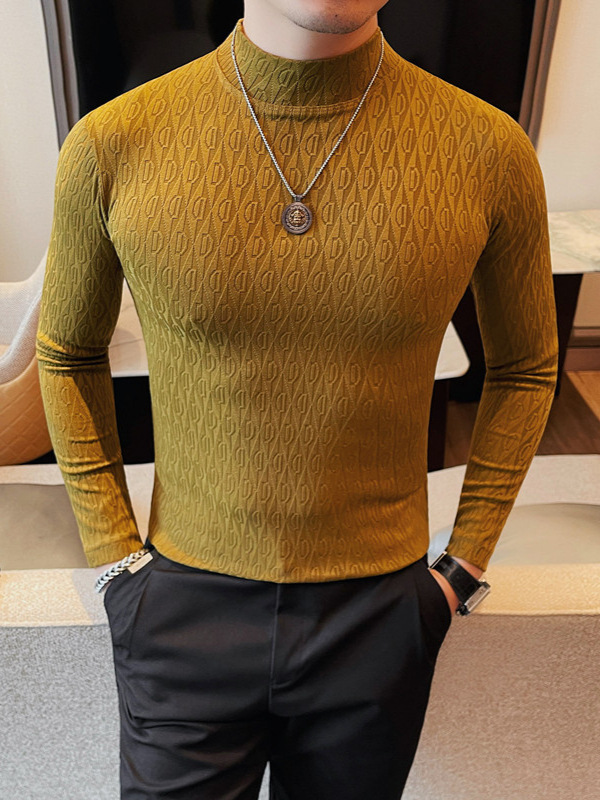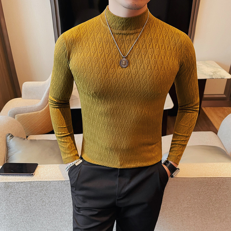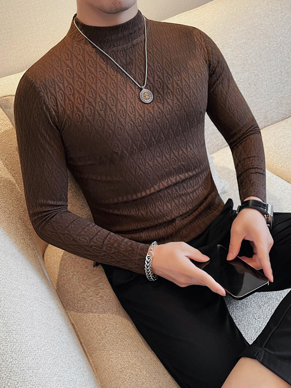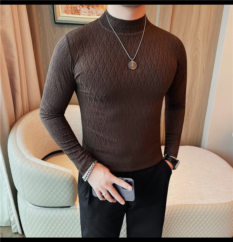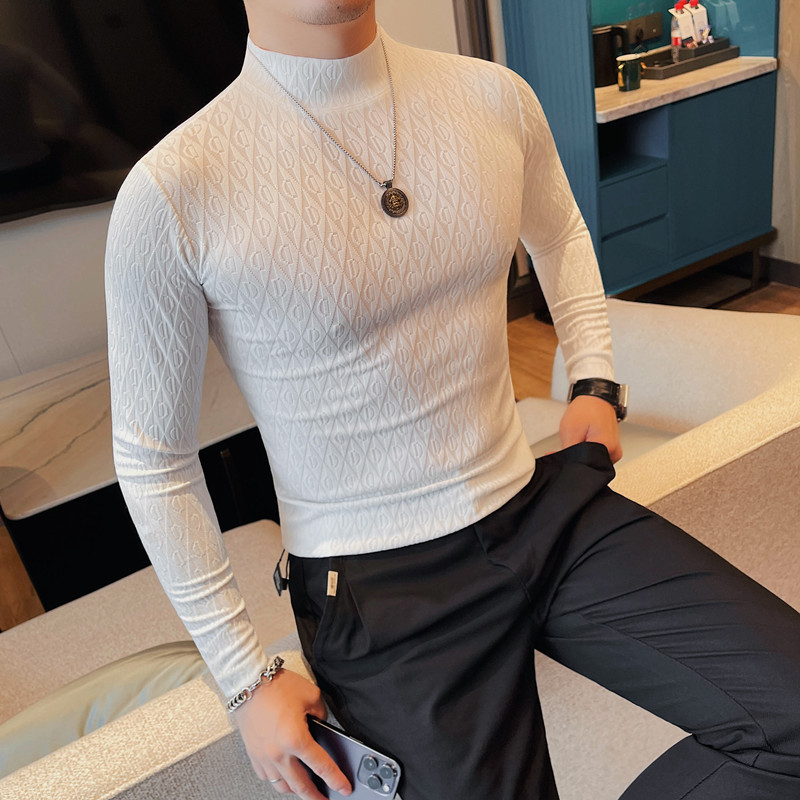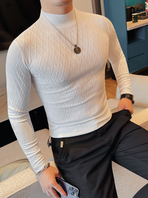남성용 신형 미드 칼라 긴팔 티셔츠 슬림 한국 바닥 셔츠 하이 센스 체크 무늬 2024 가을 의류