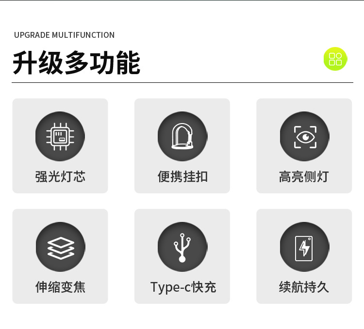 국경 다기능 손전등 USB 충전식 야외 텐트 캠핑 조명 가정용 비상 유지 보수 작업 조명