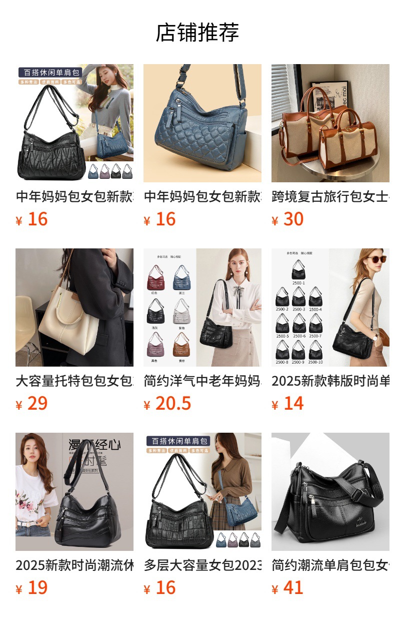 2025년 신형 대용량 크로스백 단색 심플 아웃도어 캐주얼 숄더백 출퇴근용 다용도 중년 엄마 가방
