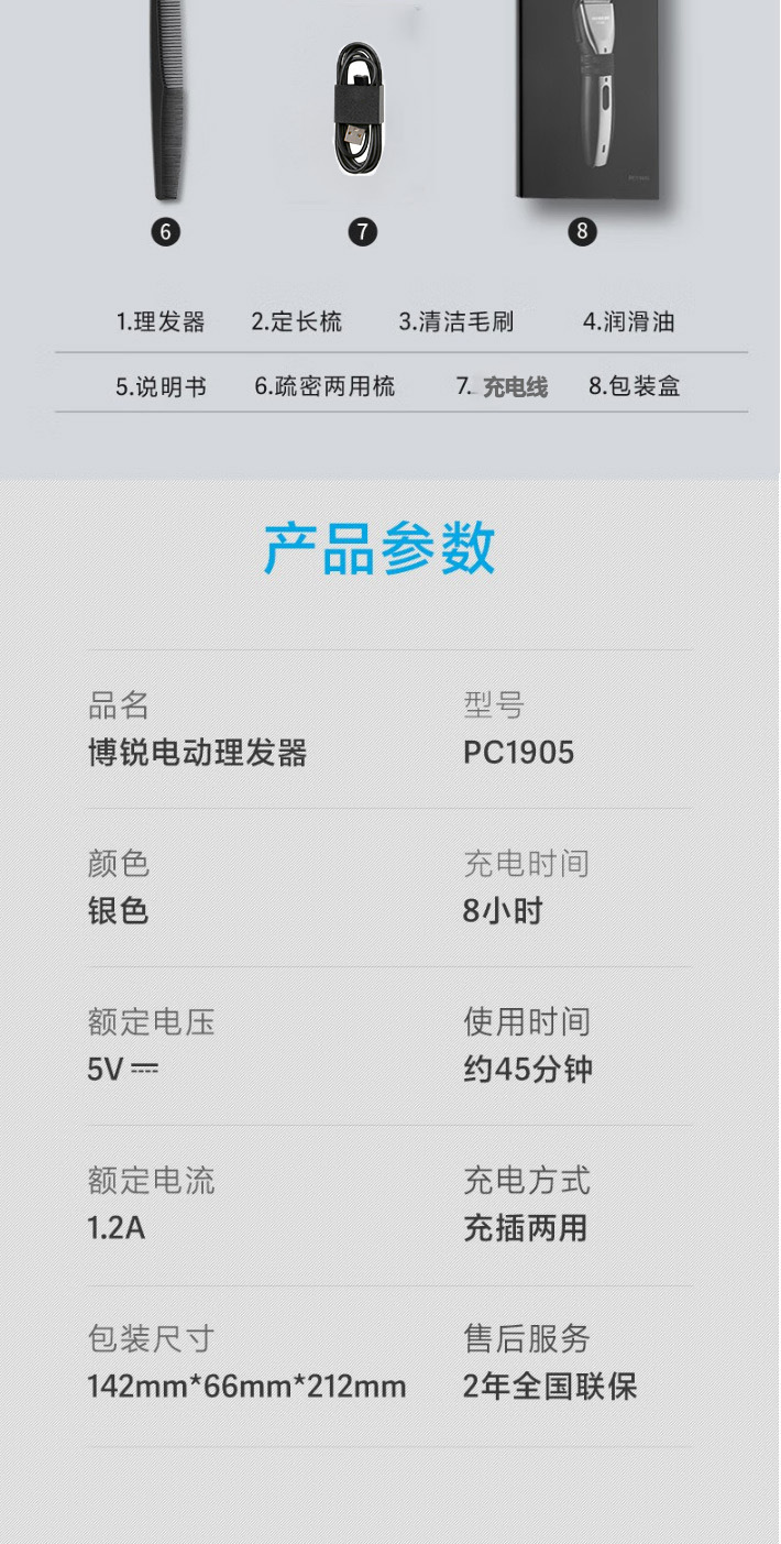PC1905 이발기, 전기 이발기, 충전식 전기 이발기, 가정용 전기 이발기