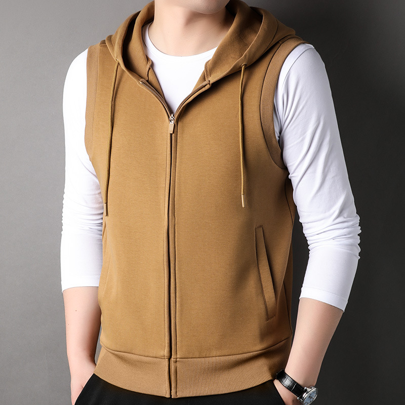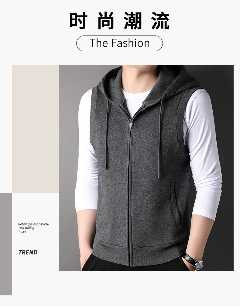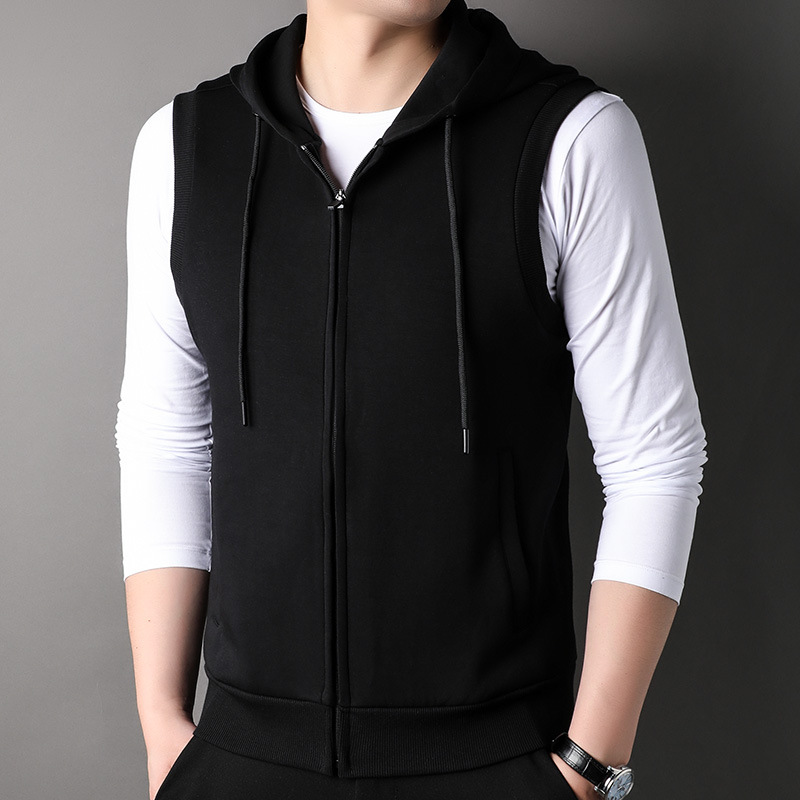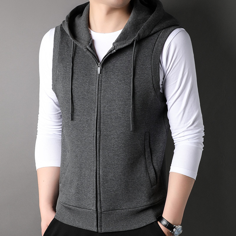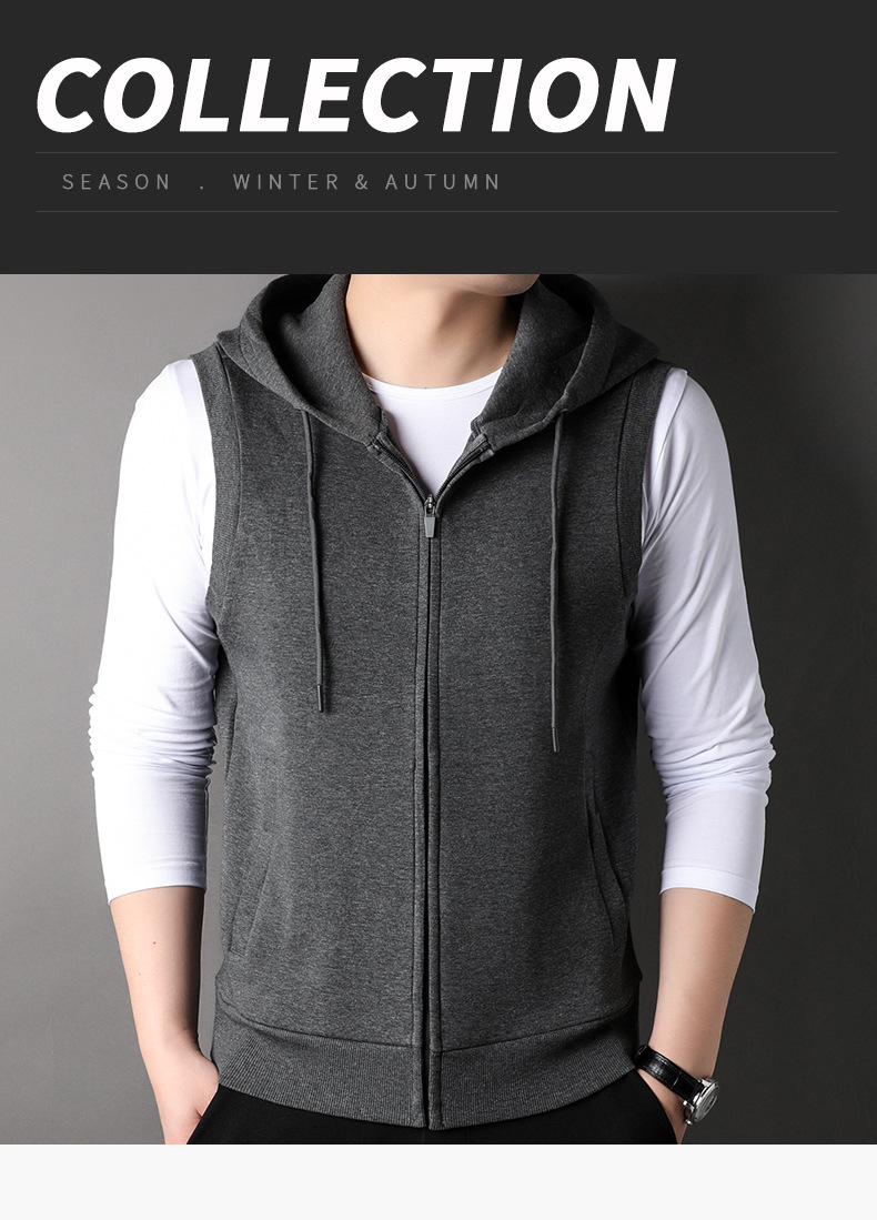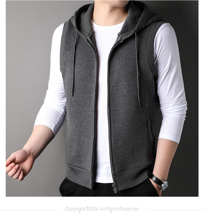 후드 카디건 조끼 스웨터 남자 캐주얼 봄과 가을 뉴 올 매치 탑 젊고 중년의 민소매 조끼 재킷