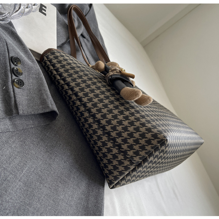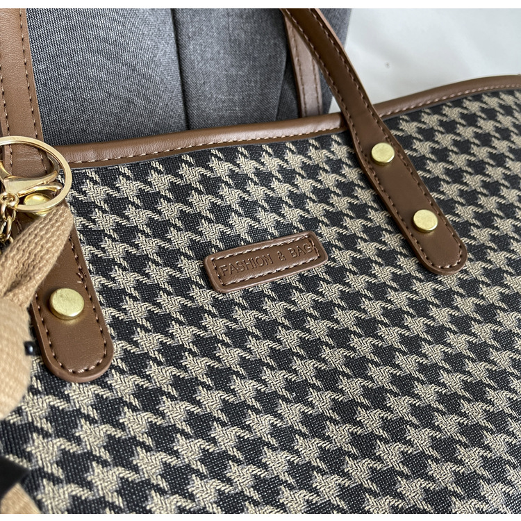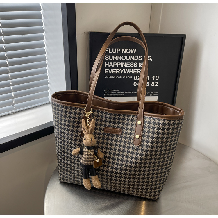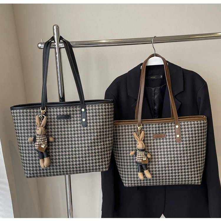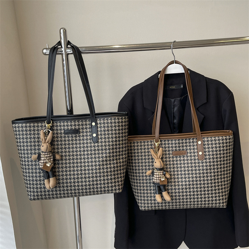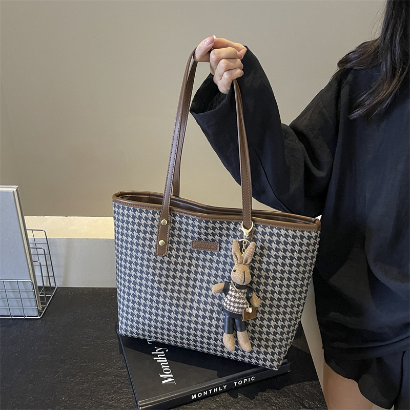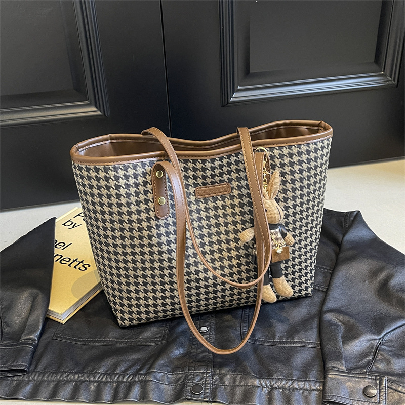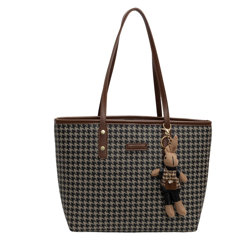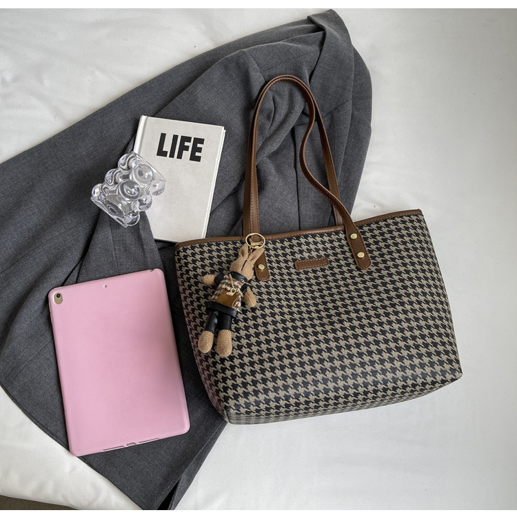 패션 통근 대용량 가방 새로운 격자 무늬 유행 레트로 캐주얼 어깨 가방 휴대용 토트 가방 여성용 가방