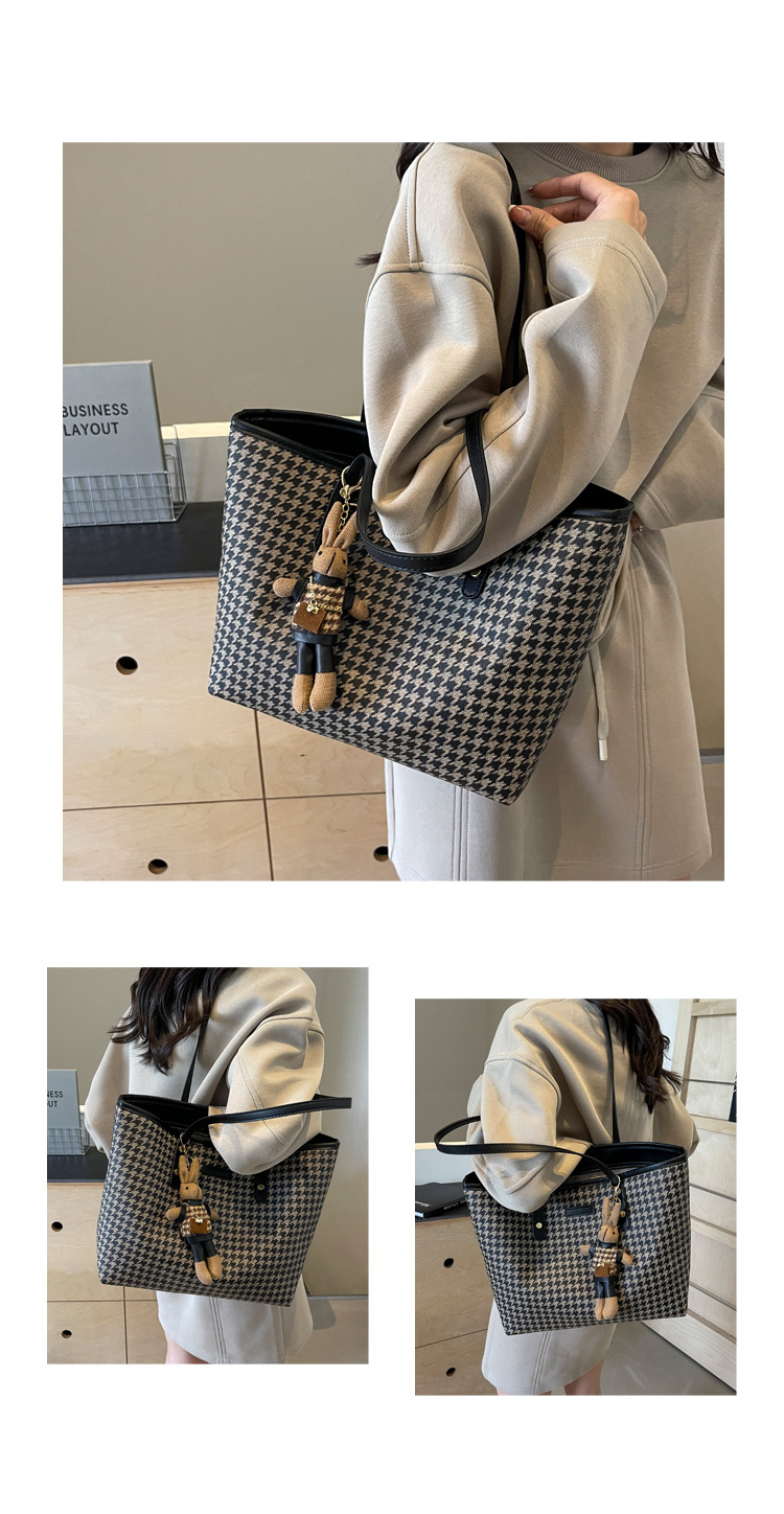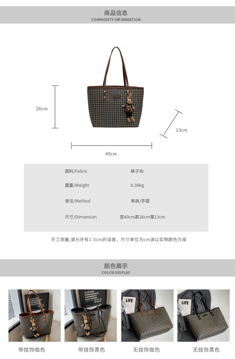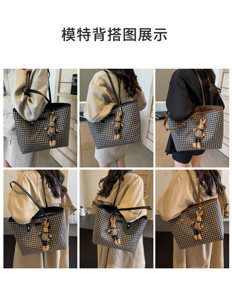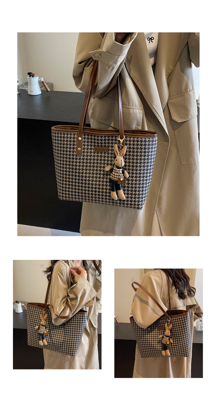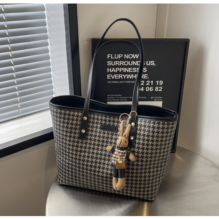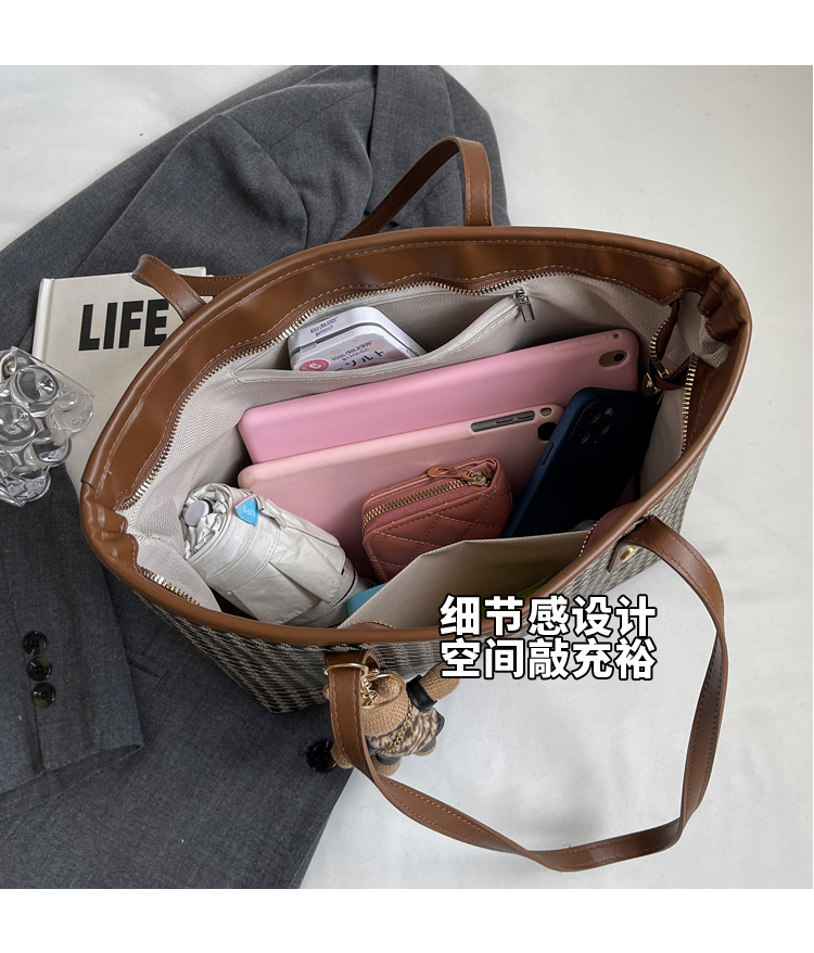 패션 통근 대용량 가방 새로운 격자 무늬 유행 레트로 캐주얼 어깨 가방 휴대용 토트 가방 여성용 가방