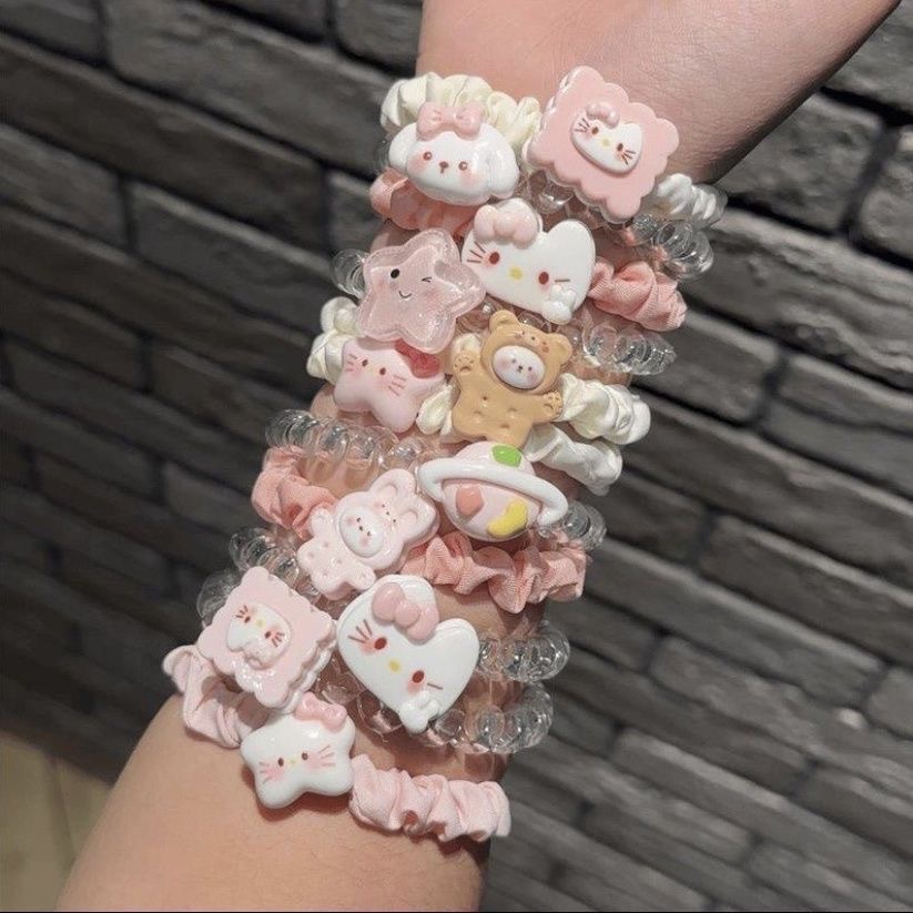 새로운 달콤한 공주 헤어 링 6 피스 세트 폭발 KT 고양이 투명 전화 라인 헤어 링 5 피스 세트 귀여운 달콤한
