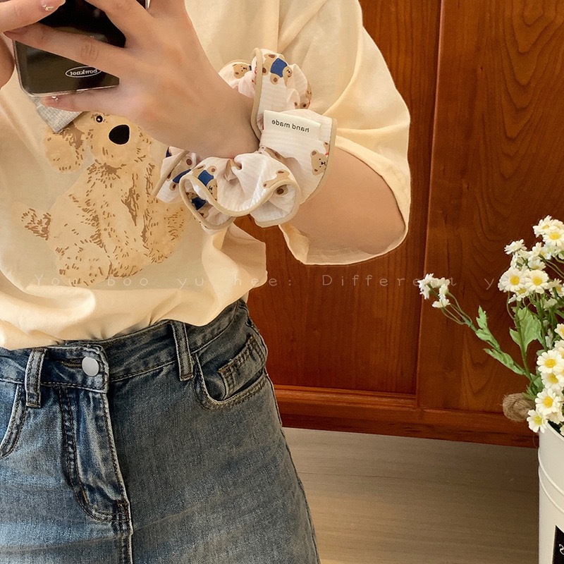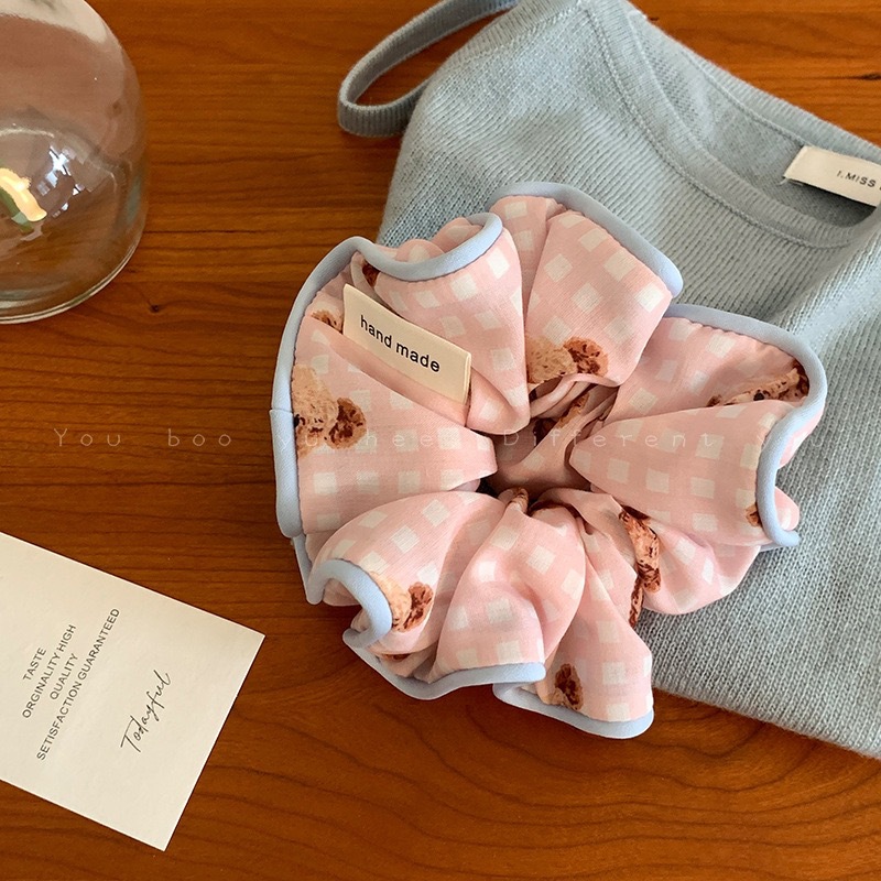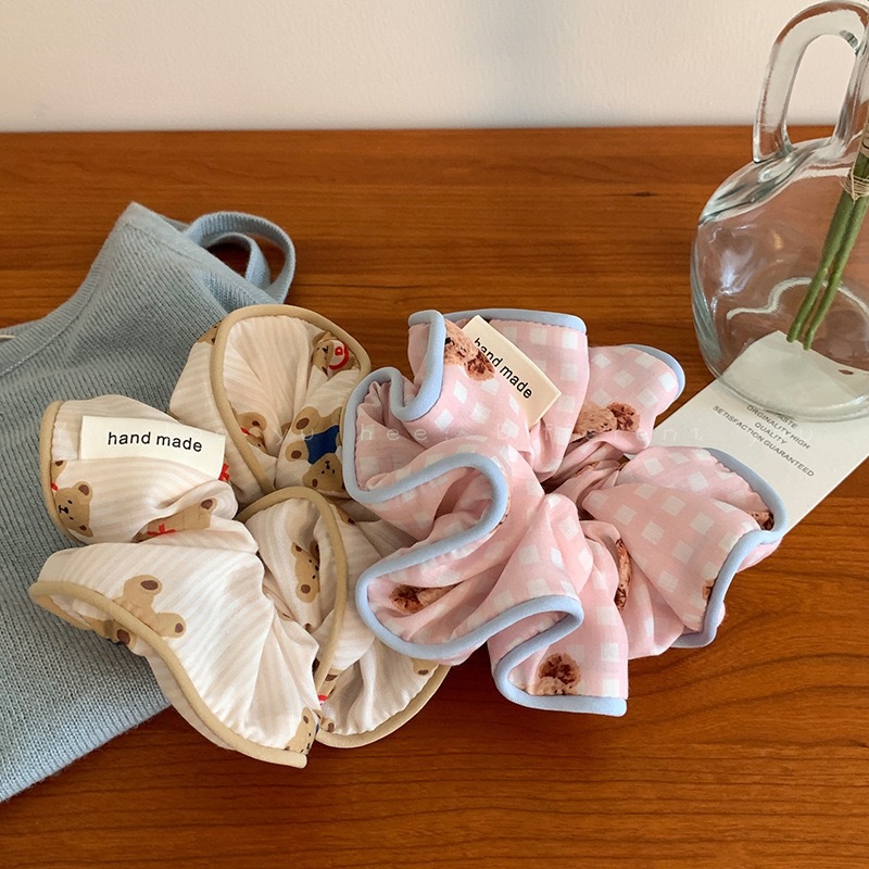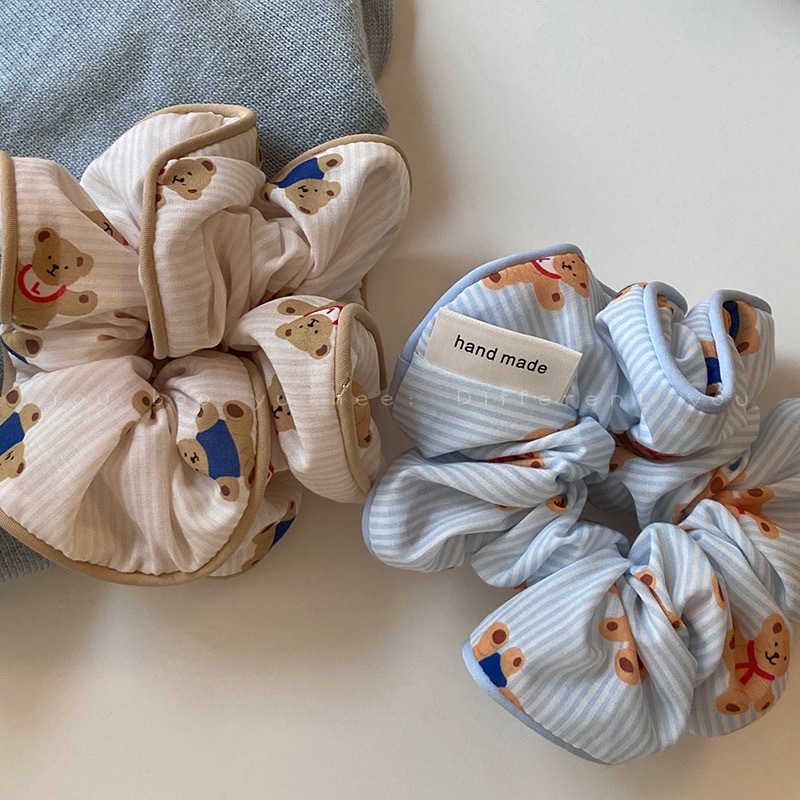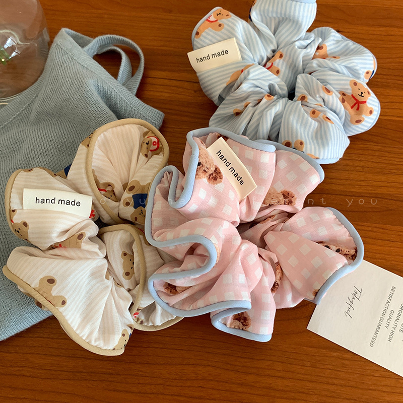 귀여운 한국 곰 줄무늬 큰 장내 머리 반지 달콤한 소녀 만화 헤어 액세서리 모든 일치 포니 테일 헤어 로프 헤드웨어