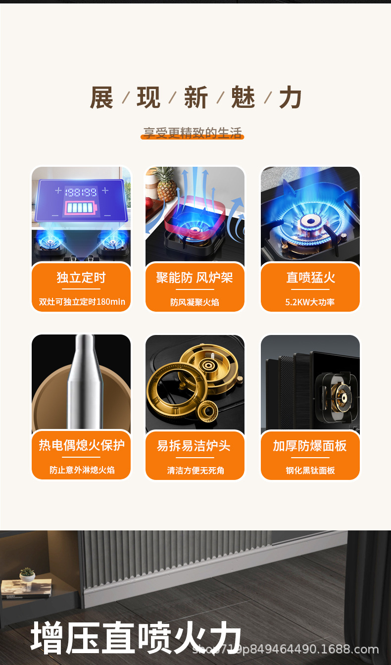 가정용 가스레인지, 2구 직분사 가압 강력화력, 데스크탑 및 빌트인 겸용, 천연가스 및 액화가스 사용, 고화력, 에너지 절약