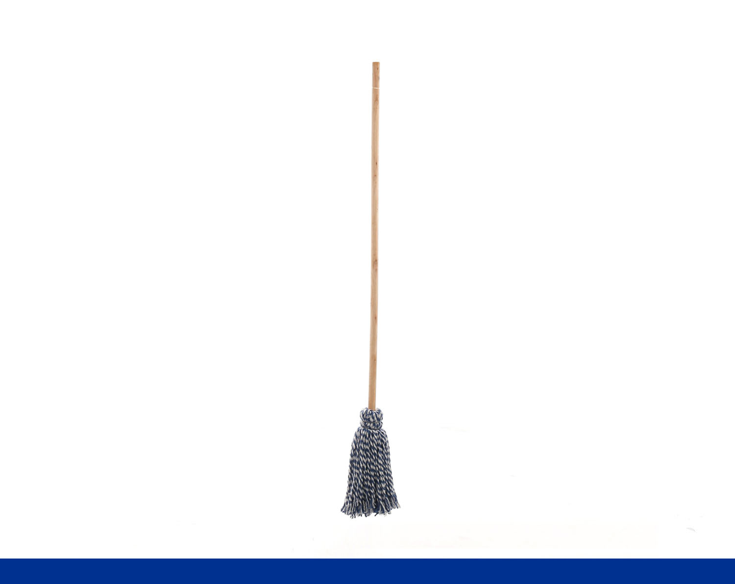 파란색과 흰색의 구식 나무 대걸레 묶음(10개)