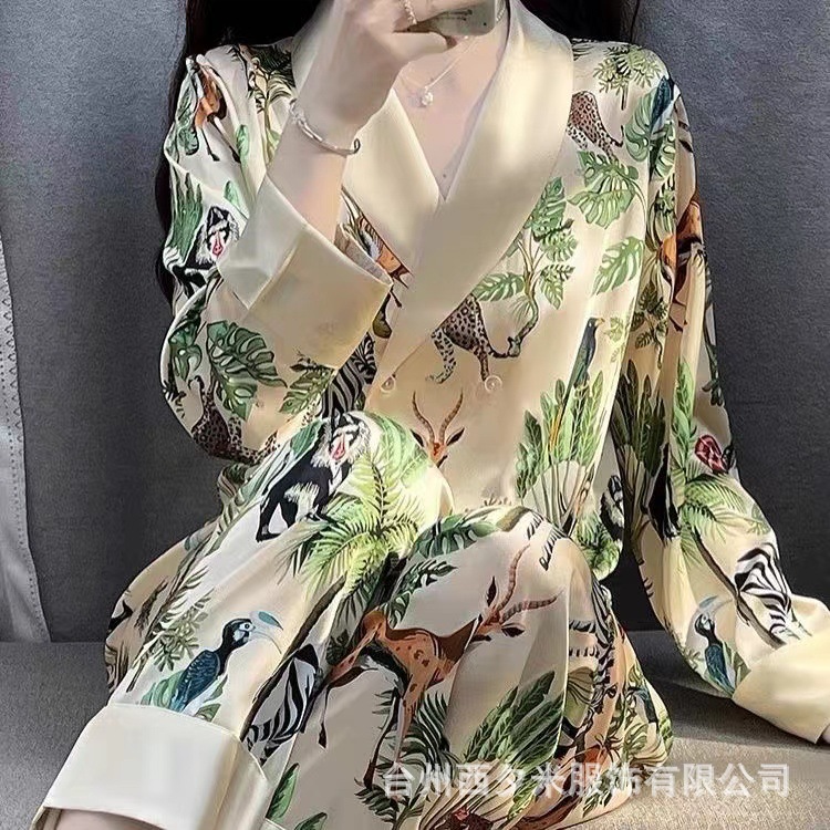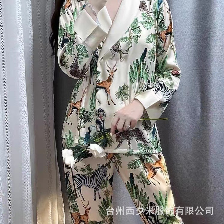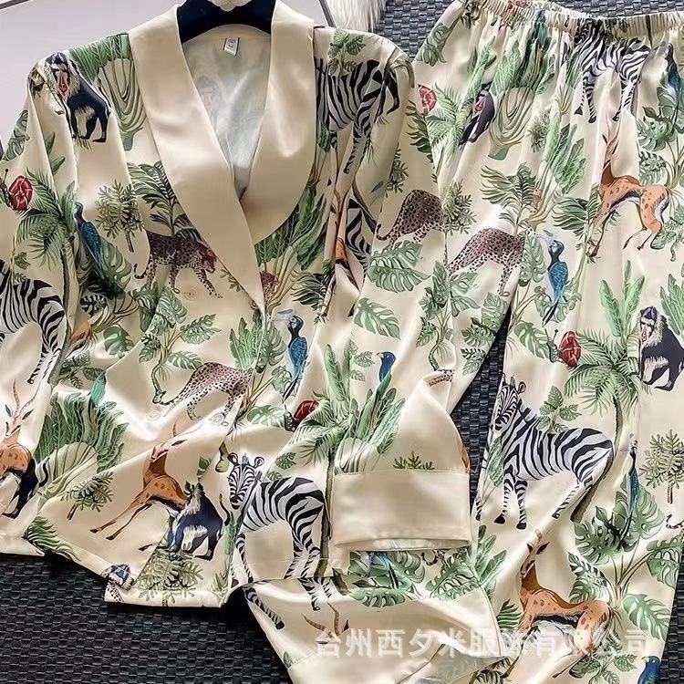여성용 실크 잠옷, 봄 가을용 긴팔 얇은 스타일, 2024년 신상 여름 고급 홈웨어 세트