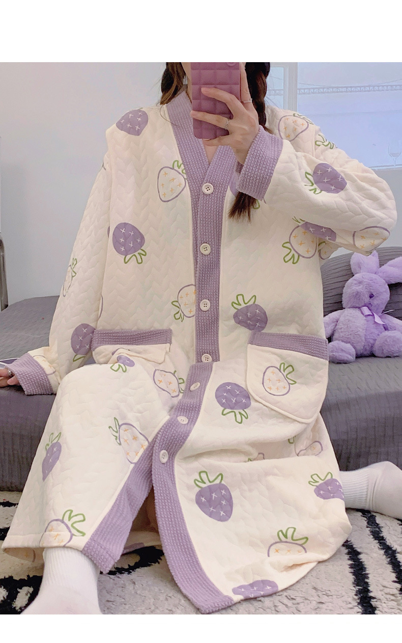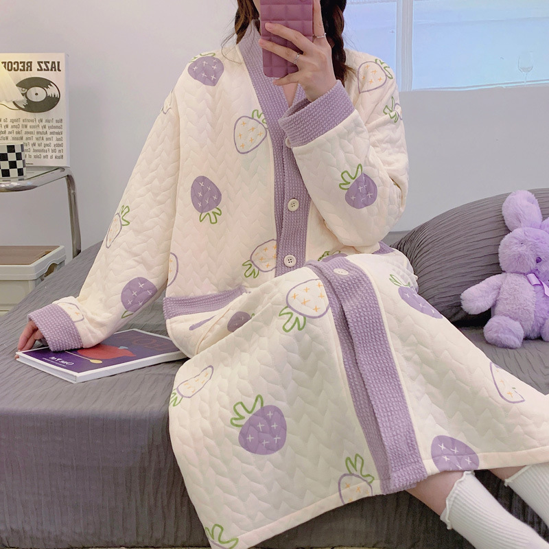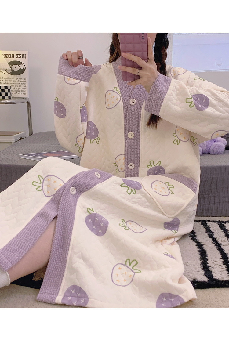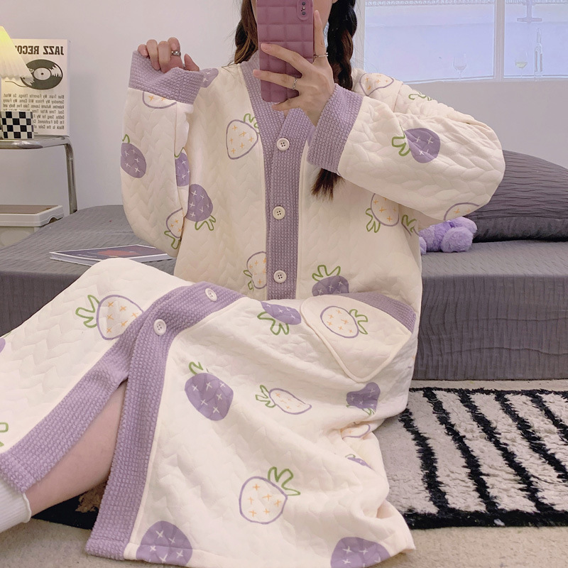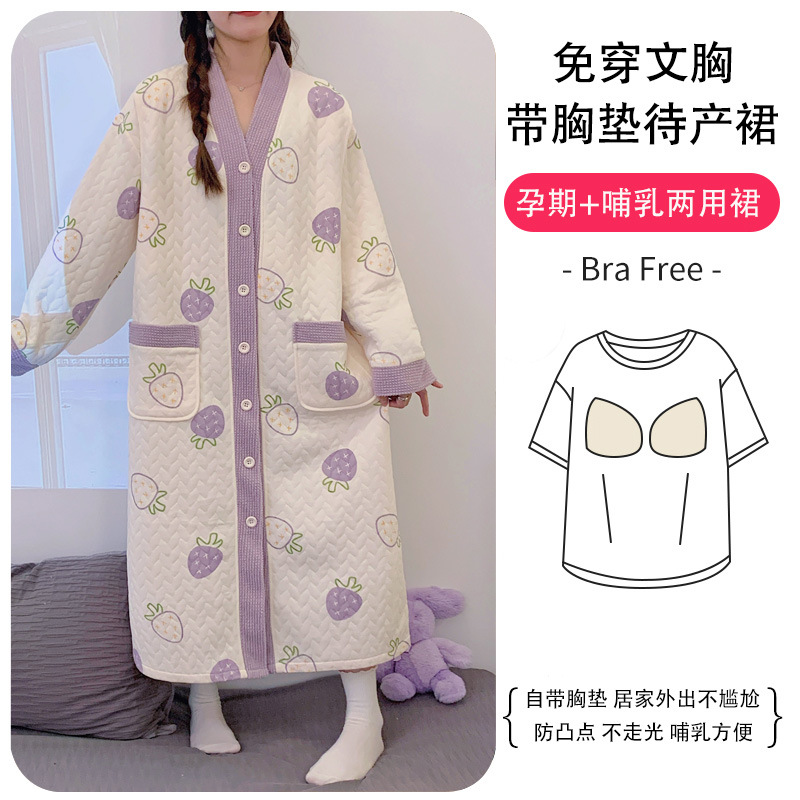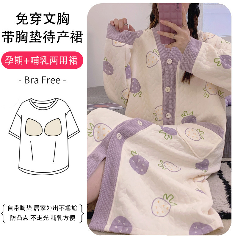 임산부 간호 나이트가운 여성의 가을과 겨울 공기 면 잠옷 모성 달옷 봄과 가을 원피스