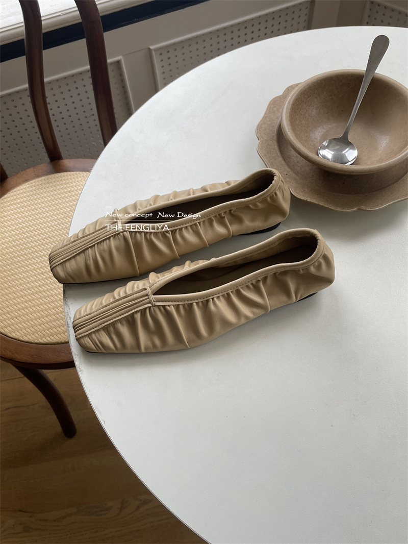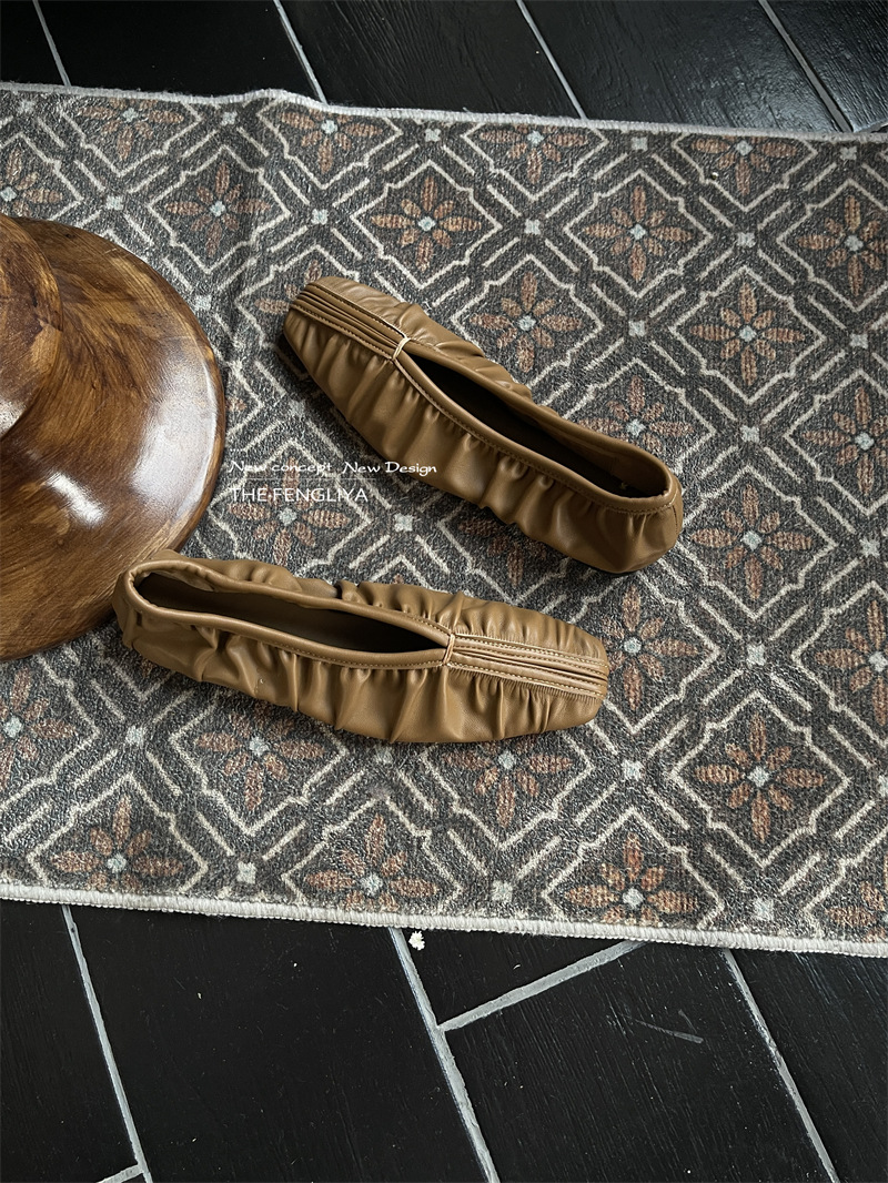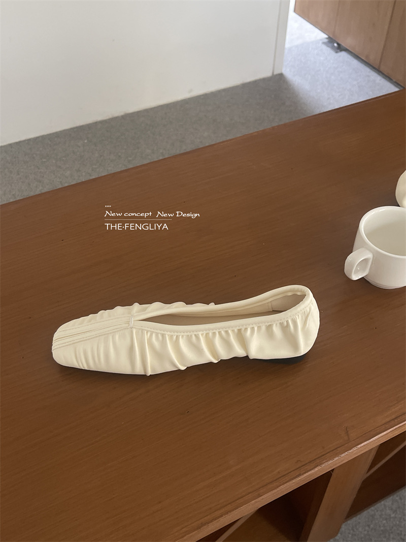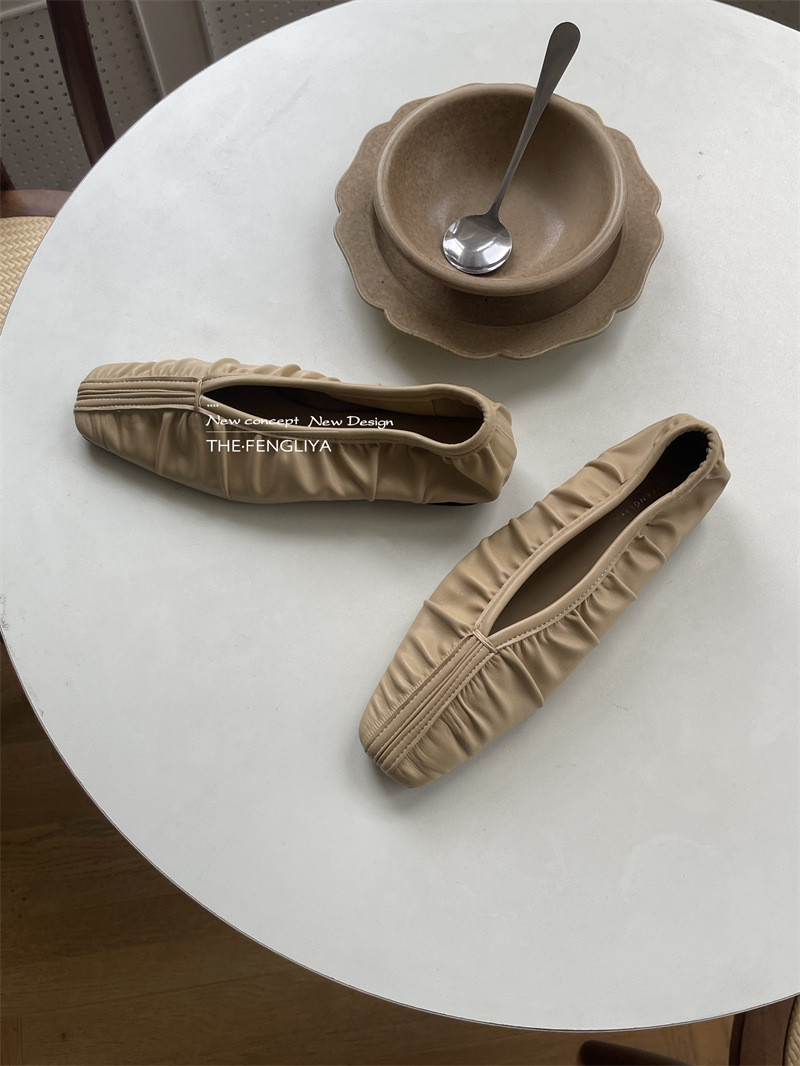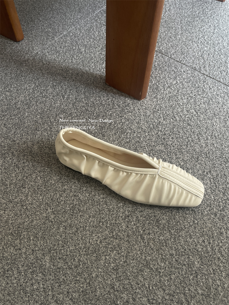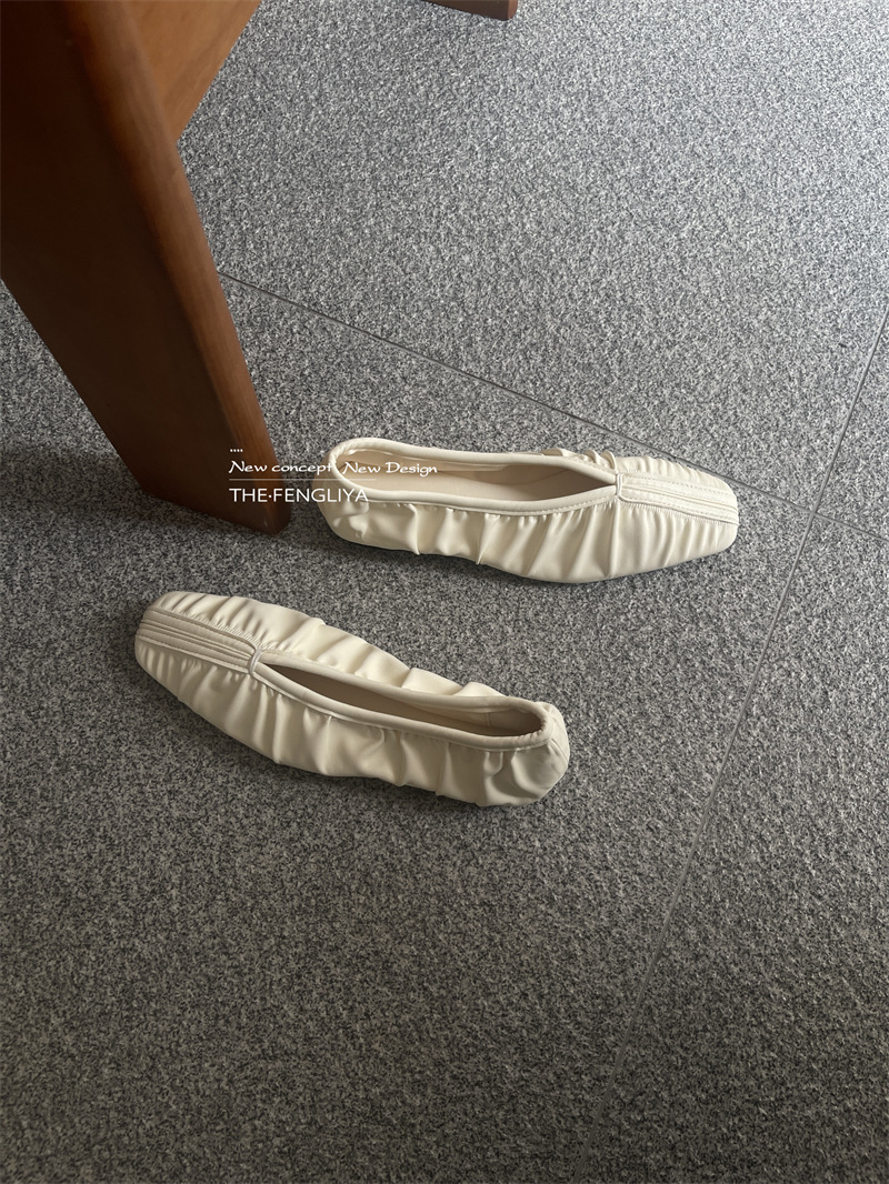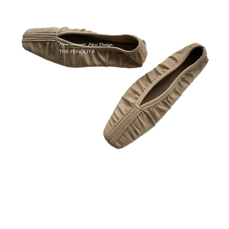 Fengliya 2024 가을 새로운 Pleated Ballet Flats 여자 올 매치 스퀘어 발가락 올 매치 심플 레트로 싱글 레이어 신발