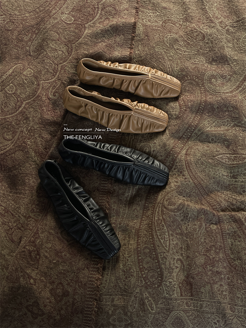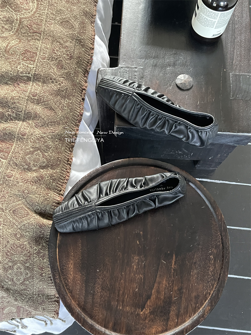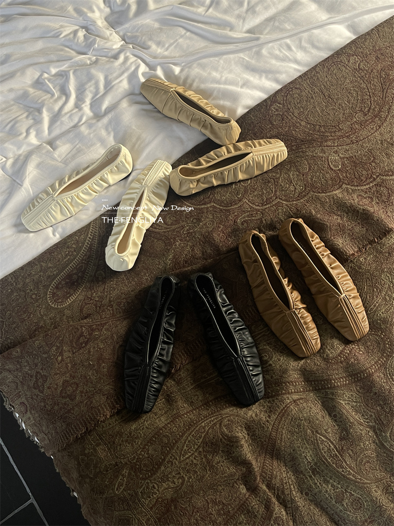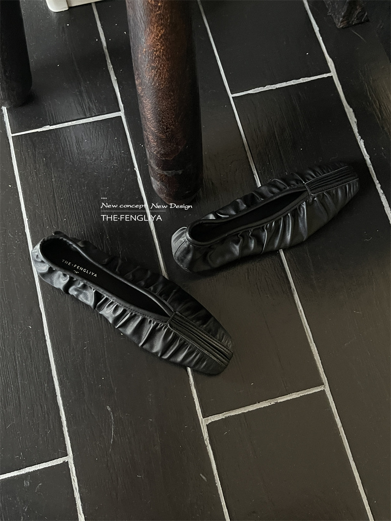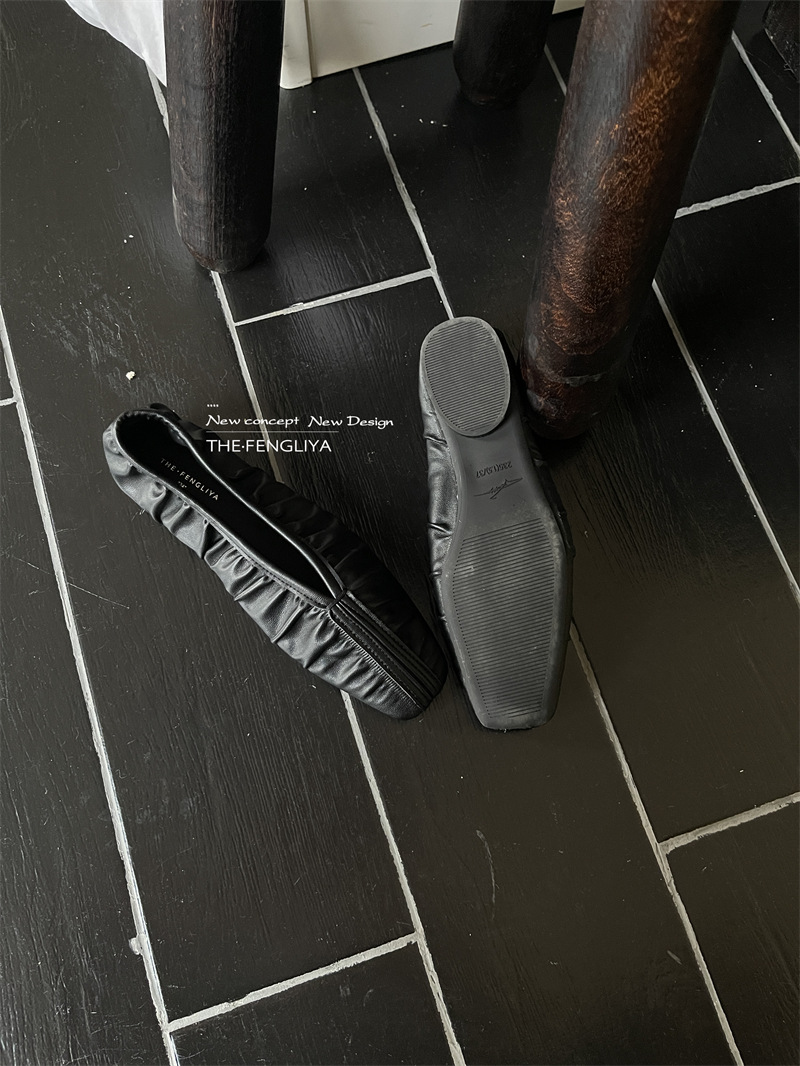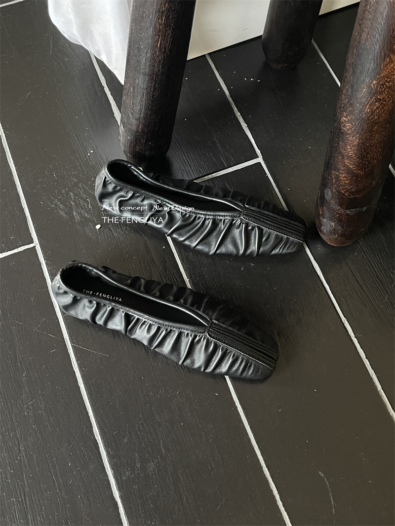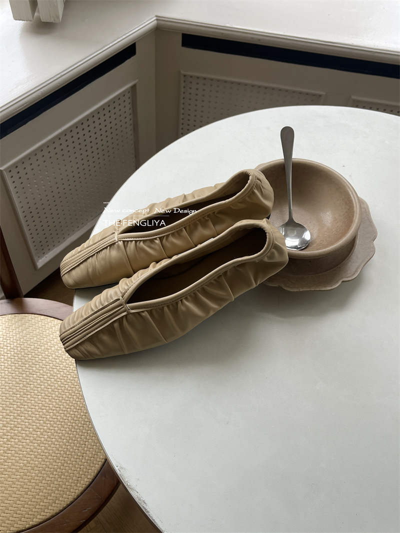 Fengliya 2024 가을 새로운 Pleated Ballet Flats 여자 올 매치 스퀘어 발가락 올 매치 심플 레트로 싱글 레이어 신발