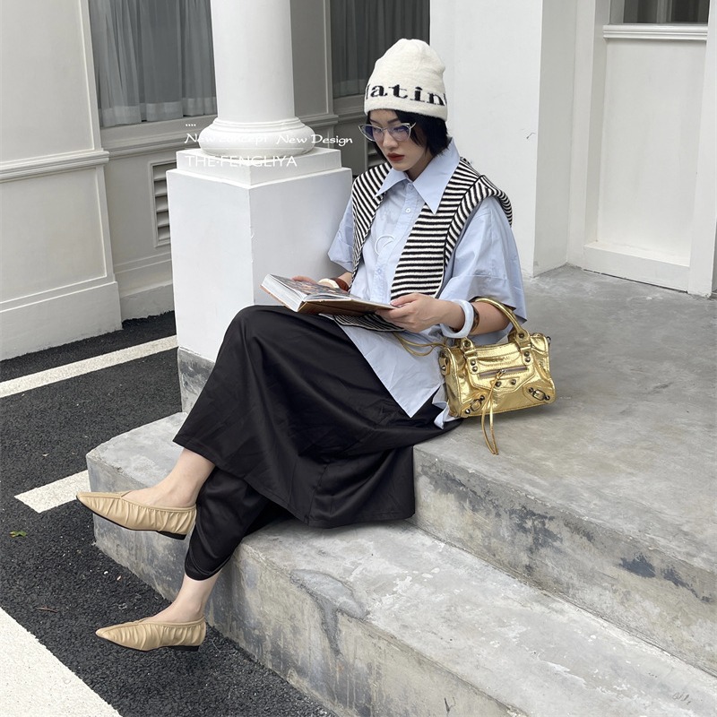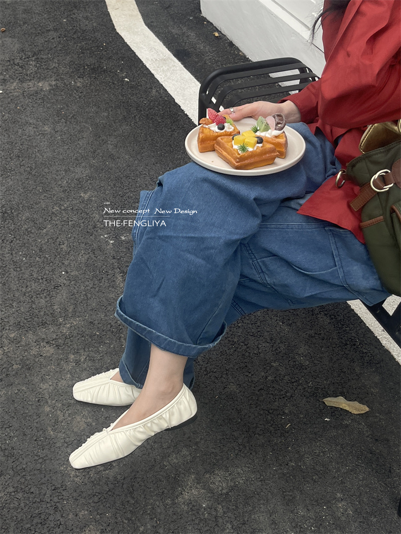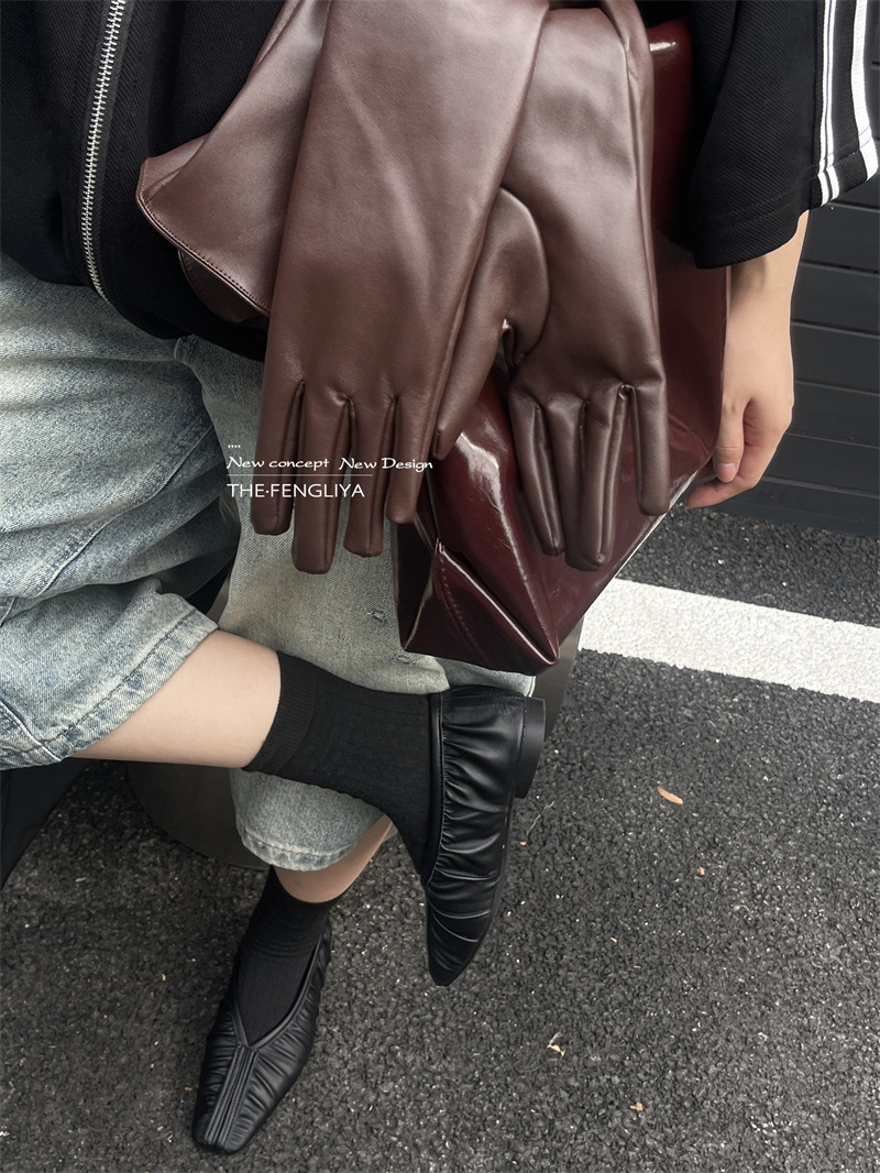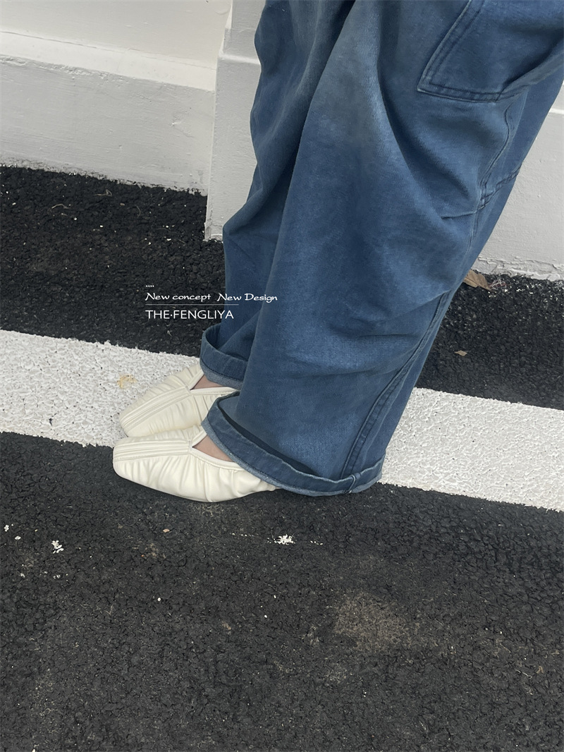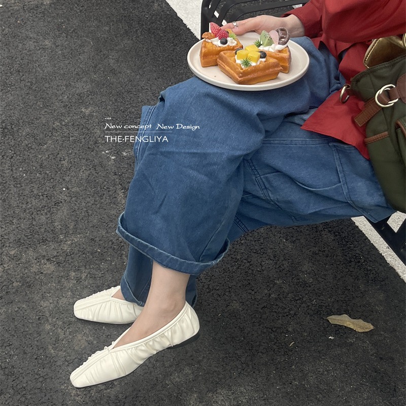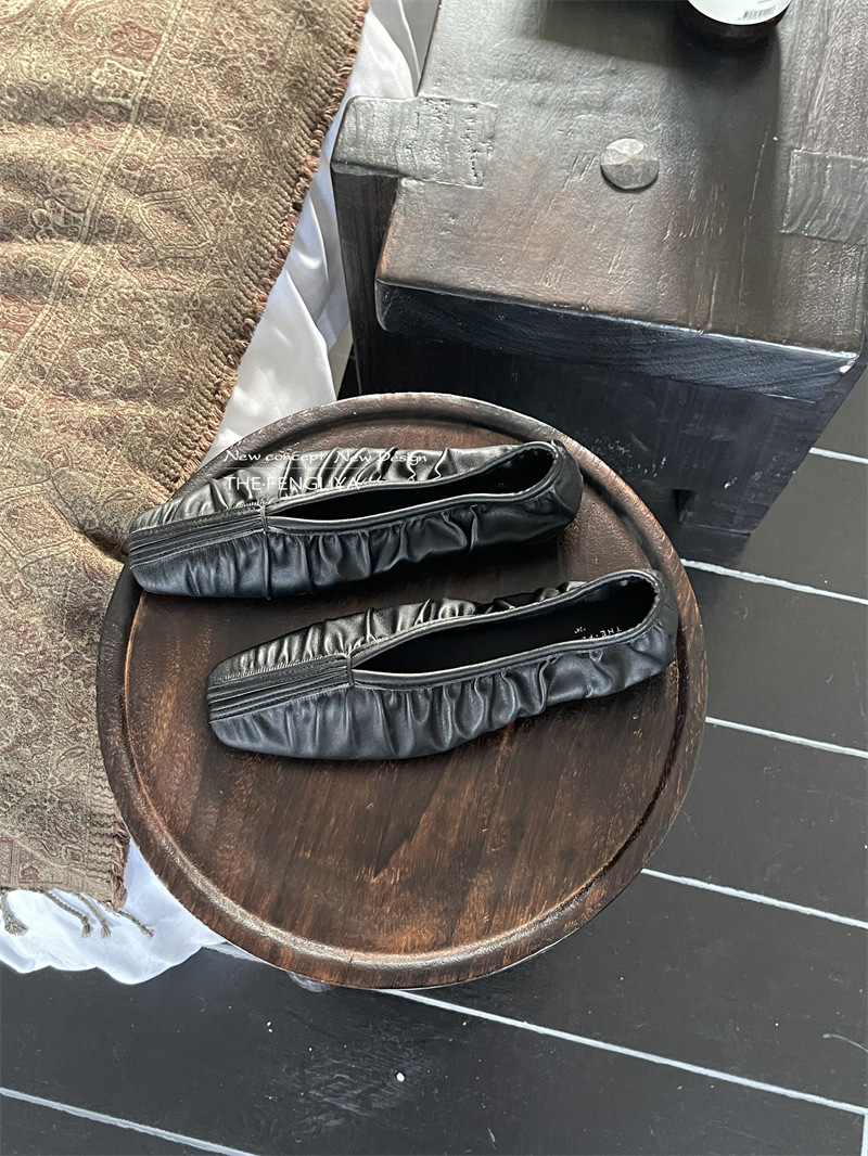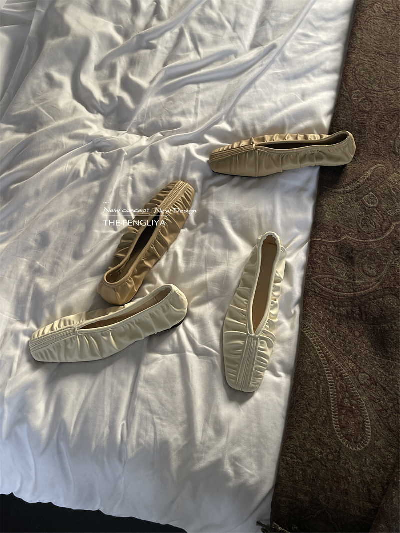 Fengliya 2024 가을 새로운 Pleated Ballet Flats 여자 올 매치 스퀘어 발가락 올 매치 심플 레트로 싱글 레이어 신발