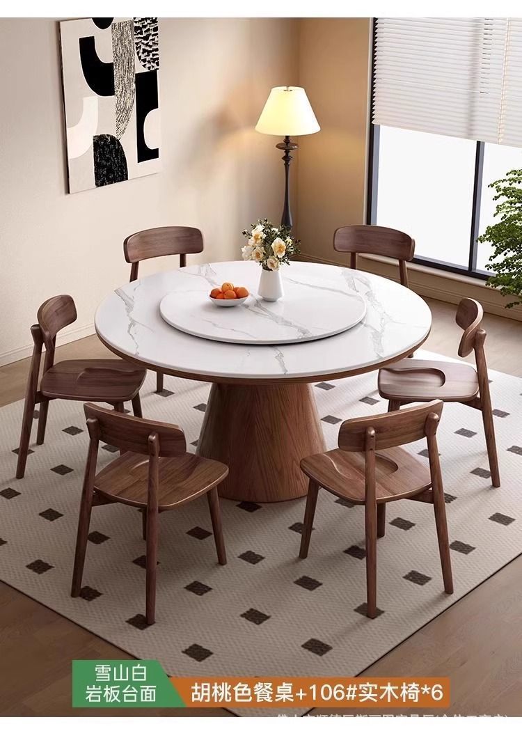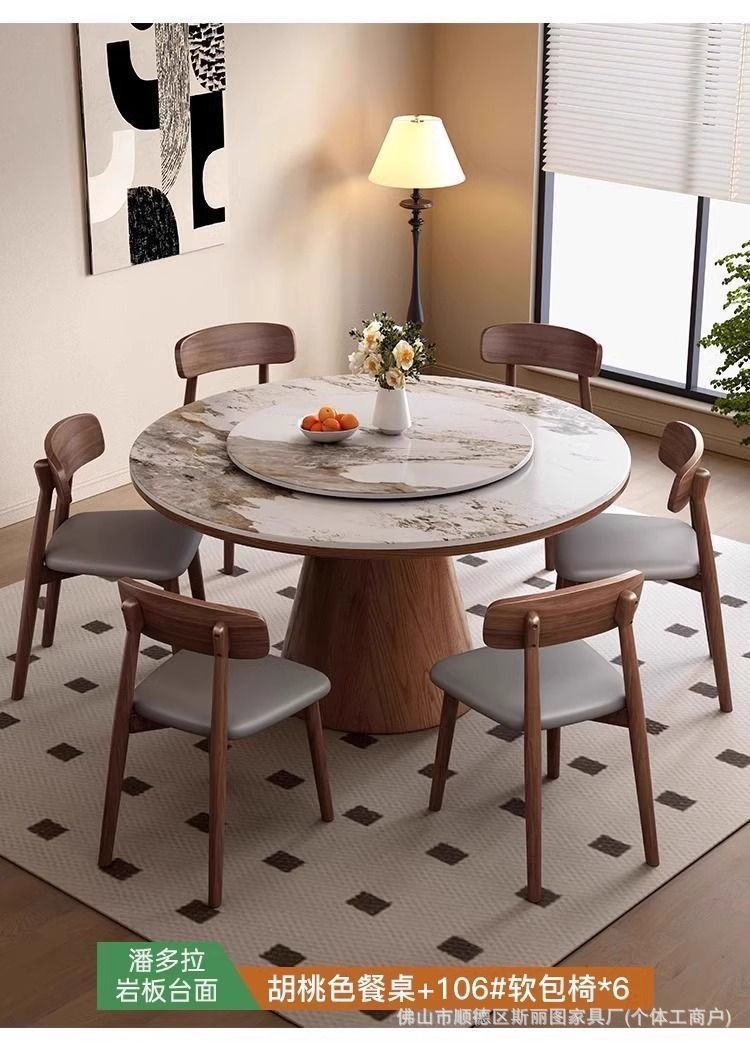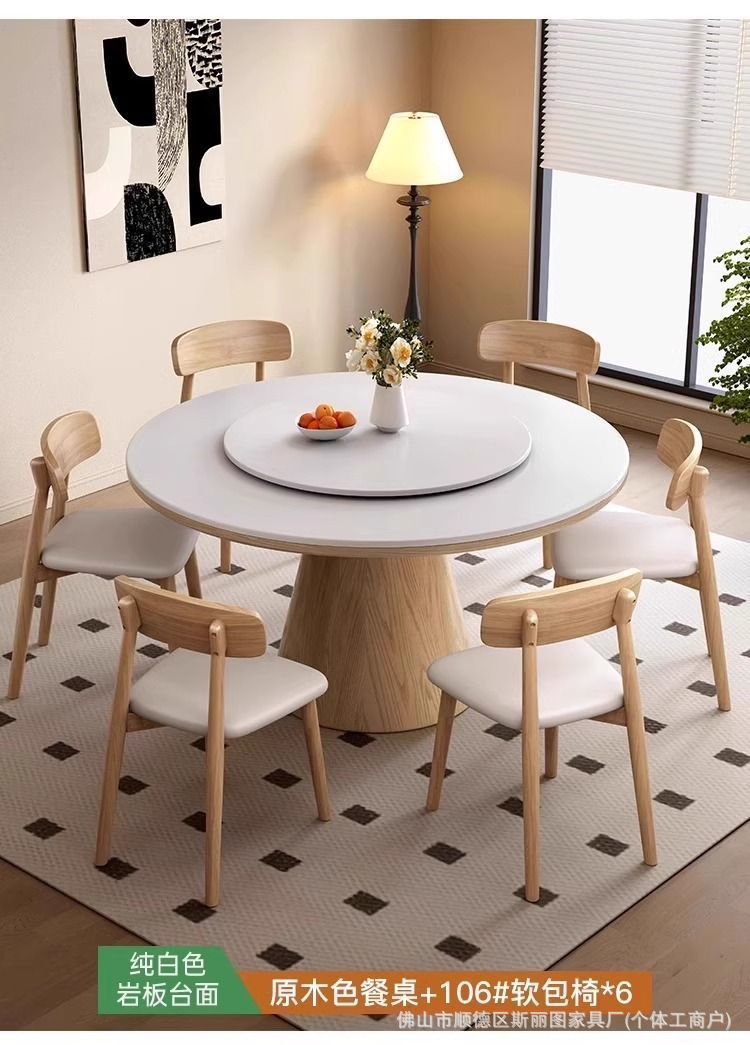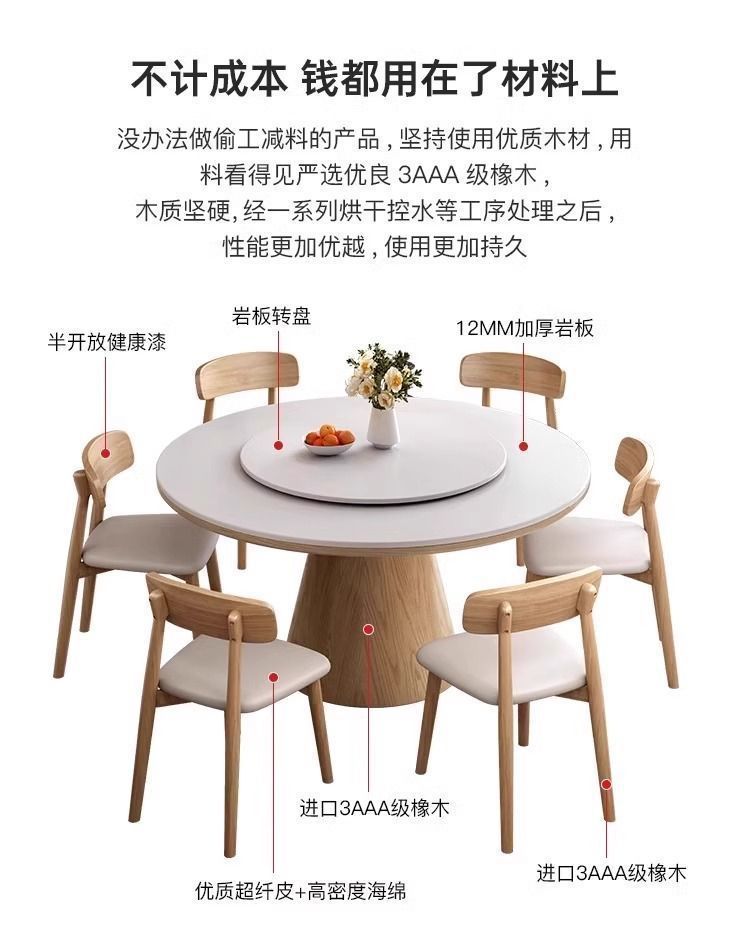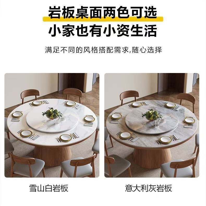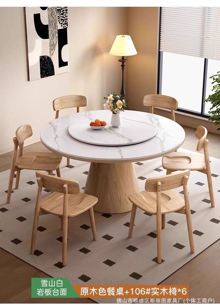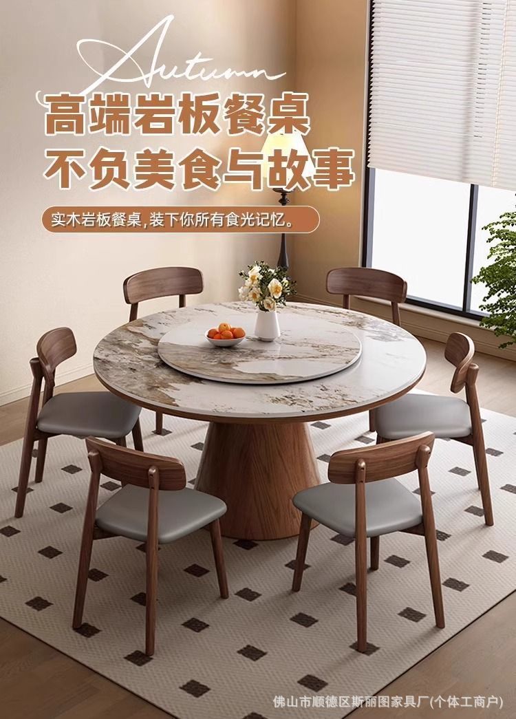 하이 엔드 솔리드 우드 록 보드 라운드 테이블 식탁 및 의자 조합 가구 라운드 테이블 북유럽 빛 럭셔리 현대 간단한 라운드 다이닝 테이블
