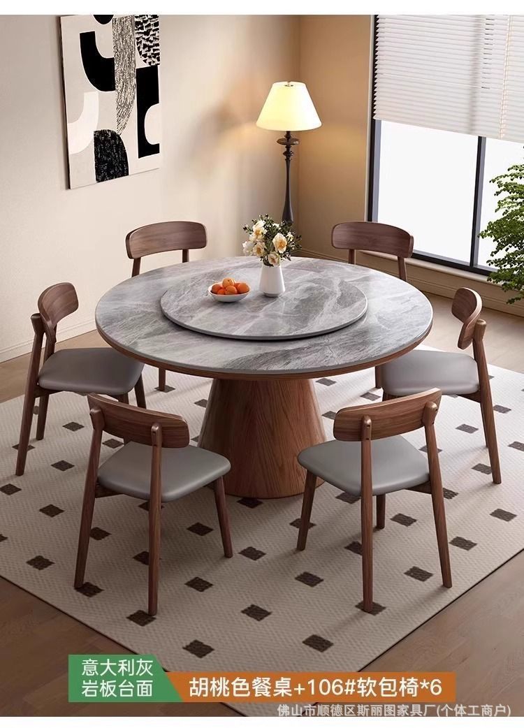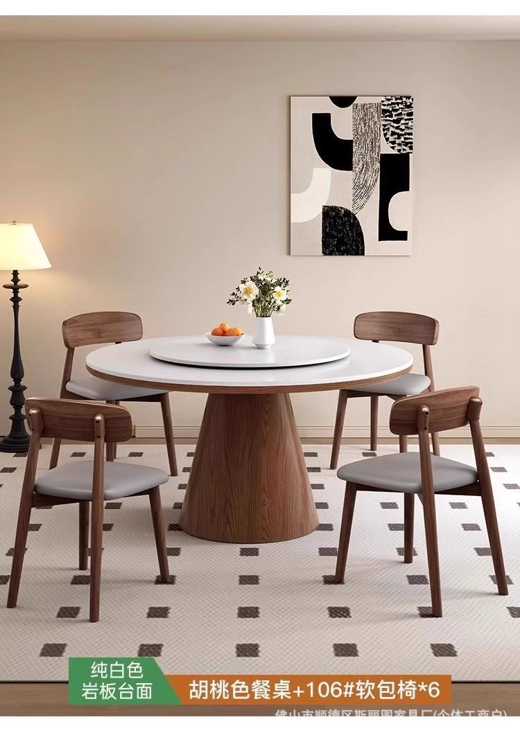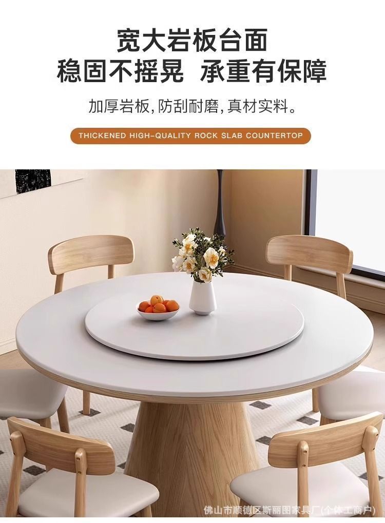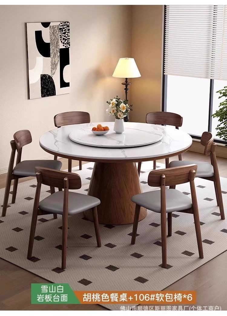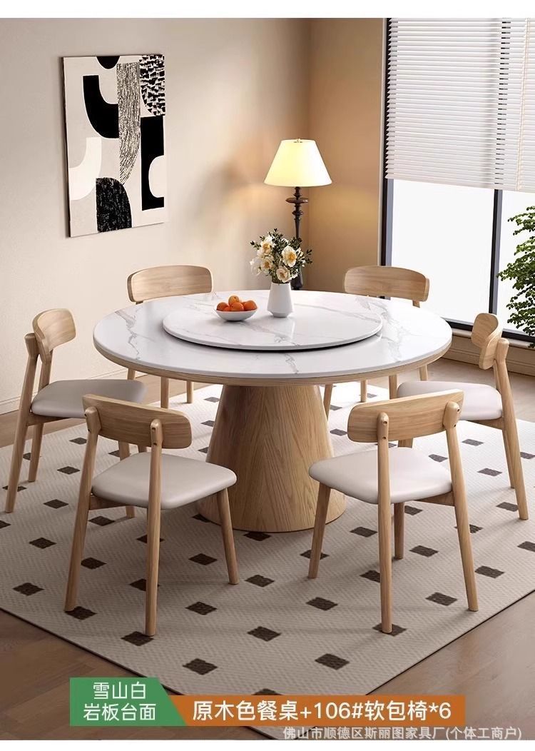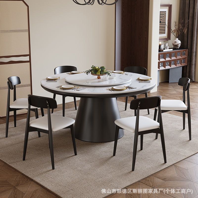 하이 엔드 솔리드 우드 록 보드 라운드 테이블 식탁 및 의자 조합 가구 라운드 테이블 북유럽 빛 럭셔리 현대 간단한 라운드 다이닝 테이블