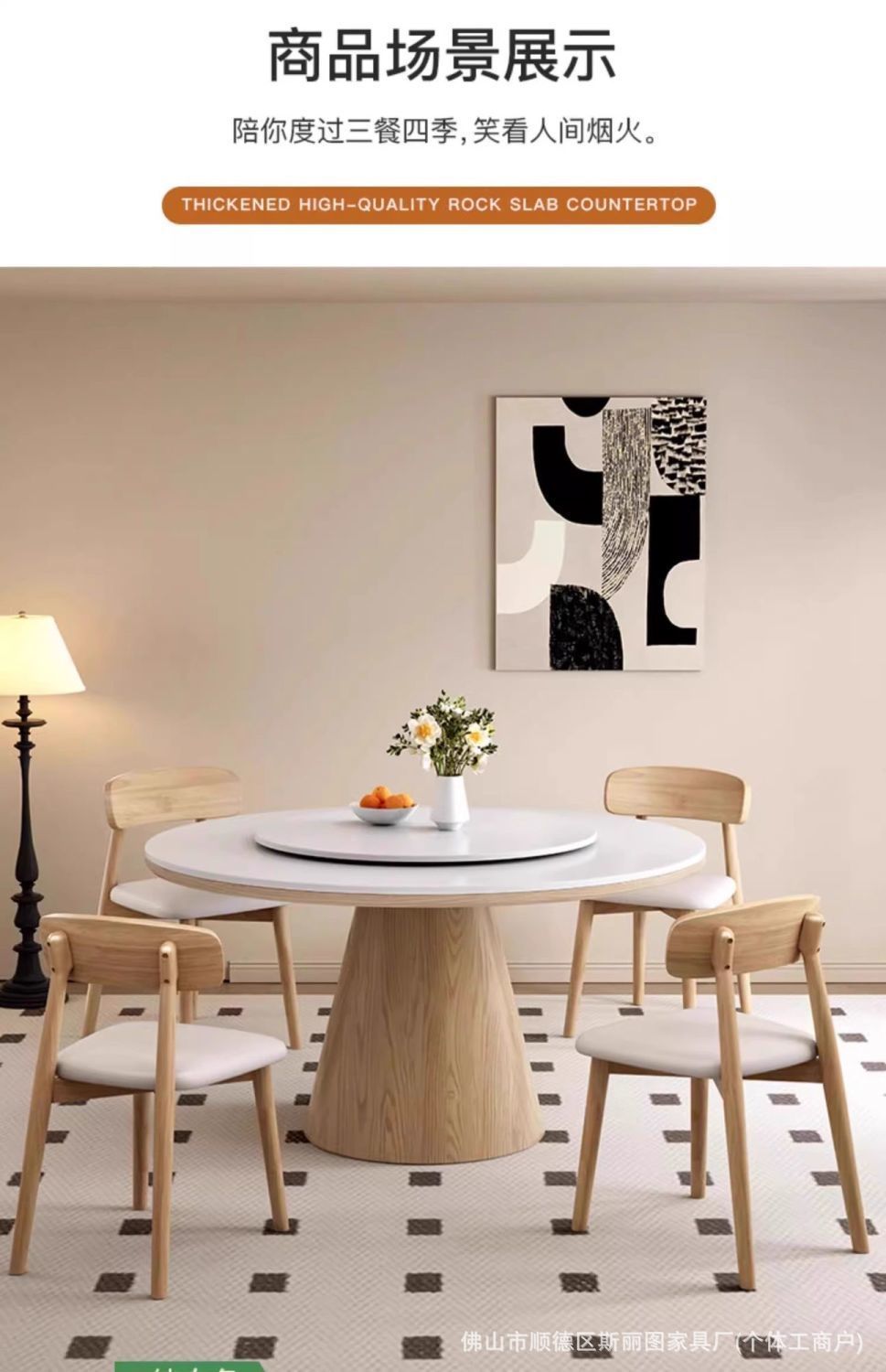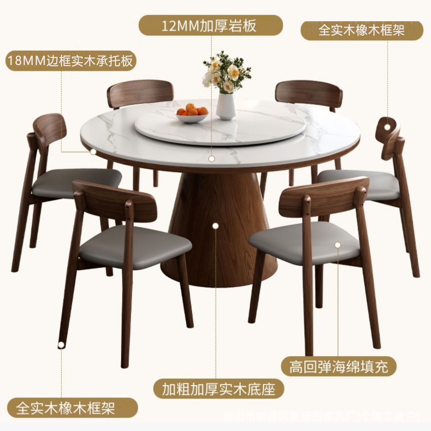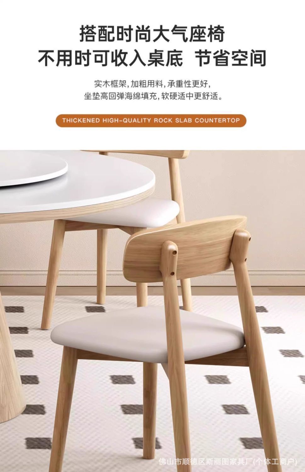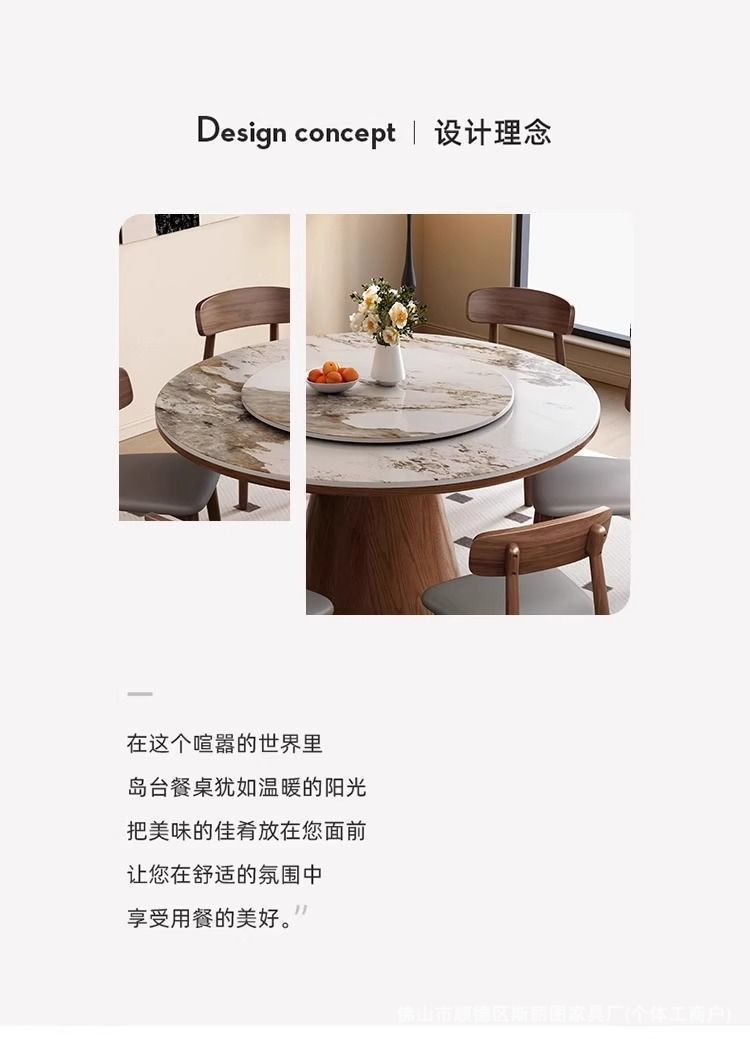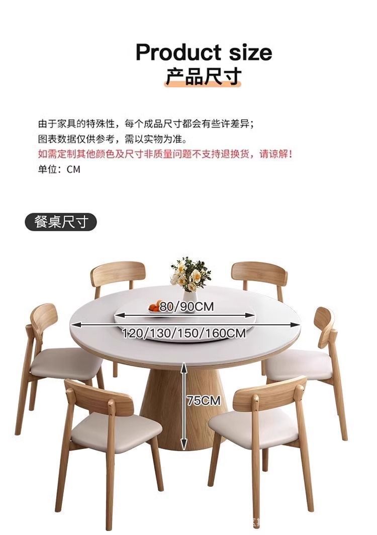 하이 엔드 솔리드 우드 록 보드 라운드 테이블 식탁 및 의자 조합 가구 라운드 테이블 북유럽 빛 럭셔리 현대 간단한 라운드 다이닝 테이블